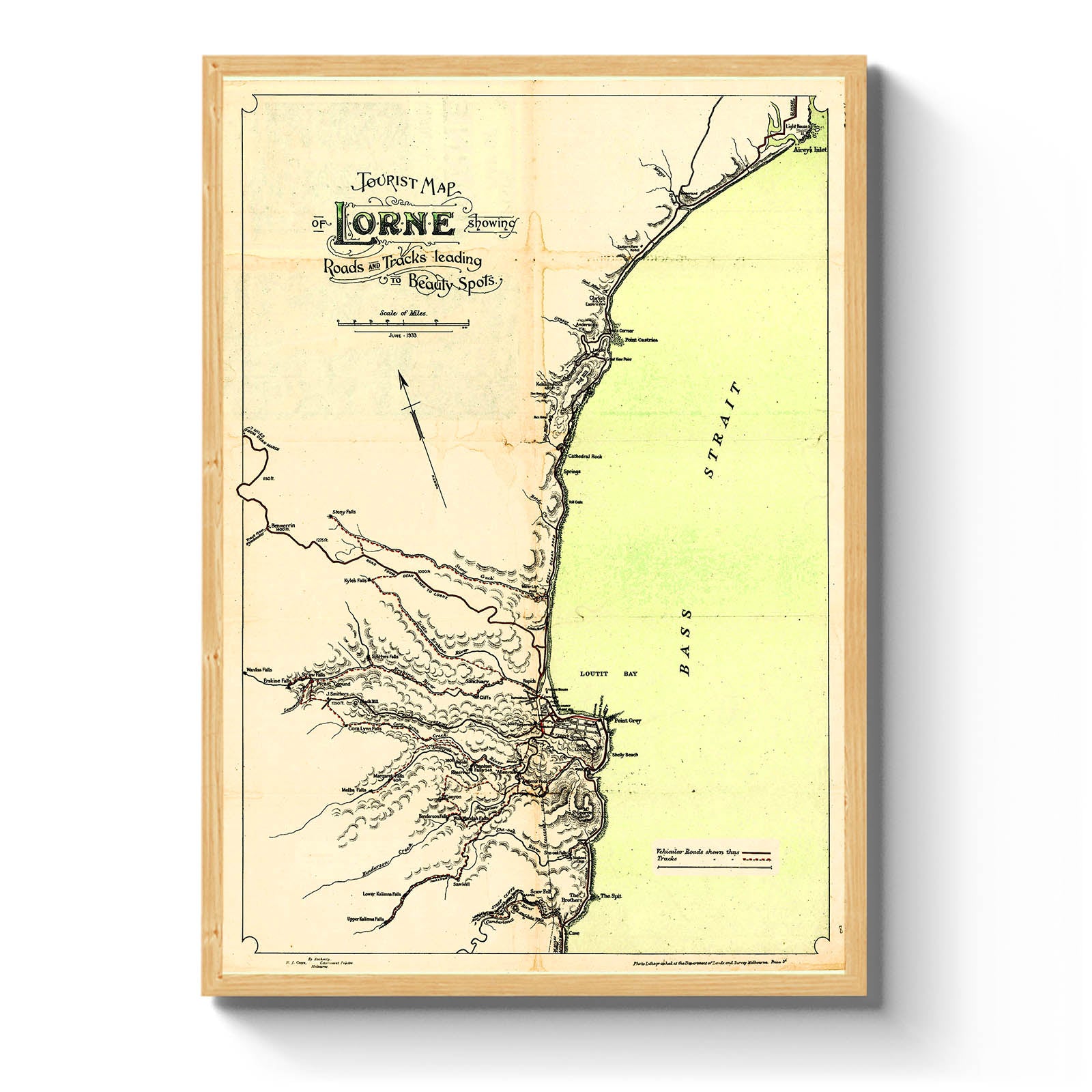Tourist map of Lorne showing roads and tracks leading to beauty spots [cartographic material] / compiled by the Tourists Resorts' Committee, Victoria; photo-lithographed at the Department of Lands and Survey, Melbourne. 1933.
