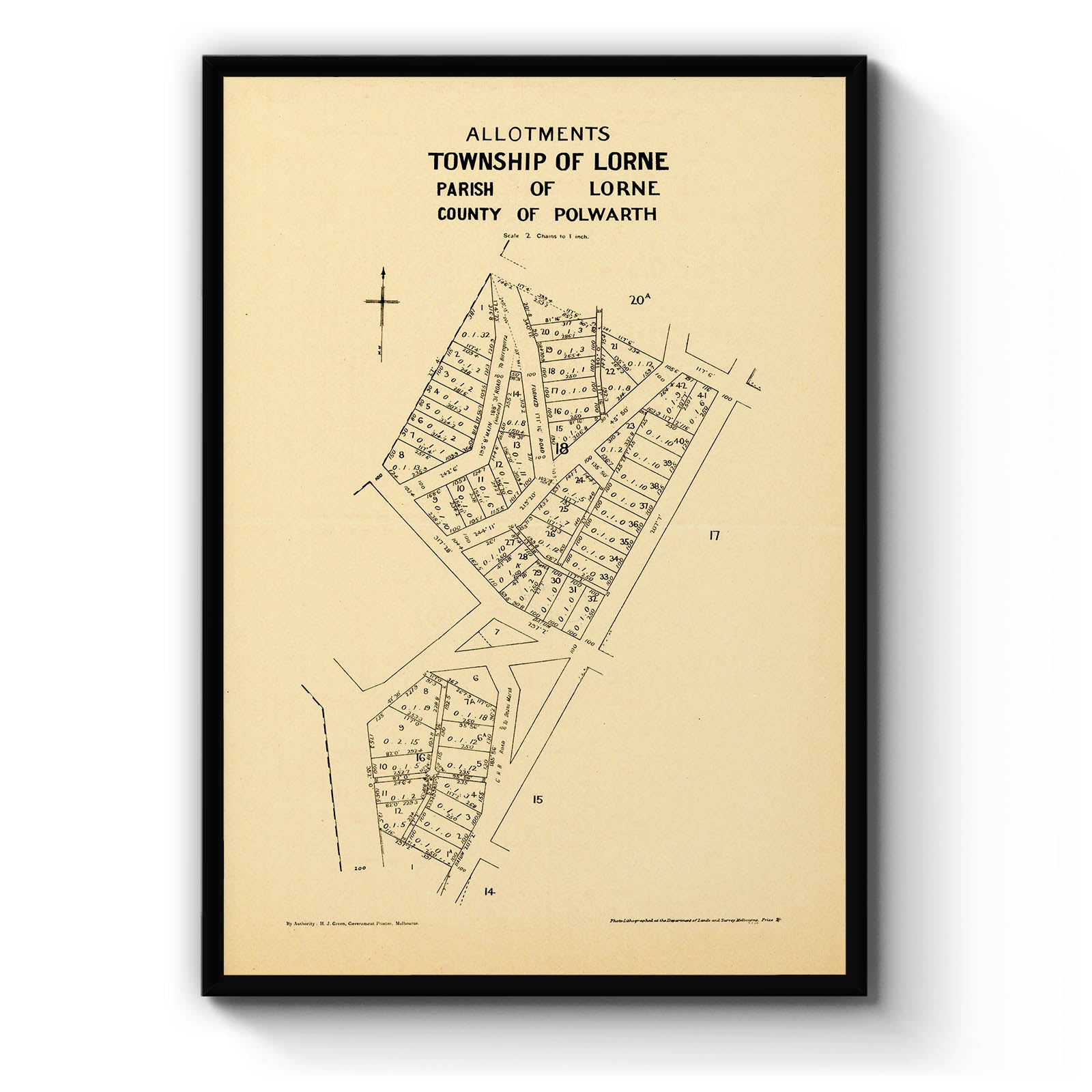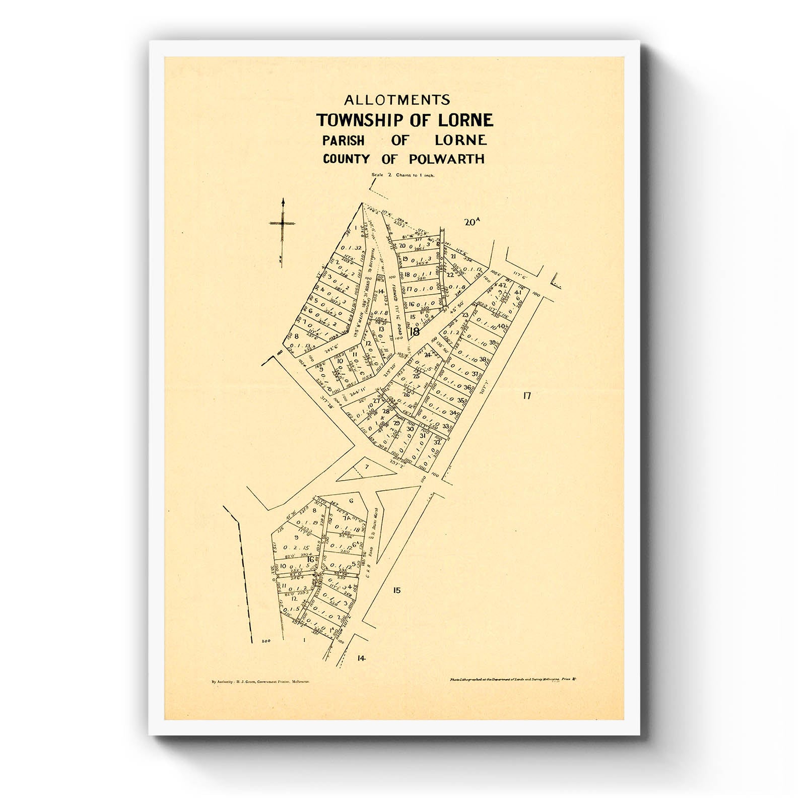 Allotments, Township of Lorne, Parish of Lorne, County of Polwarth [cartographic material] / photo-lithographed by the Dept. of Lands and Survey, Melbourne. 1930