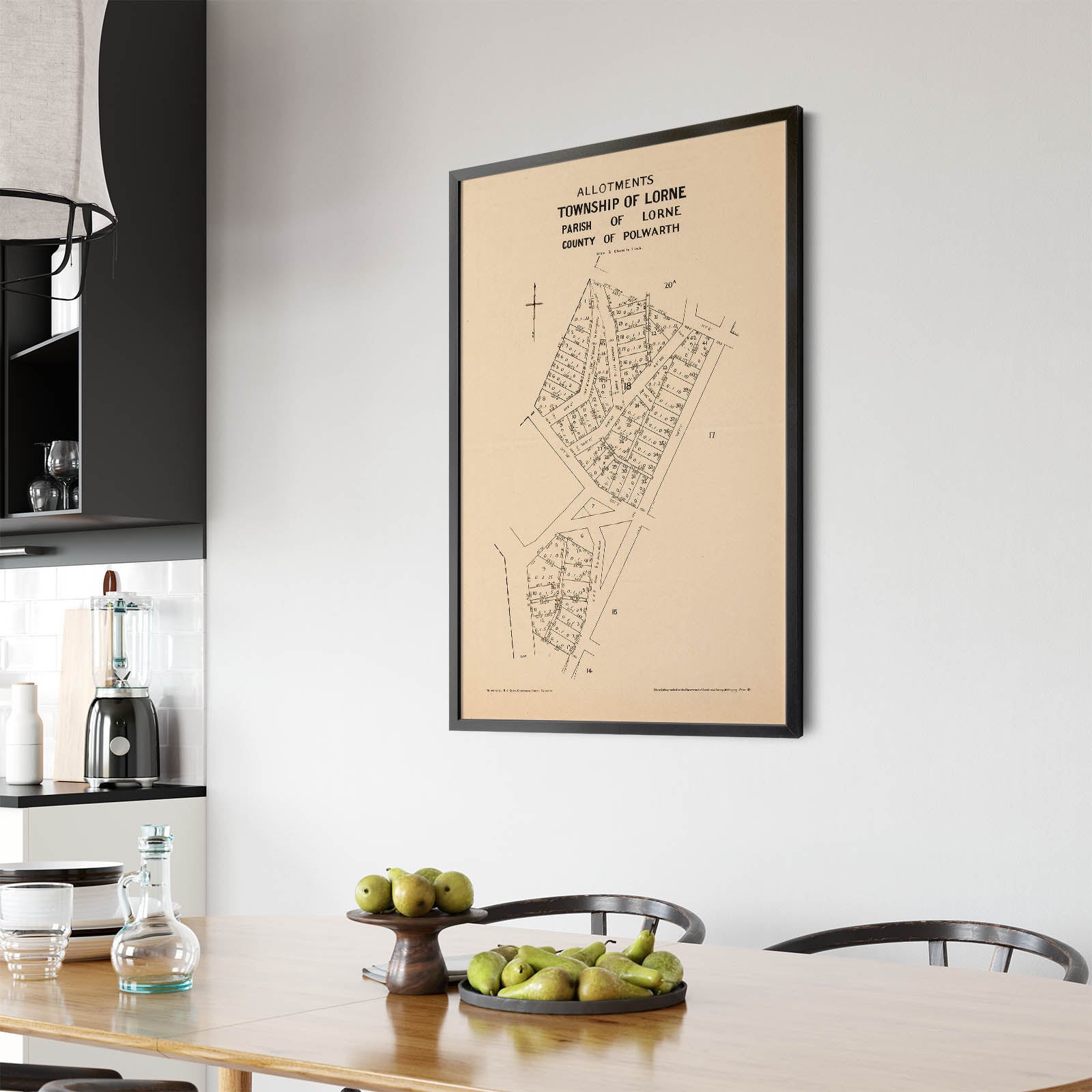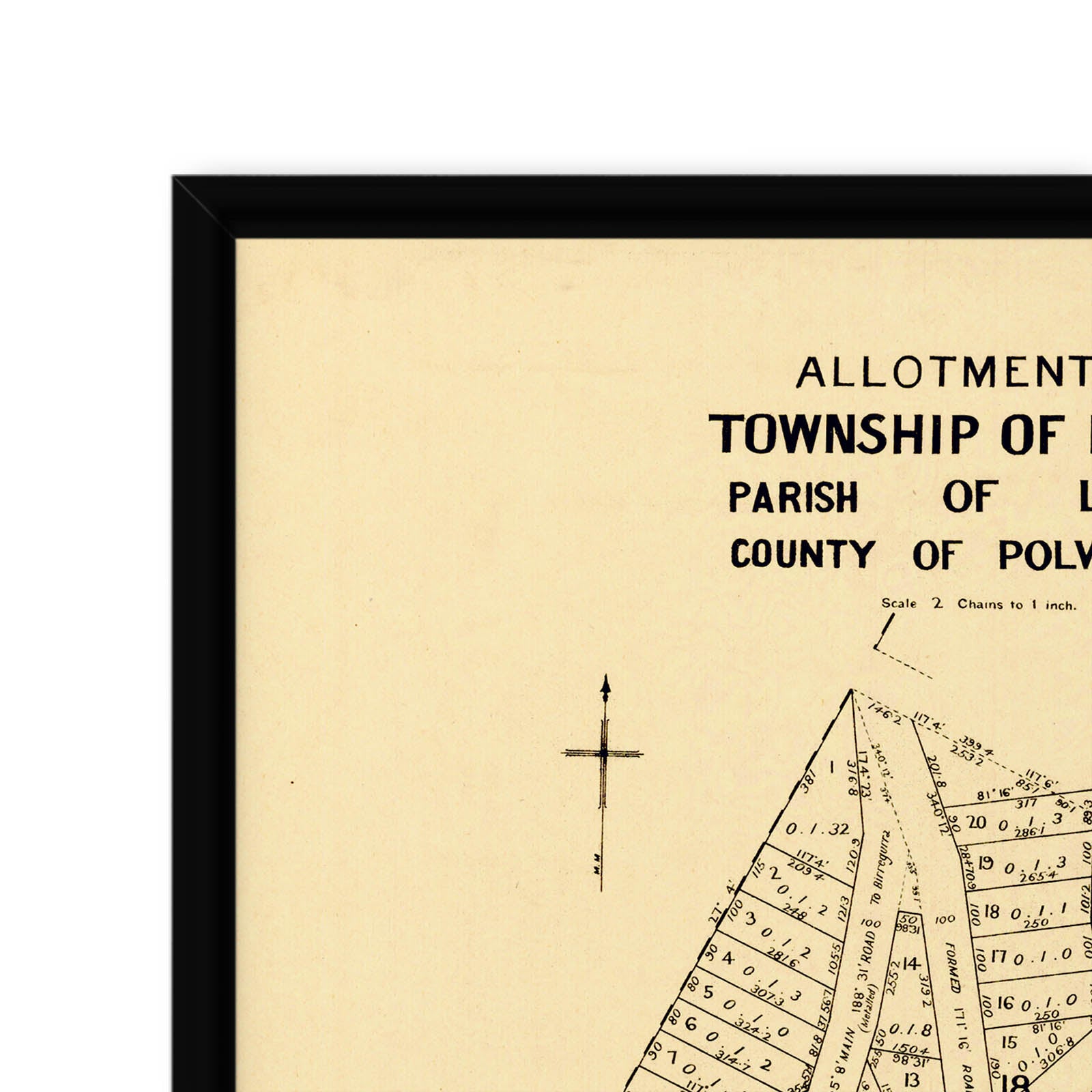 Recently moving to Harcourt and being interested in the history of the area, it seemed fitting to purchase a vintage map of the area which is displayed on our kitchen wall for us to study easily, identifying the block of land we bought. Nicely framed too.