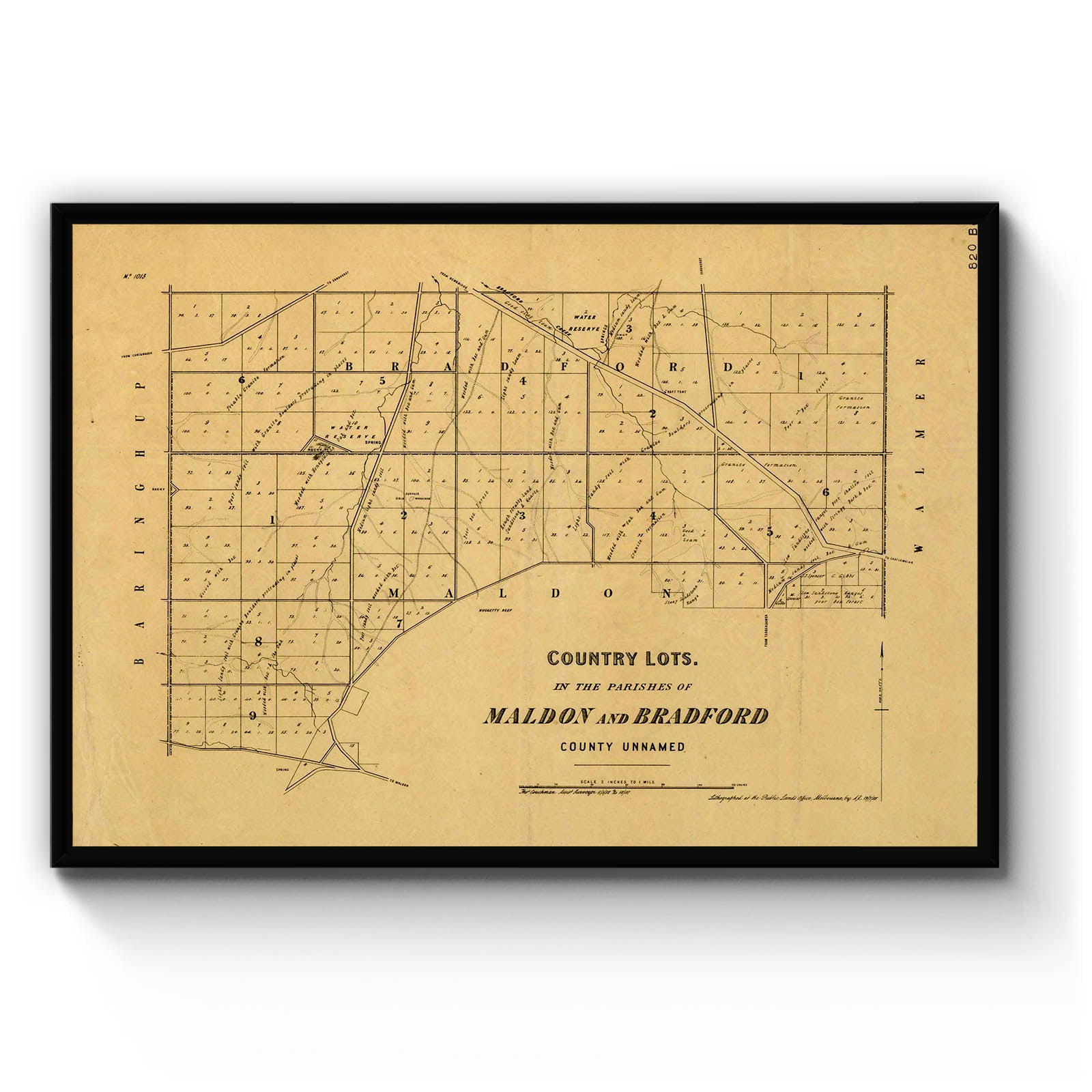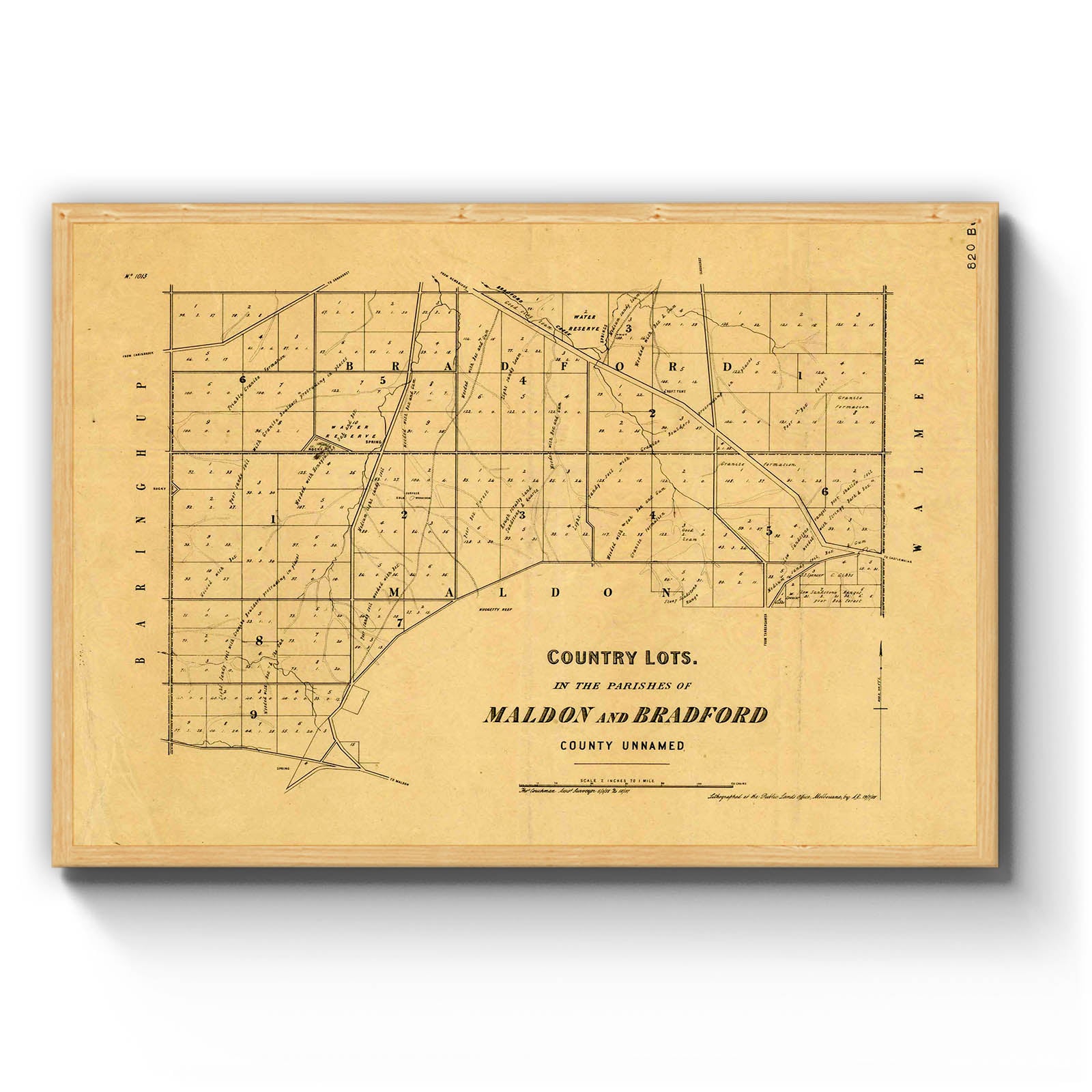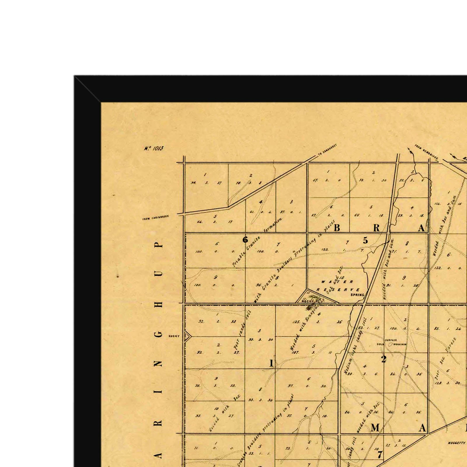 Recently moving to Harcourt and being interested in the history of the area, it seemed fitting to purchase a vintage map of the area which is displayed on our kitchen wall for us to study easily, identifying the block of land we bought. Nicely framed too.