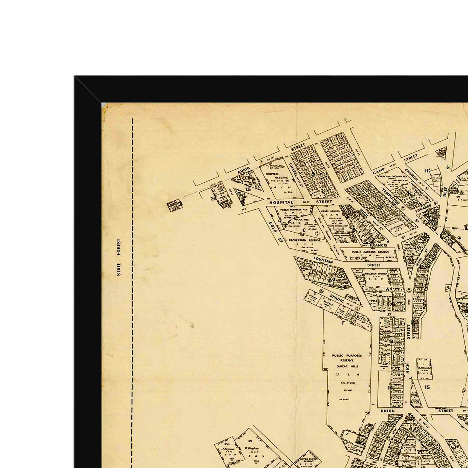 Recently moving to Harcourt and being interested in the history of the area, it seemed fitting to purchase a vintage map of the area which is displayed on our kitchen wall for us to study easily, identifying the block of land we bought. Nicely framed too.