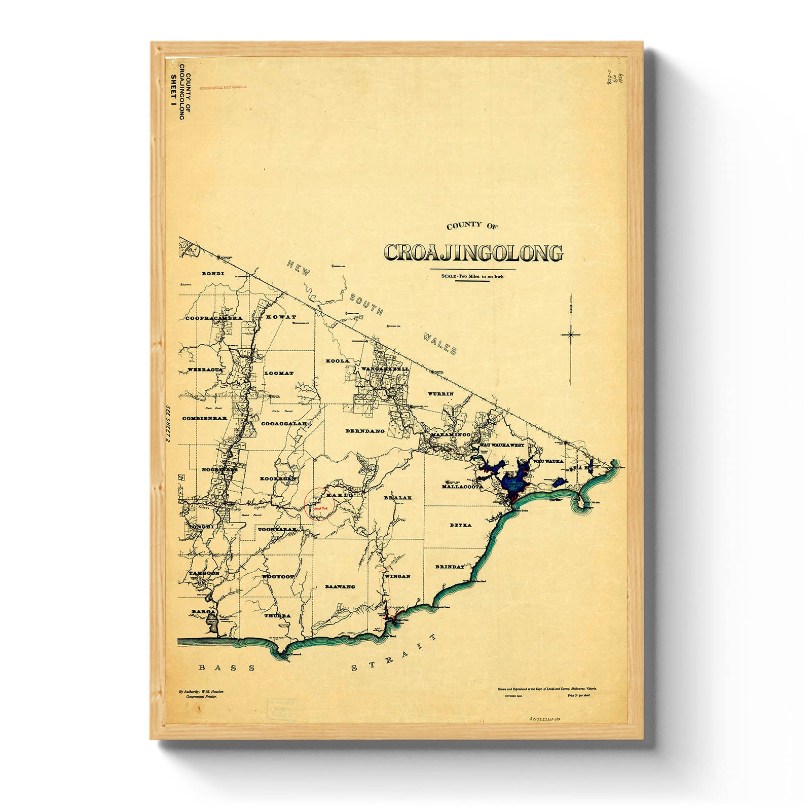 County of Croajingolong [cartographic material]: scale two miles to an inch / drawn and reproduced at the Dept. of Lands and Survey, Melbourne, Victoria, October 1954.