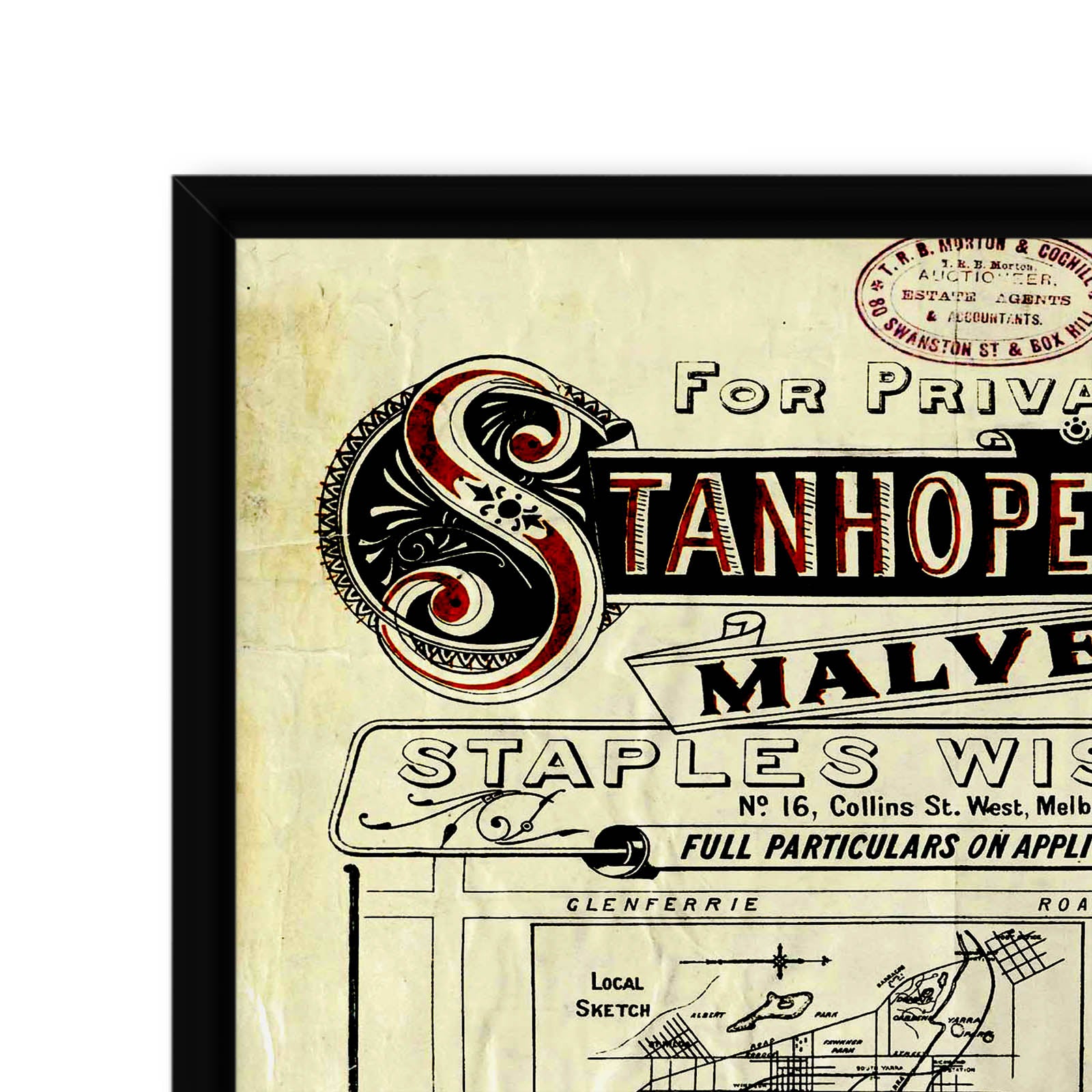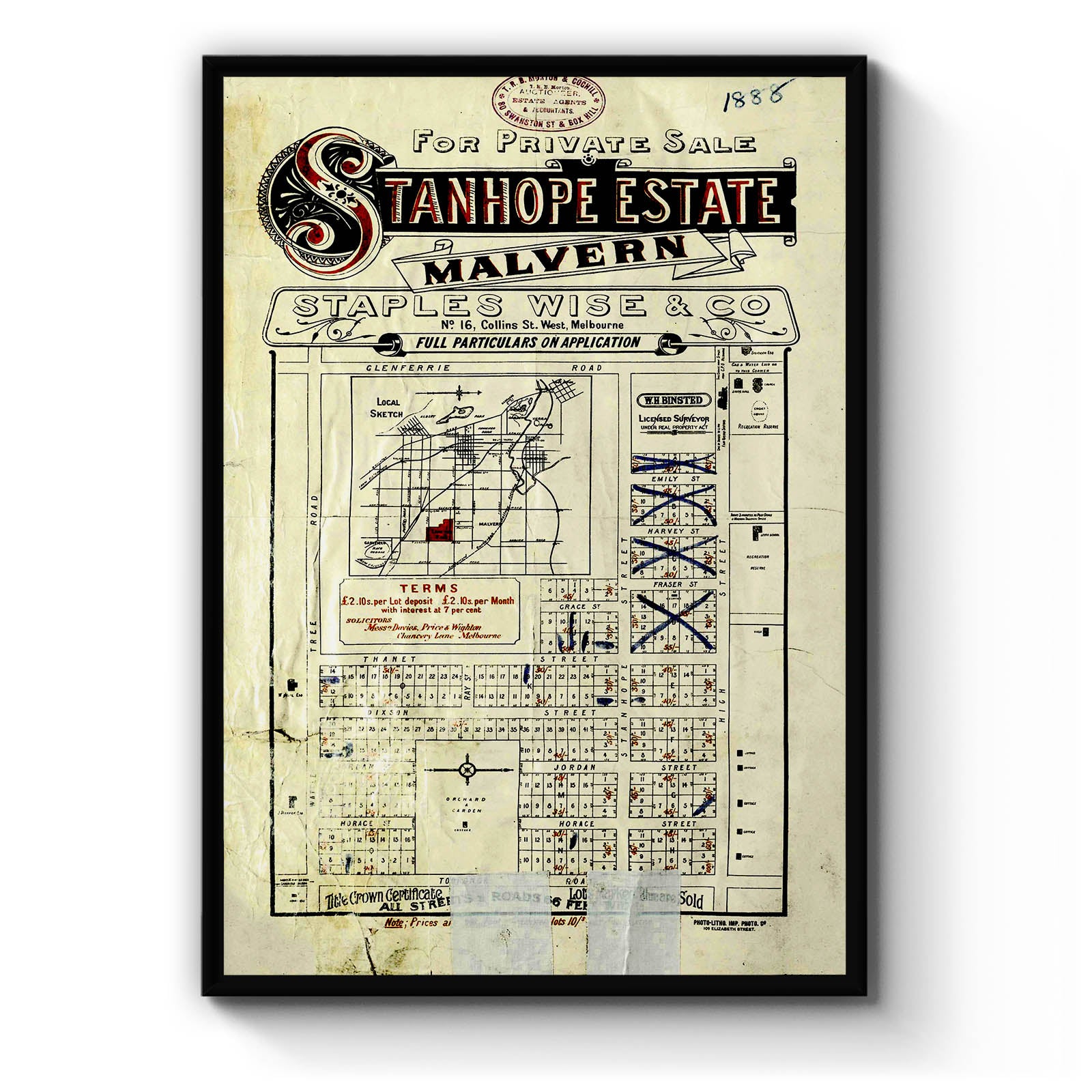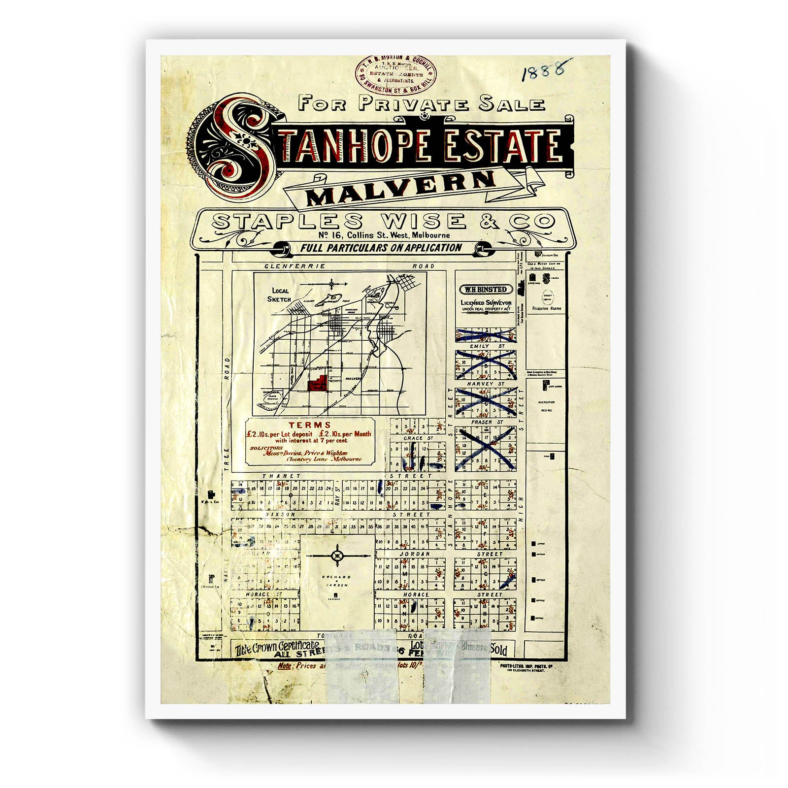 Stanhope Estate, Malvern [cartographic material]./ W. H. Binsted, licensed surveyor. 189?] Includes a locality plan of area.; Shows location of residences of "W Noall Esq", "J Harper Esq" and "Stevenson Esq".