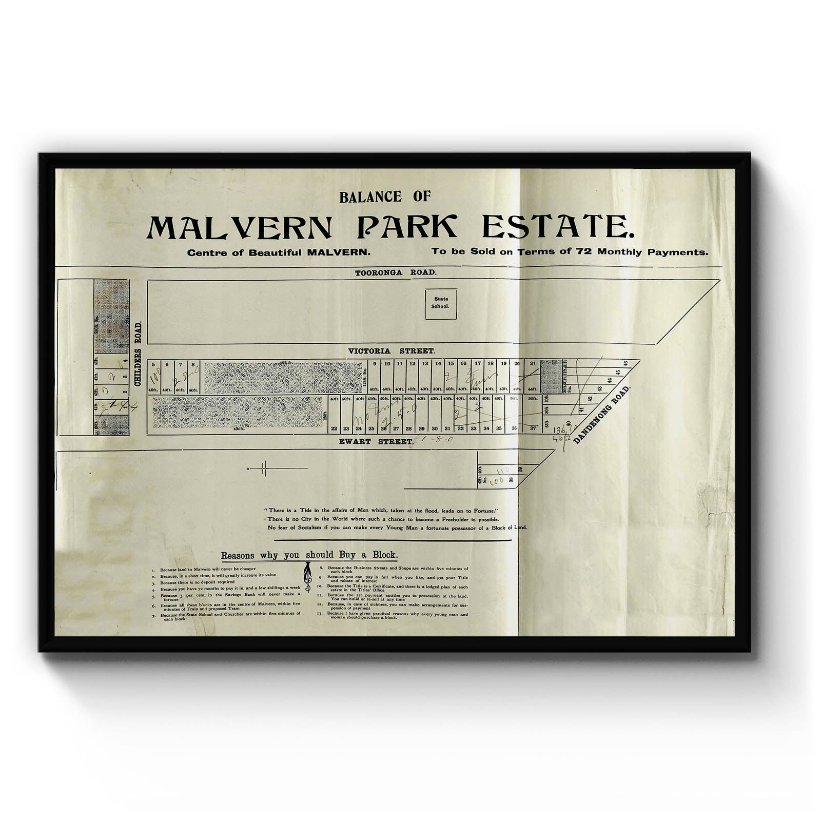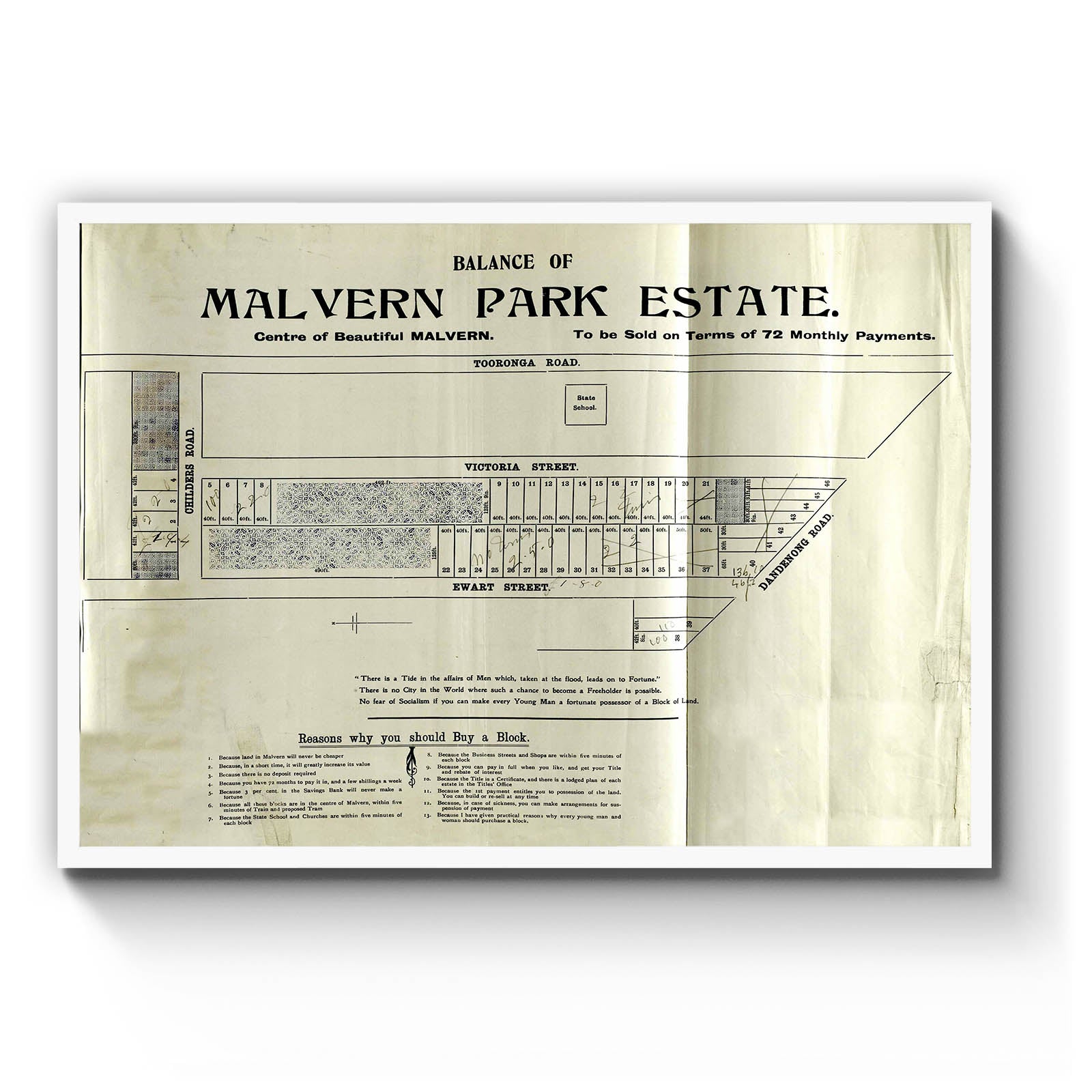 Balance of Malvern Park Estate [cartographic material]. [189-?]
