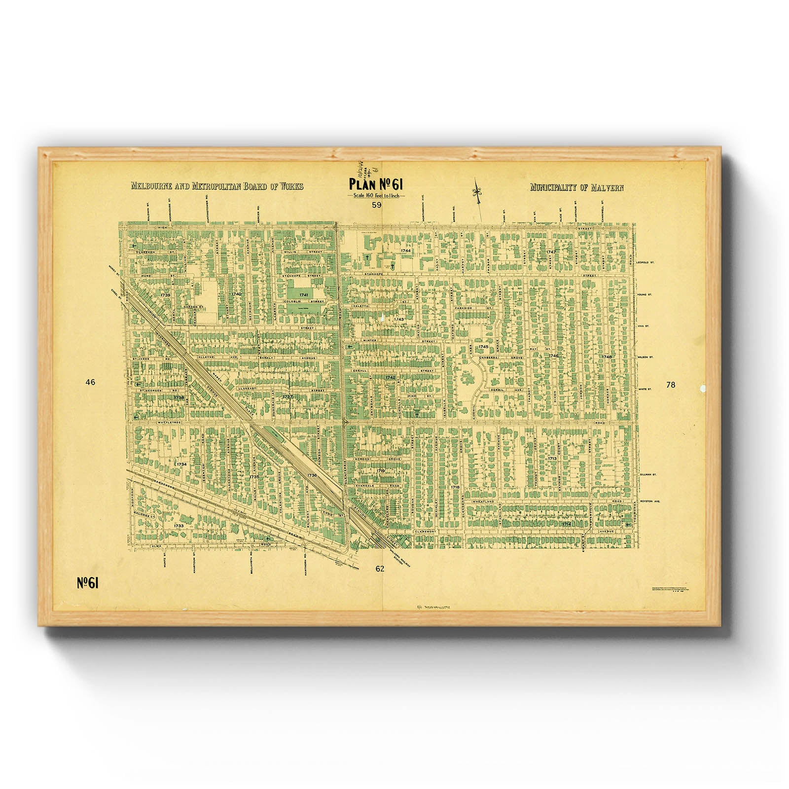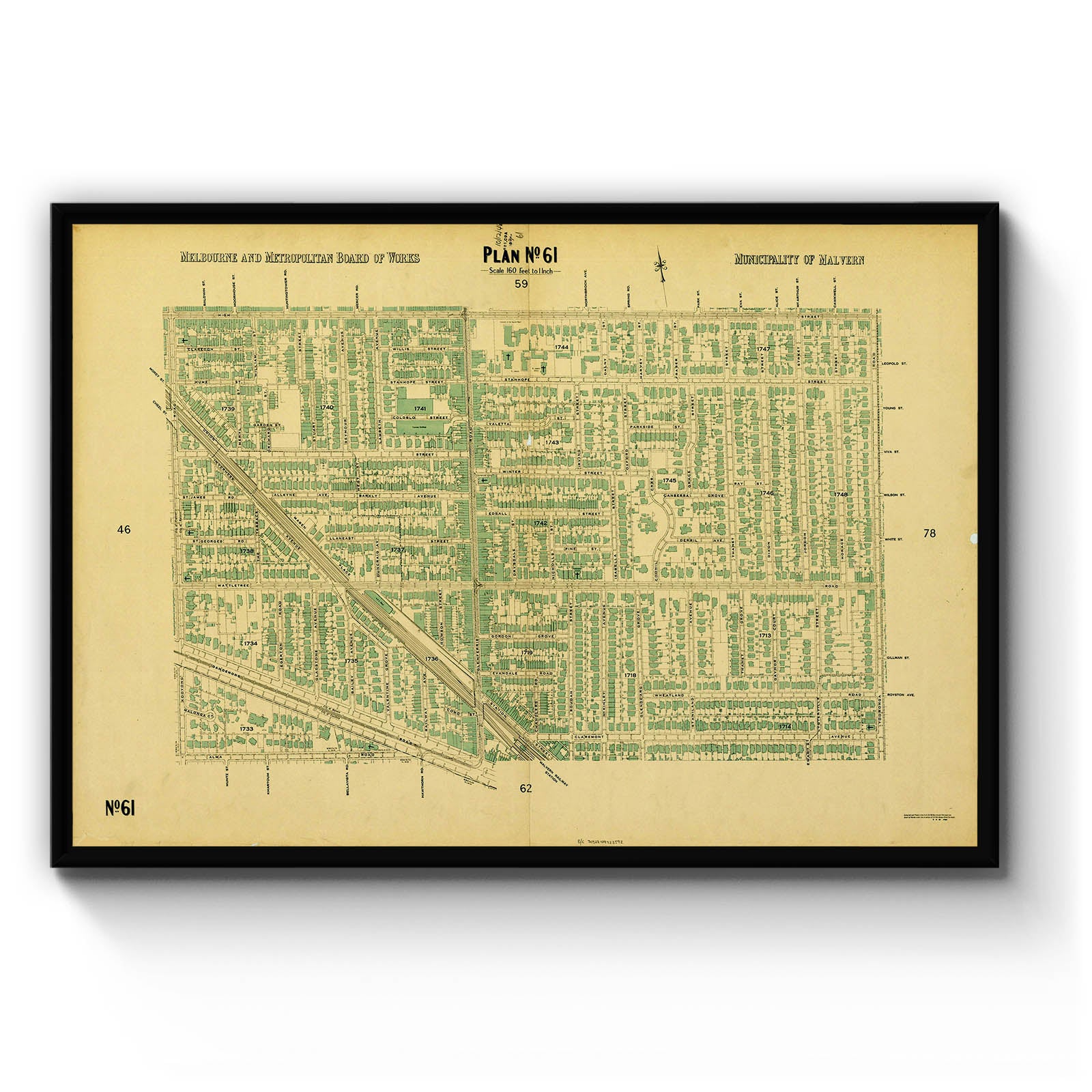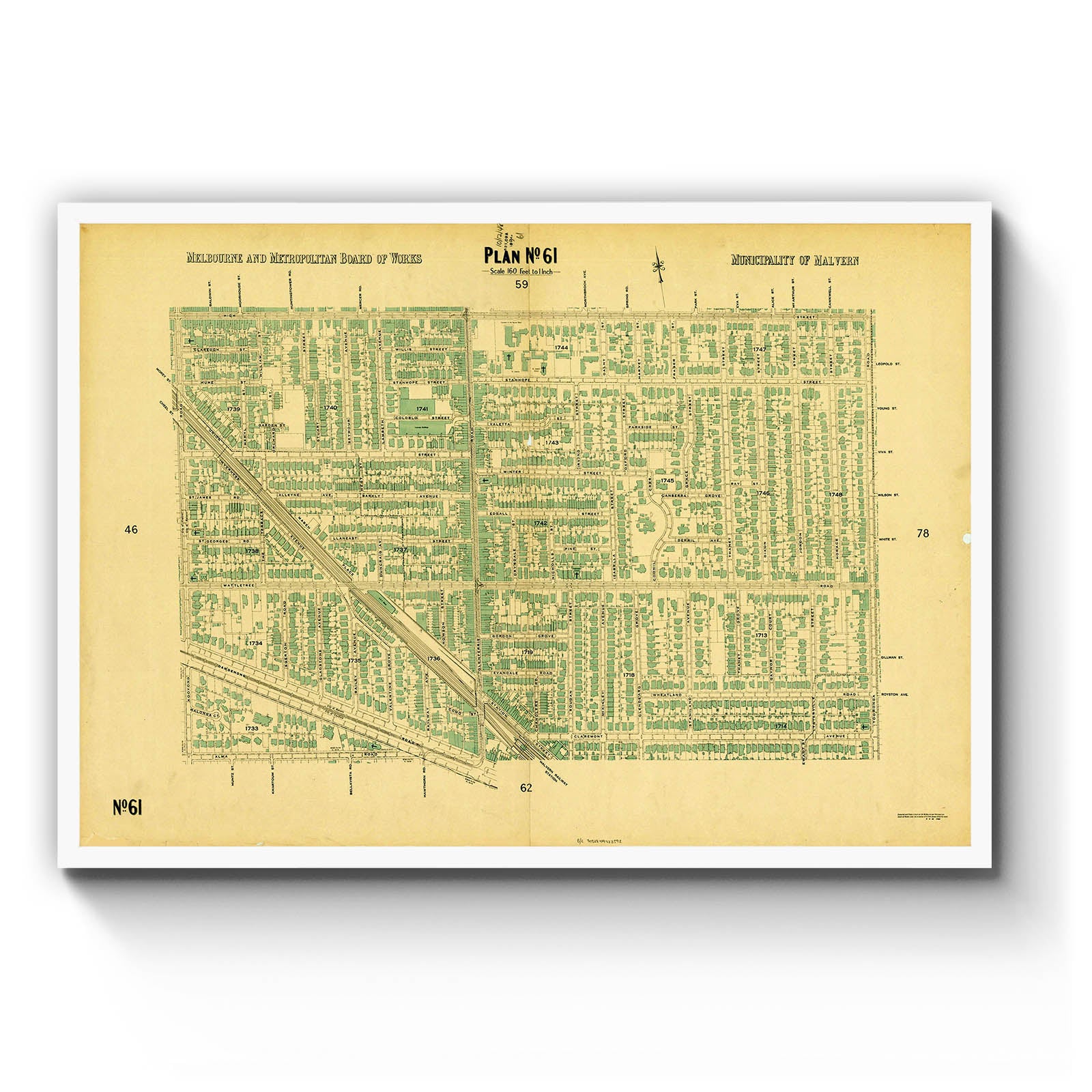 Melbourne and Metropolitan Board of Works plan, scale 160 feet to 1 inch. no.61 , Municipality of Malvern [cartographic material]. 1948.