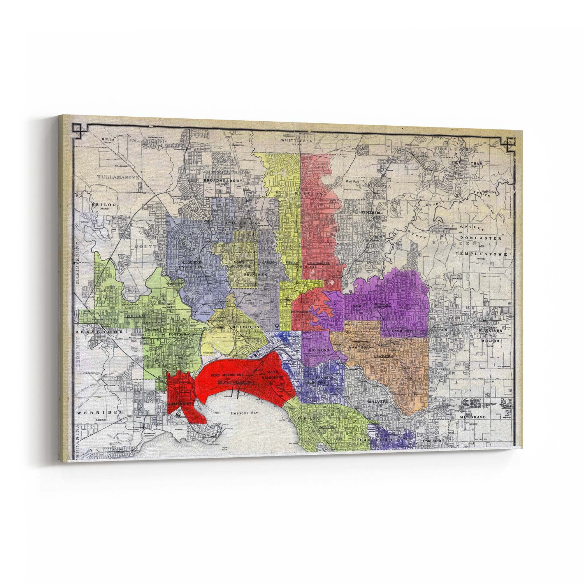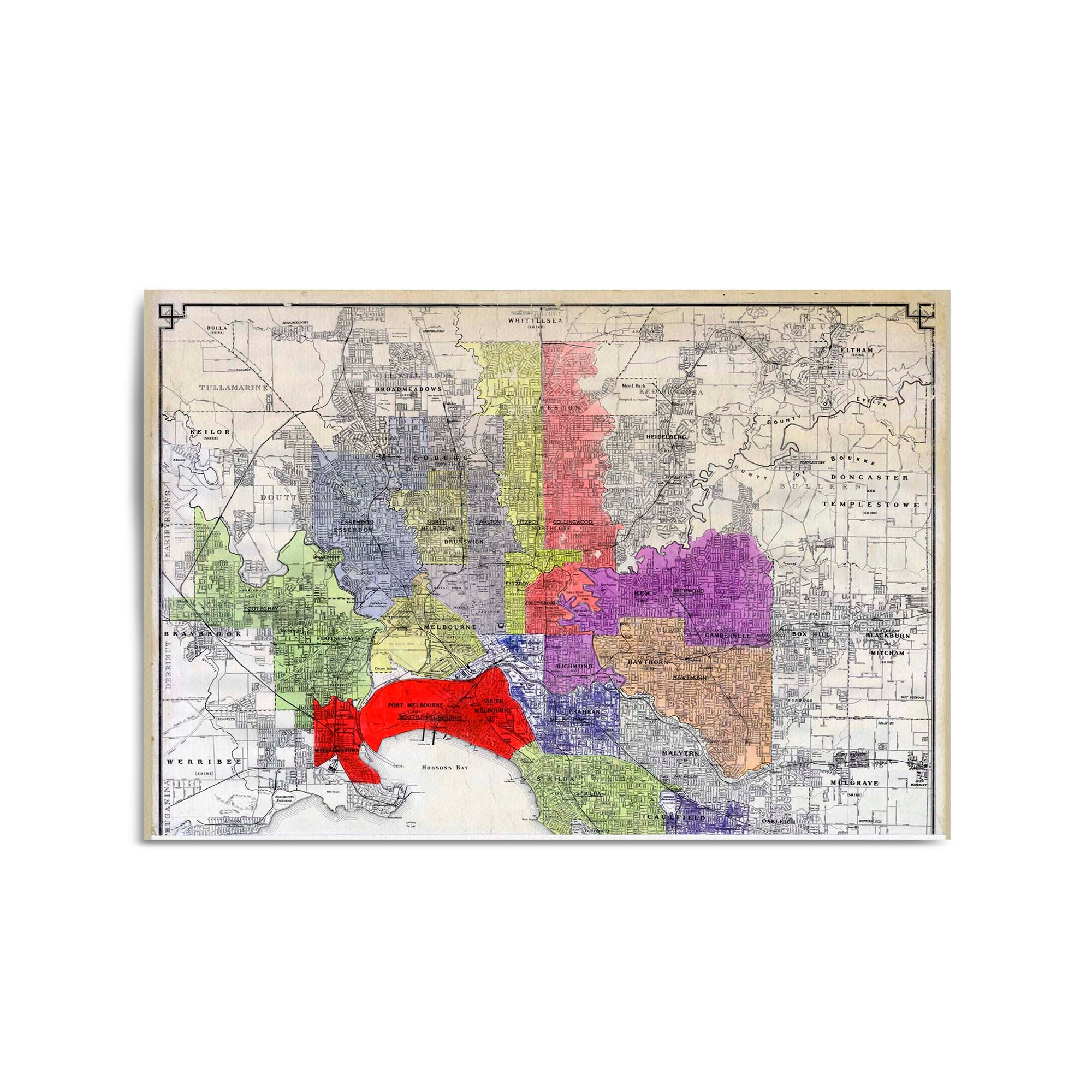 Recently moving to Harcourt and being interested in the history of the area, it seemed fitting to purchase a vintage map of the area which is displayed on our kitchen wall for us to study easily, identifying the block of land we bought. Nicely framed too.
