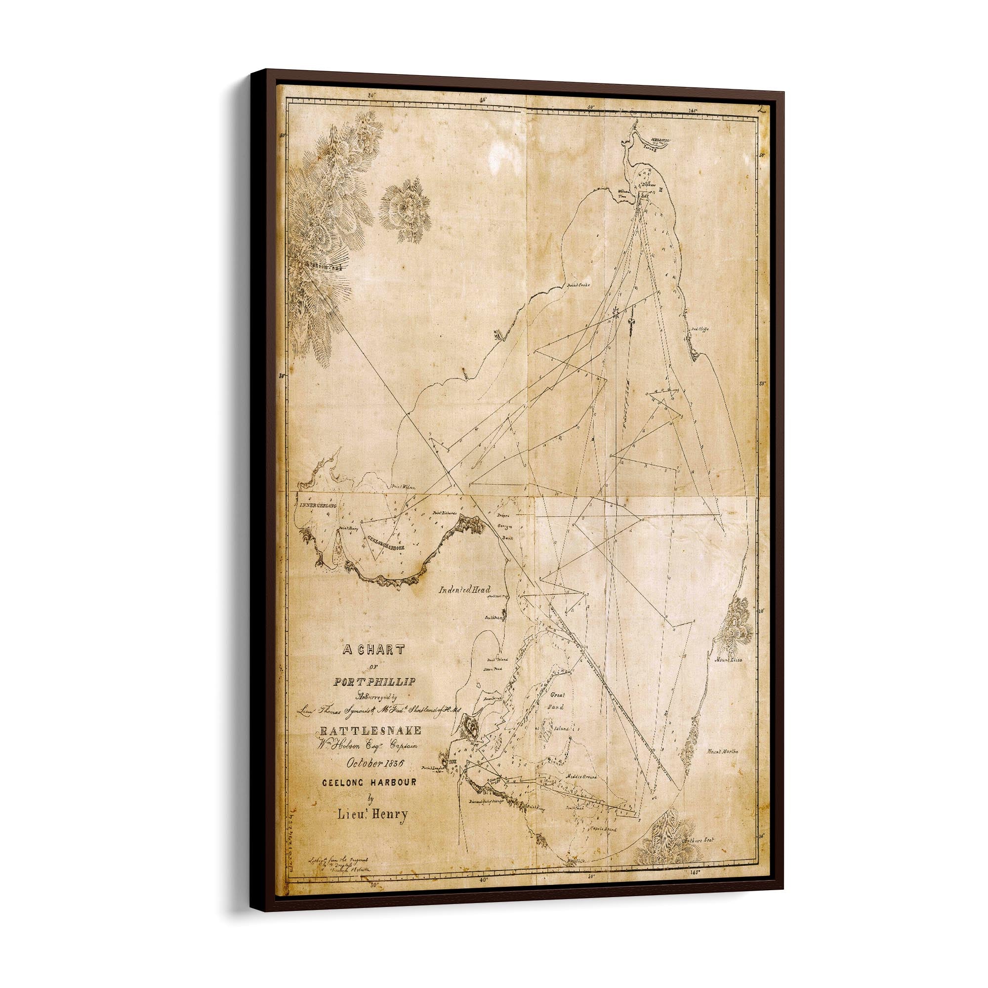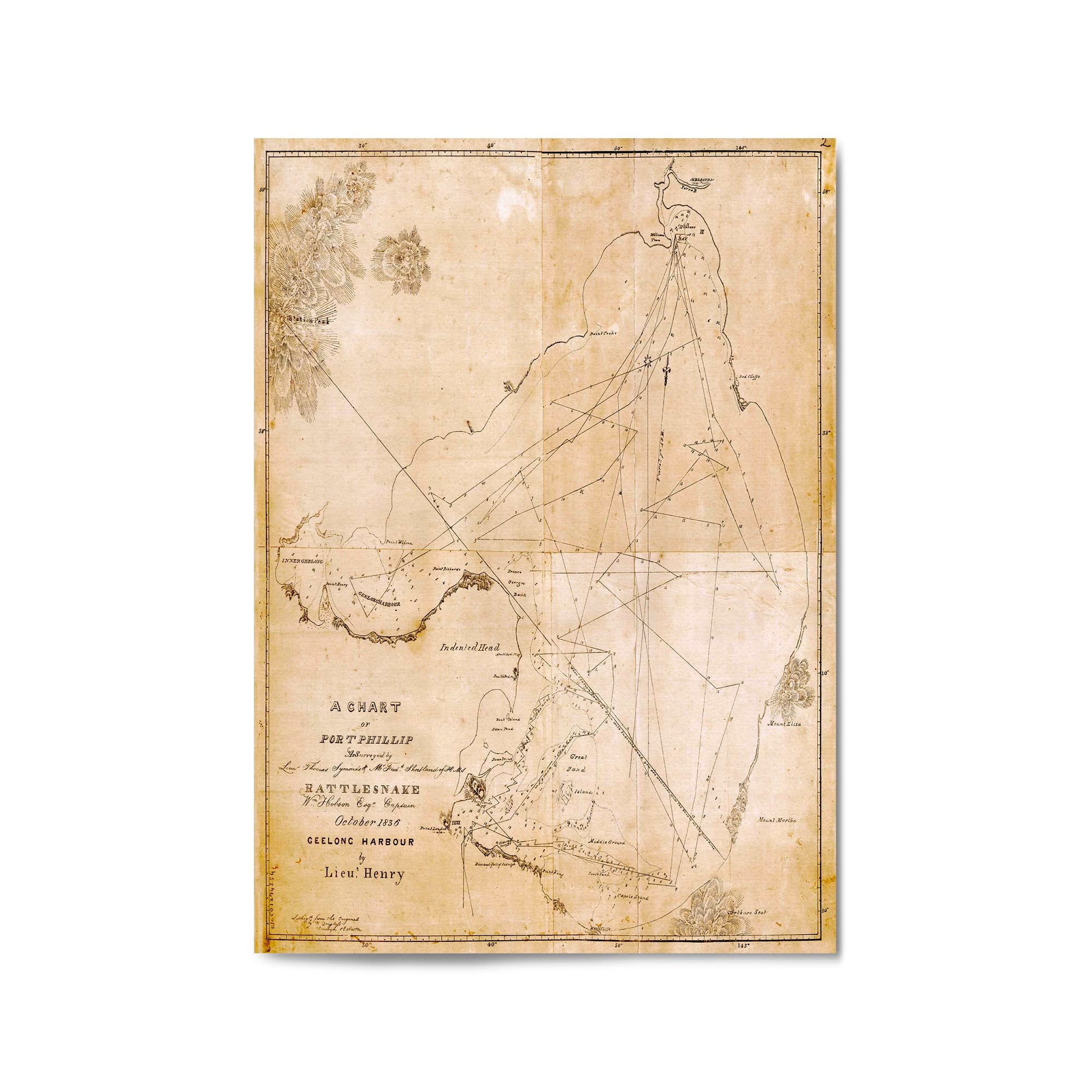 "Geelong Harbour by Lieut. Henry". "Litho'd from the original by H. Douglas, Surveyor, Hobart...". Relief shown by hachures and bathymetric soundings.