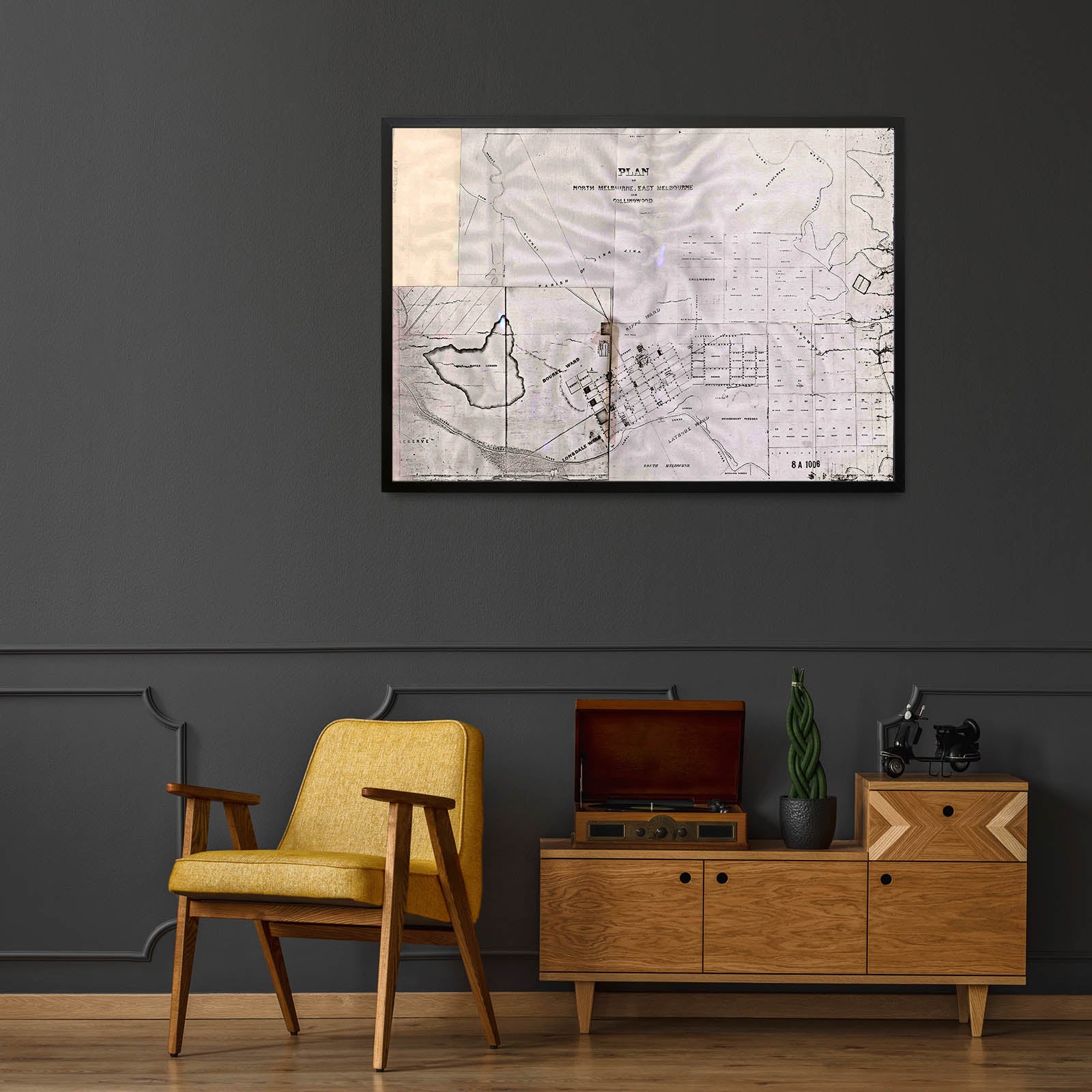 Recently moving to Harcourt and being interested in the history of the area, it seemed fitting to purchase a vintage map of the area which is displayed on our kitchen wall for us to study easily, identifying the block of land we bought. Nicely framed too.