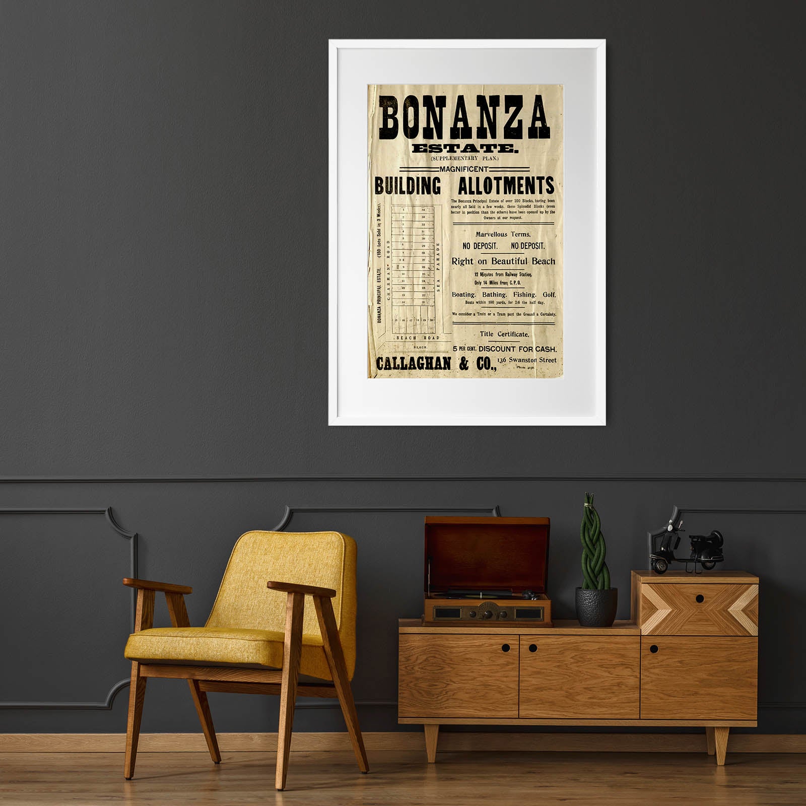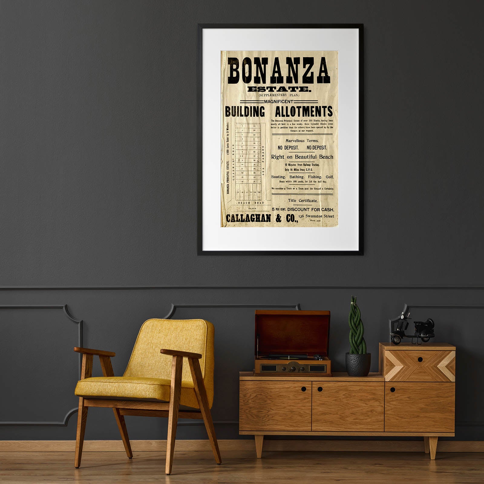 After printing, your order will be professionally framed. Our frames are made from FSC-approved wood, they are flat-edged and come with a museum-grade glass window. B1 & A0 sized frames come with an acrylic window. This is to prevent breakage while in transit.