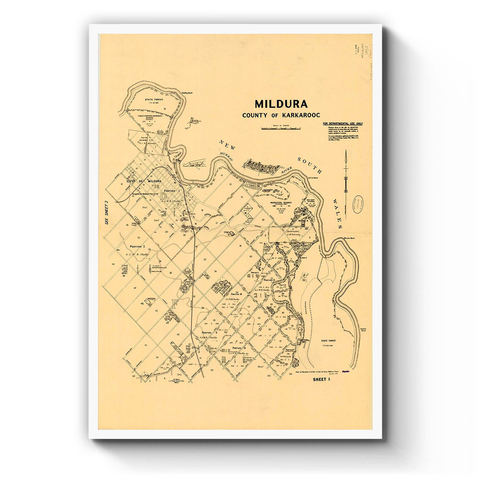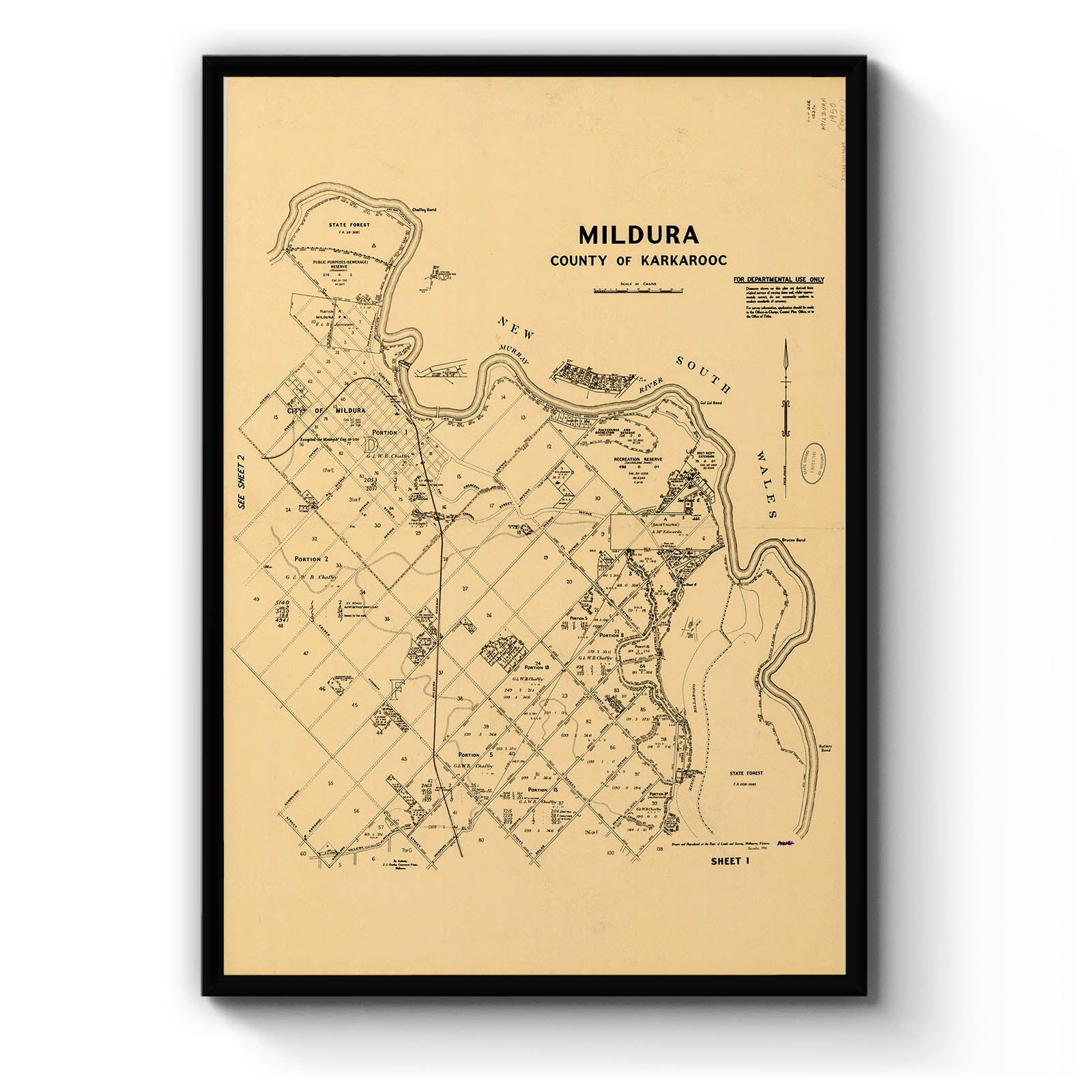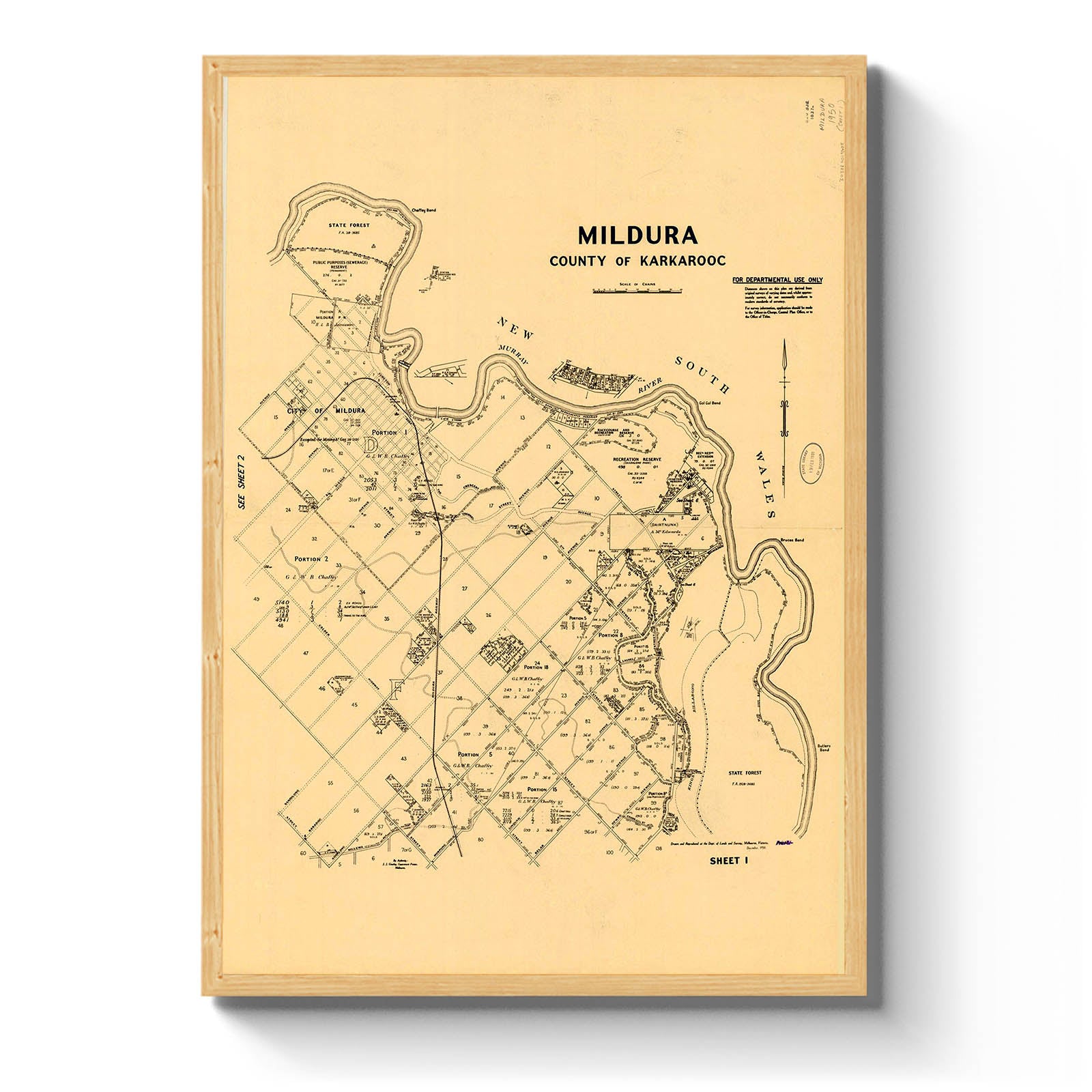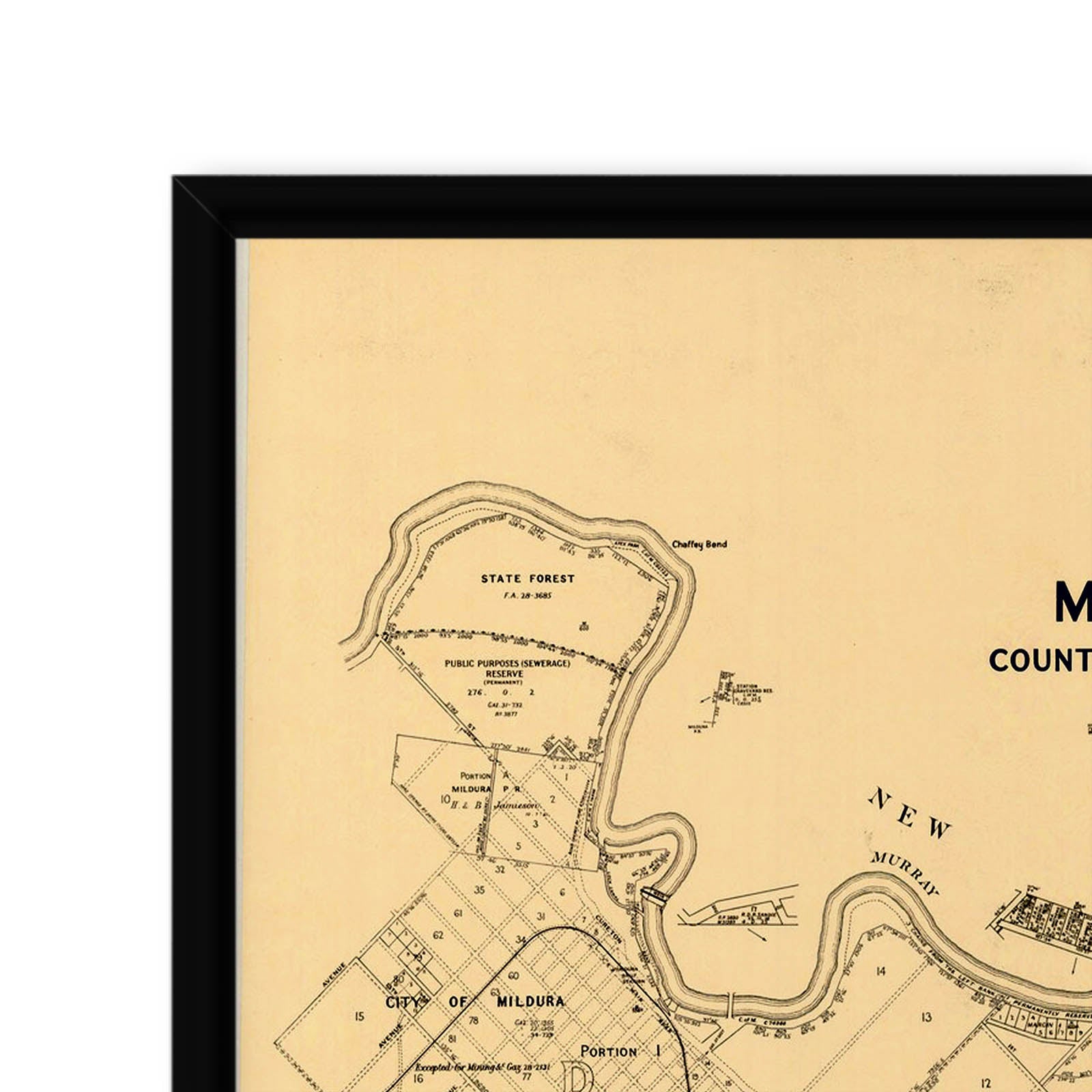 Recently moving to Harcourt and being interested in the history of the area, it seemed fitting to purchase a vintage map of the area which is displayed on our kitchen wall for us to study easily, identifying the block of land we bought. Nicely framed too.