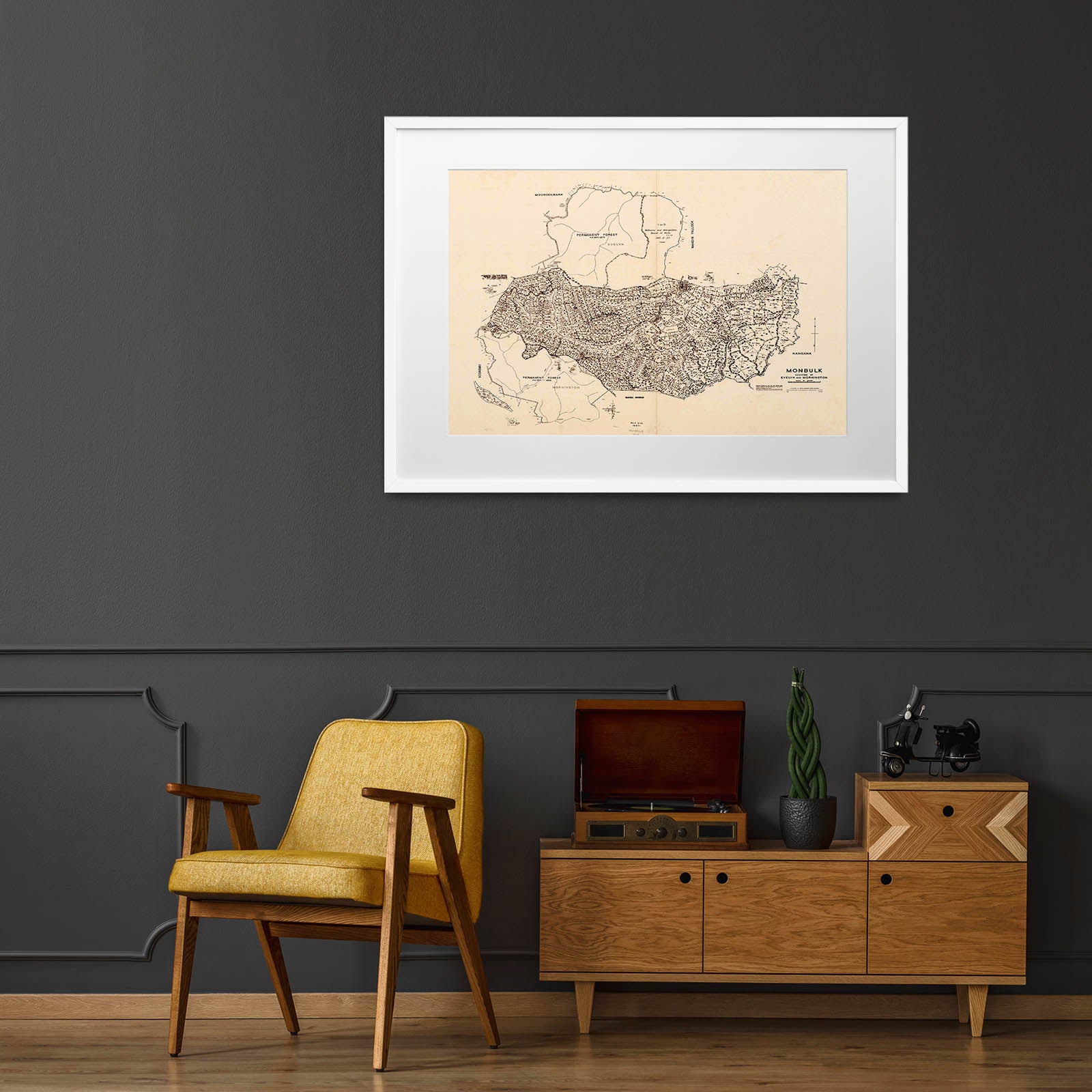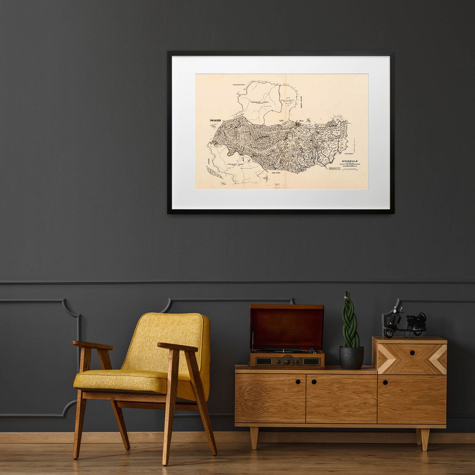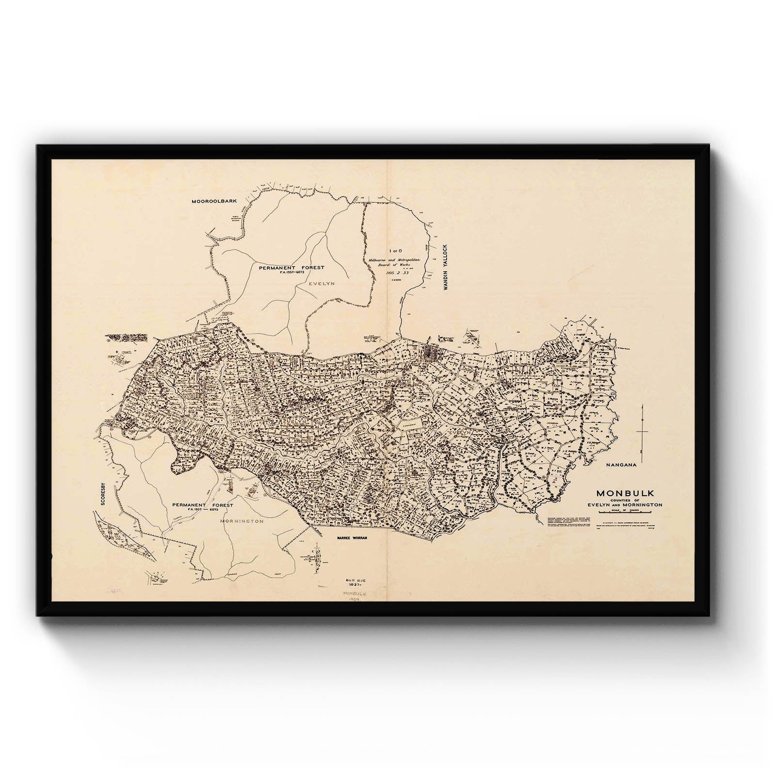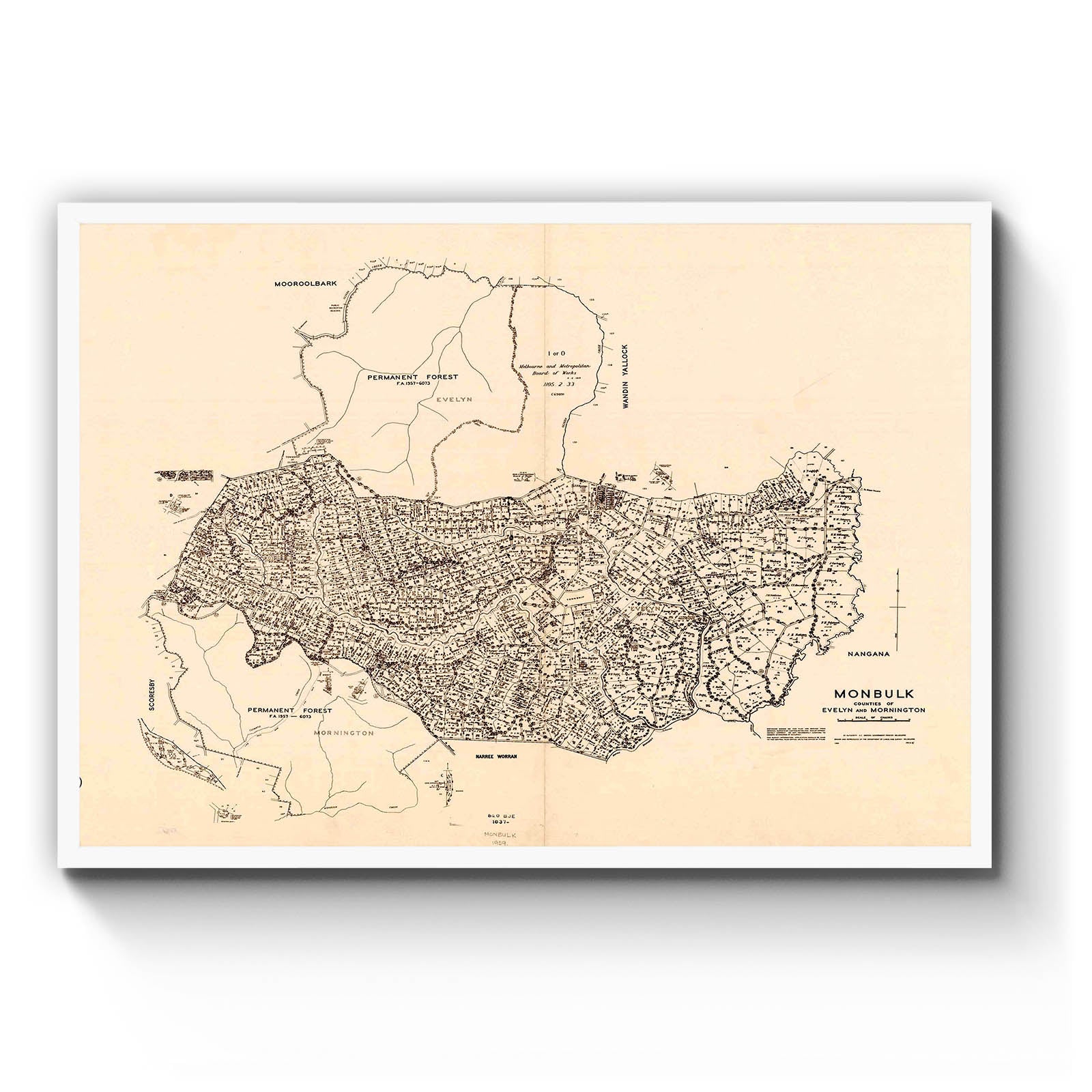 Recently moving to Harcourt and being interested in the history of the area, it seemed fitting to purchase a vintage map of the area which is displayed on our kitchen wall for us to study easily, identifying the block of land we bought. Nicely framed too.