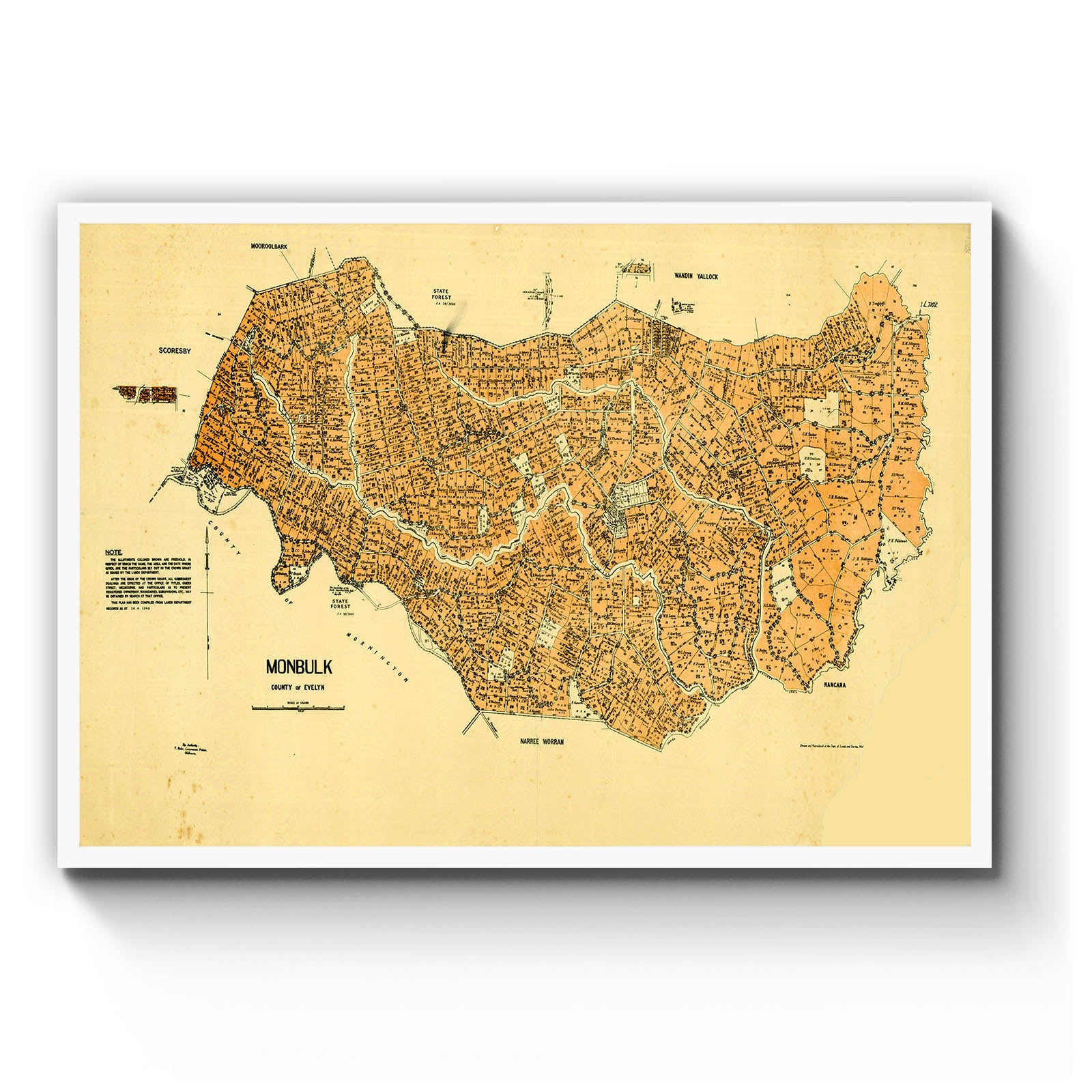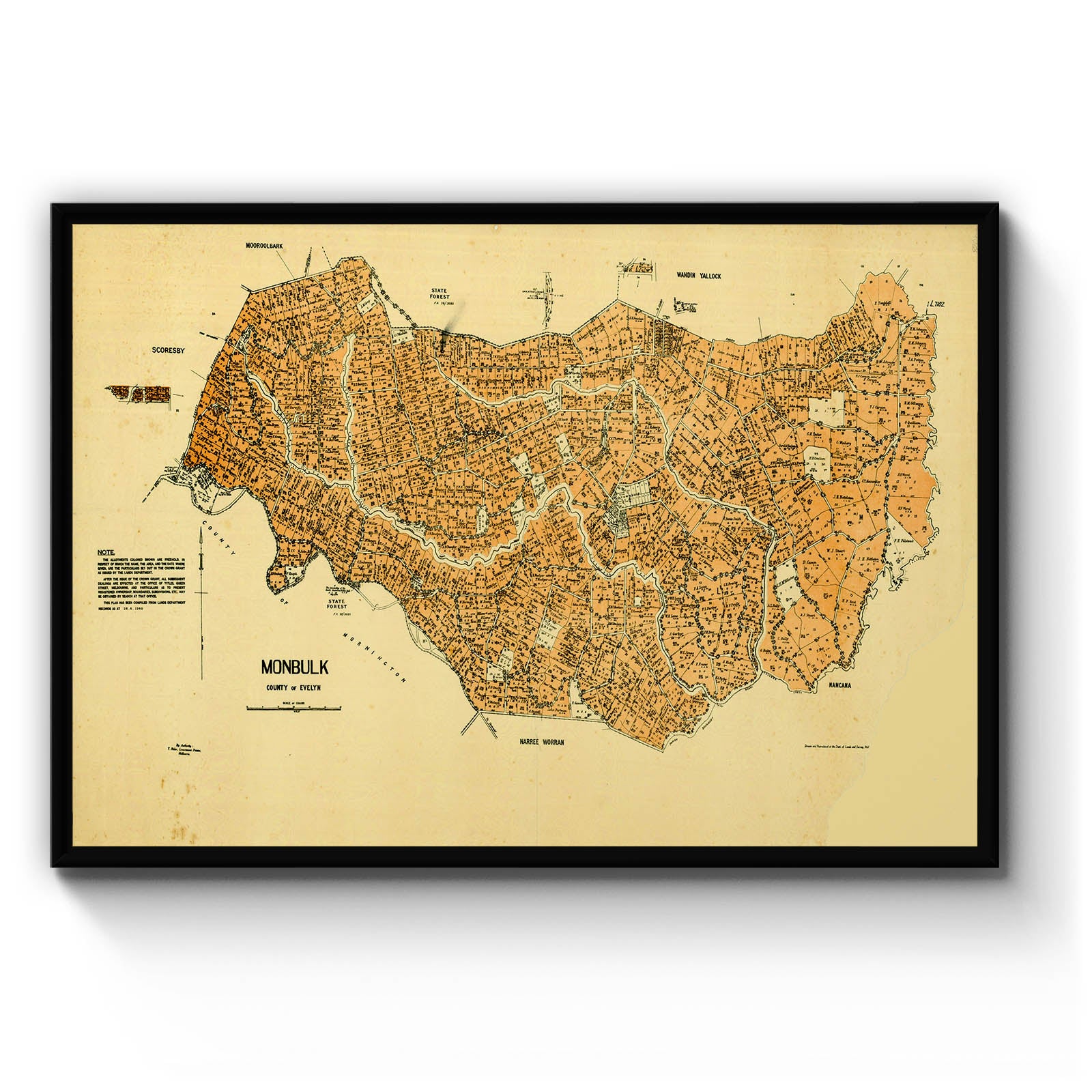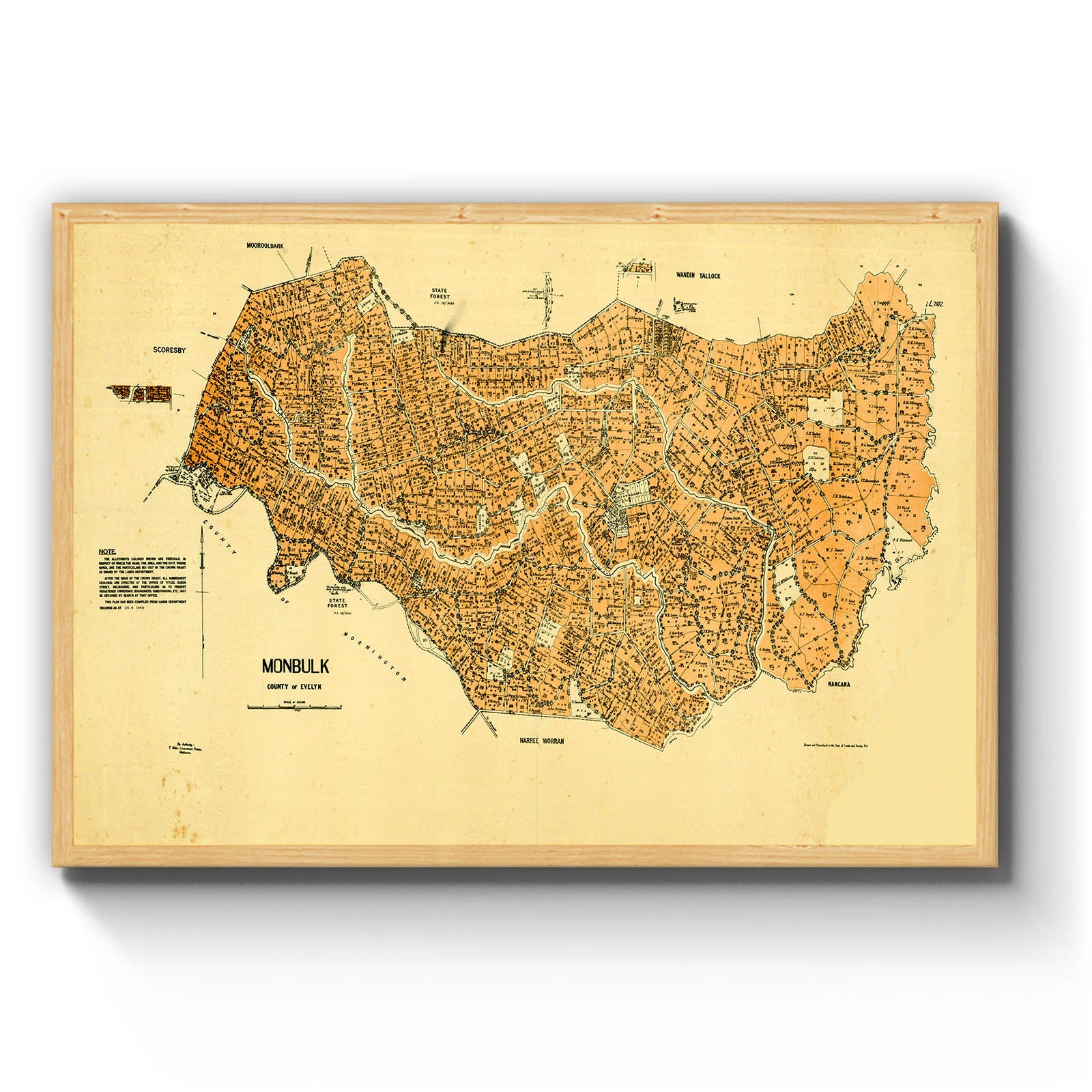 Cadastral map of Monbulk in Victoria, showing landowners.