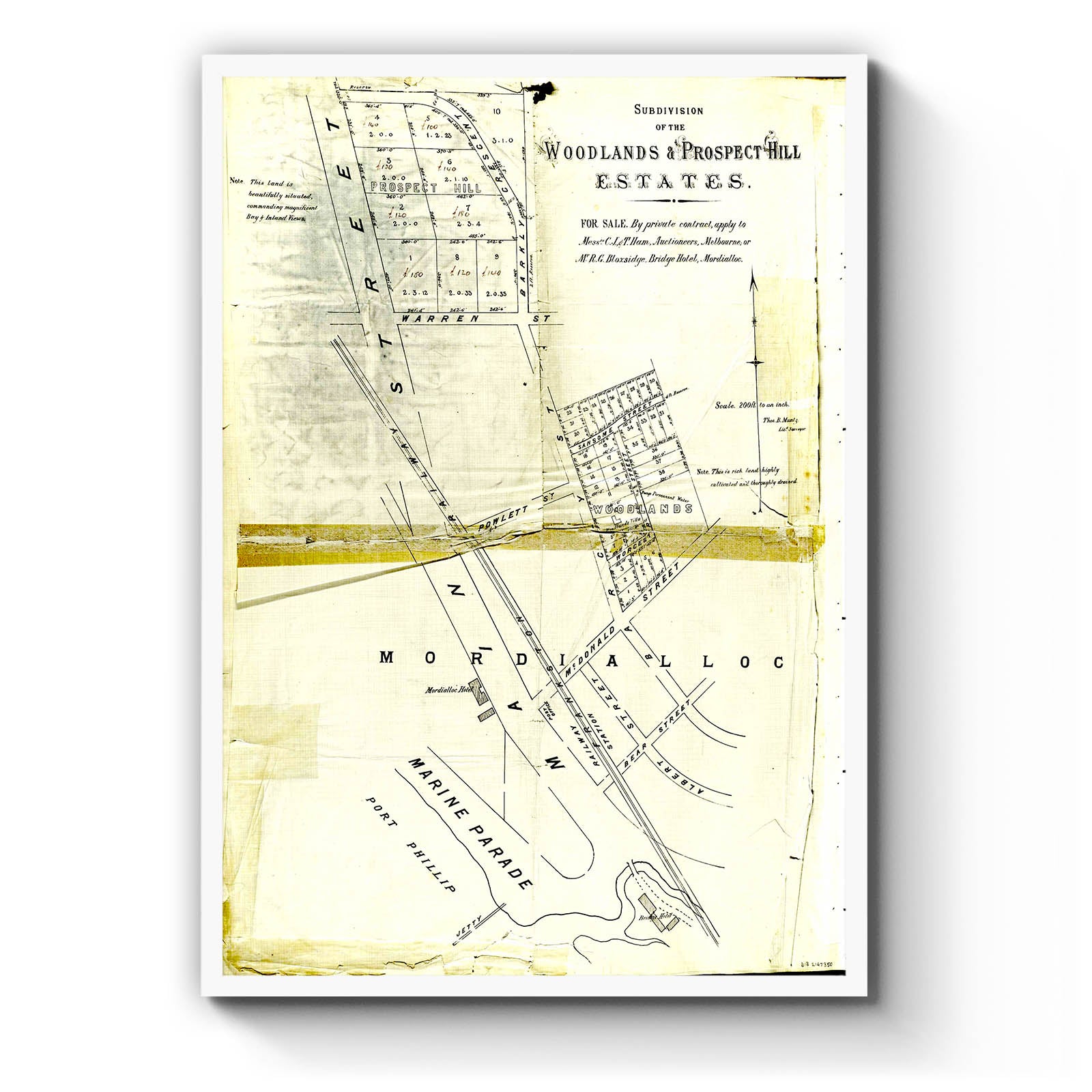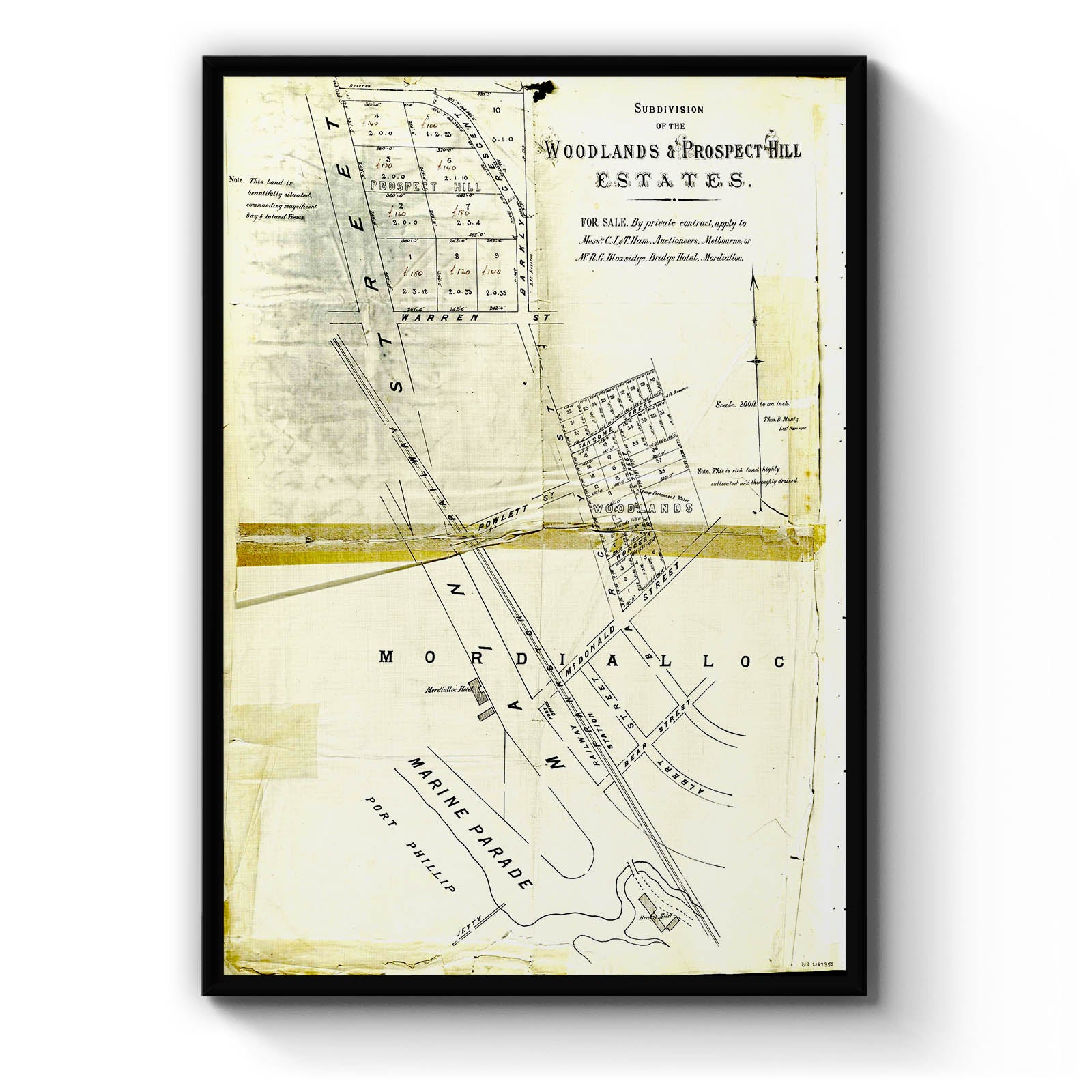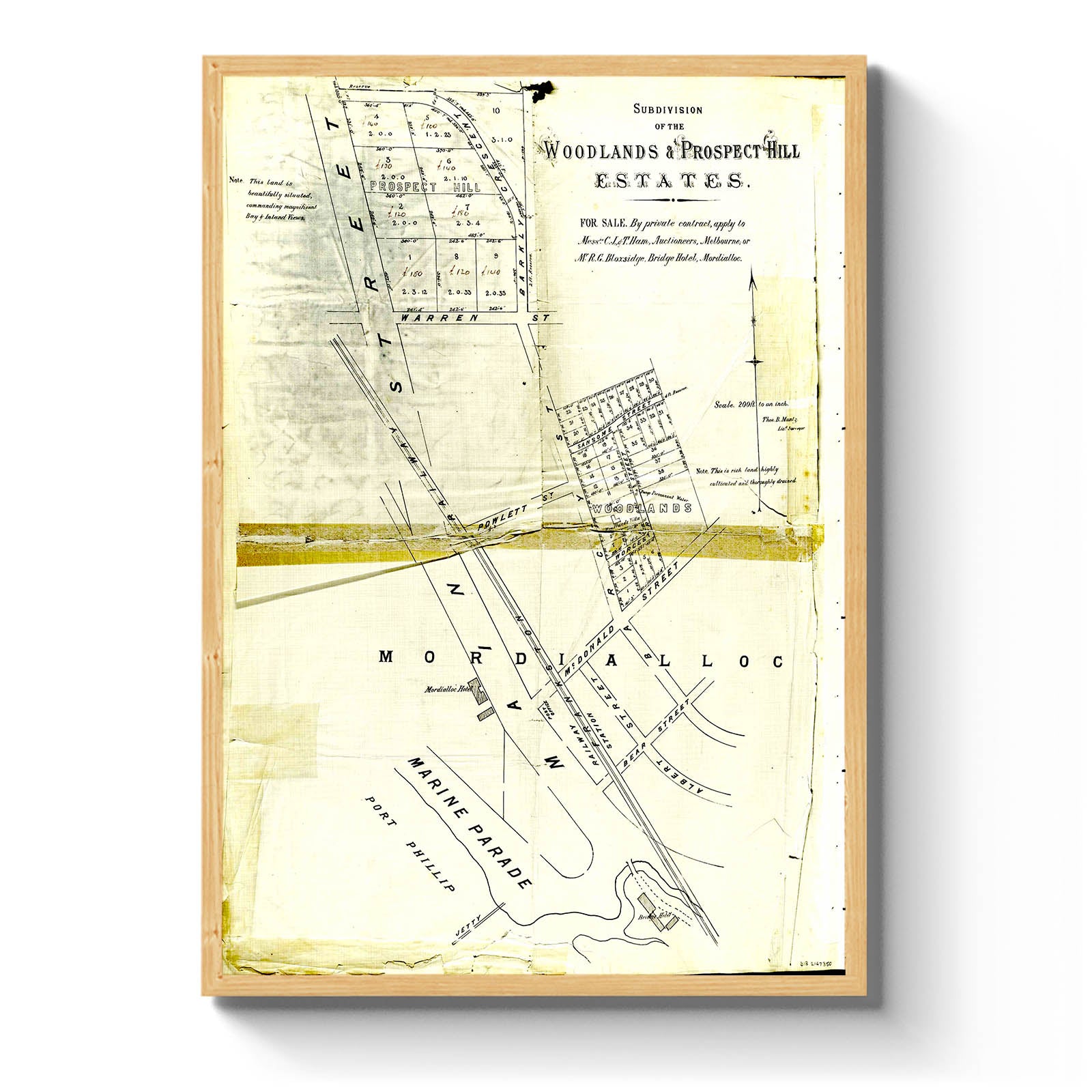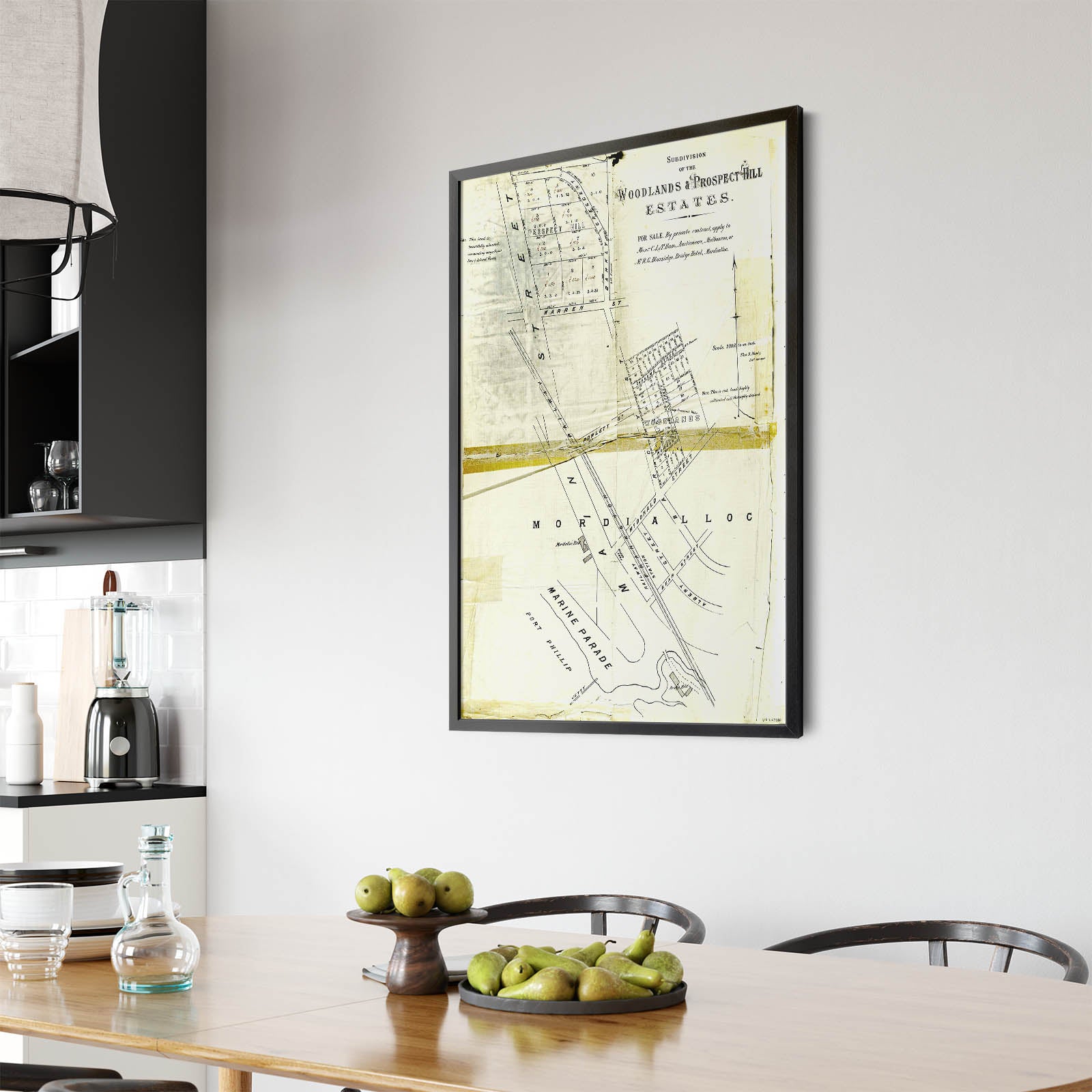 Recently moving to Harcourt and being interested in the history of the area, it seemed fitting to purchase a vintage map of the area which is displayed on our kitchen wall for us to study easily, identifying the block of land we bought. Nicely framed too.
