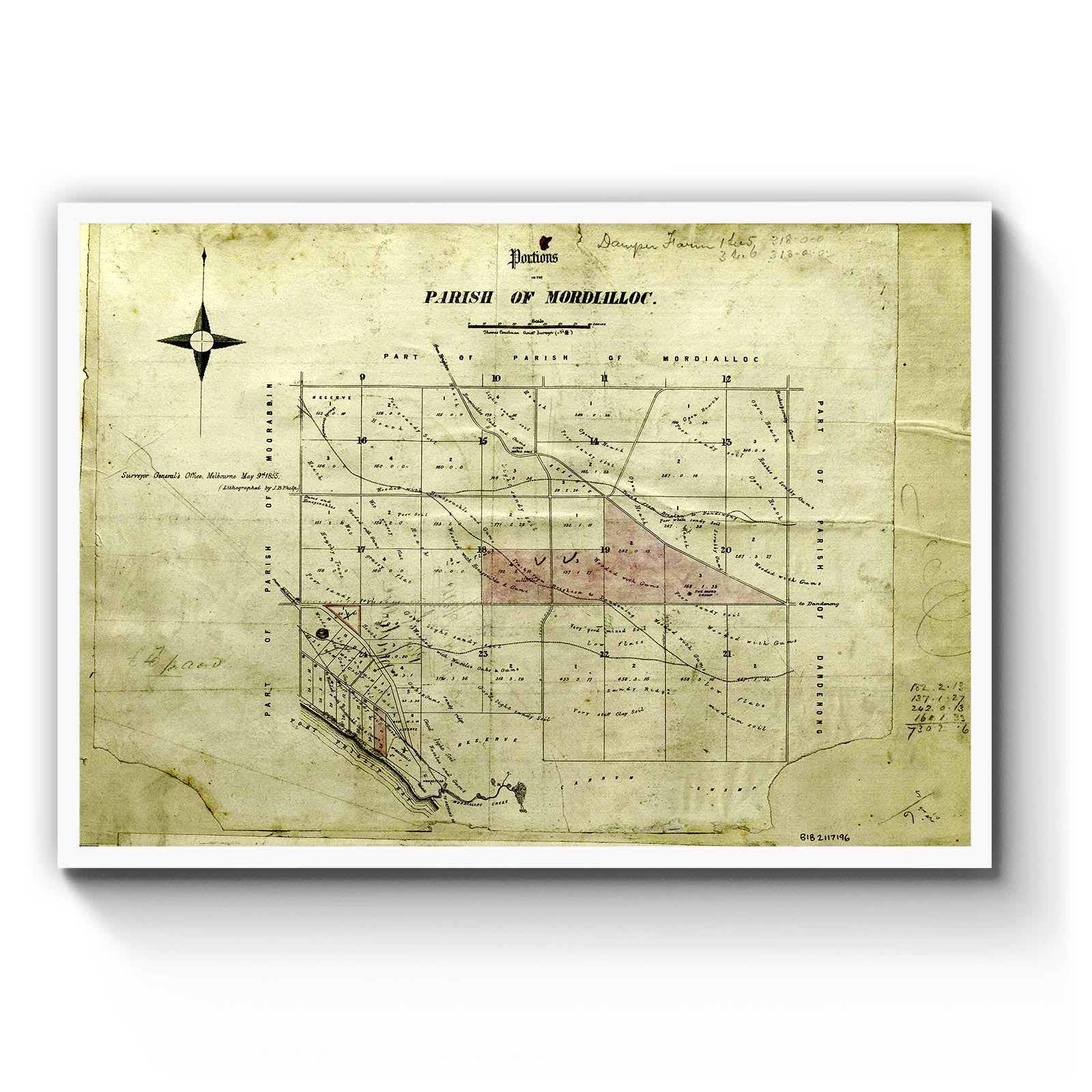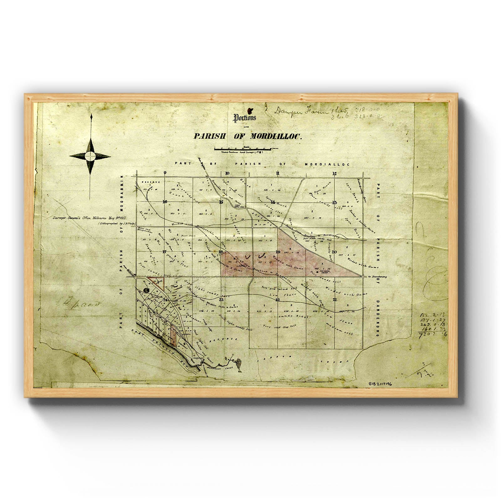 Portions in the Parish of Mordialloc, [cartographic material] / Thomas Coachman, Assist. Surveyor, Surveyor General's Office, Melbourne, May 9th 1855 ; lithographed by J. B. Philp. 1855.