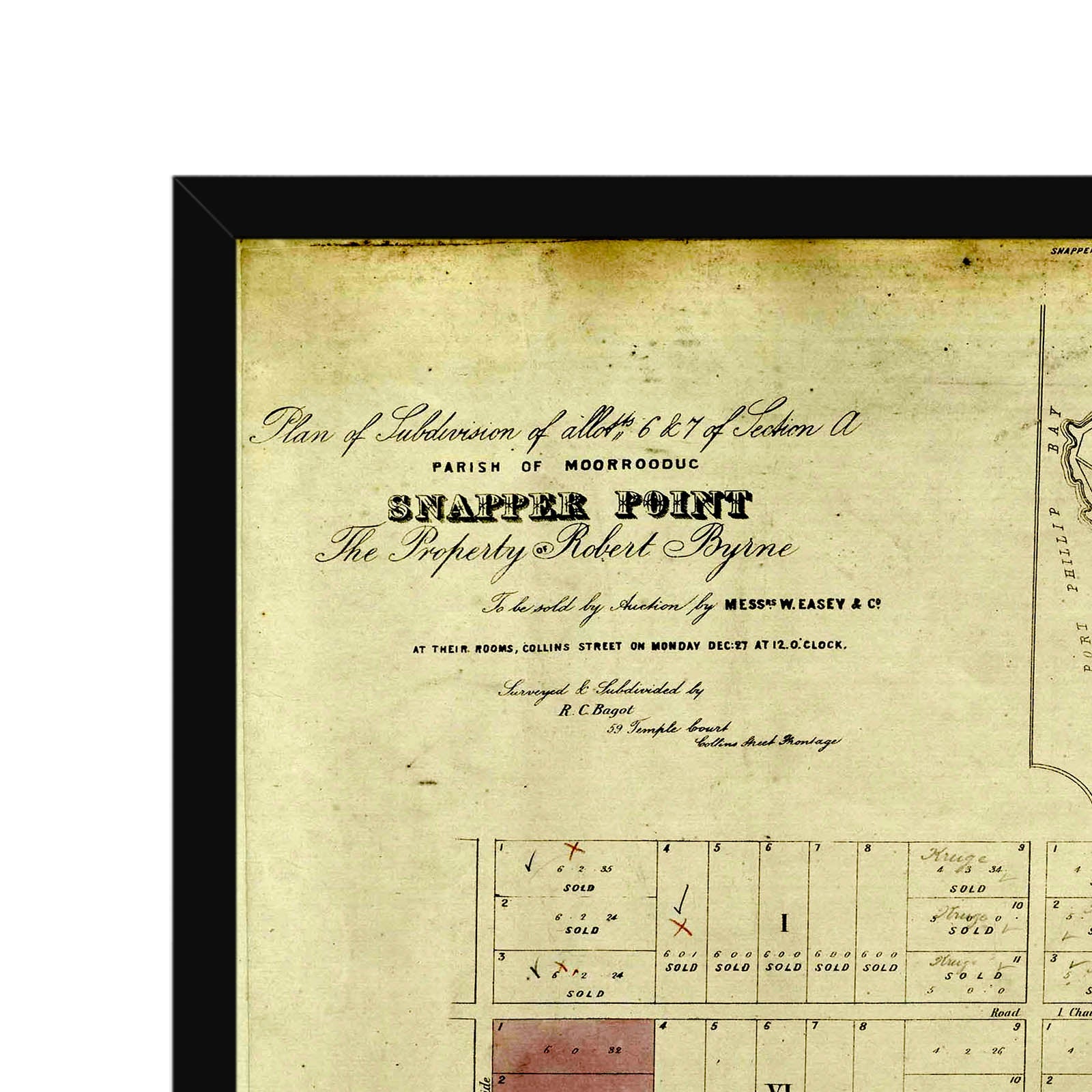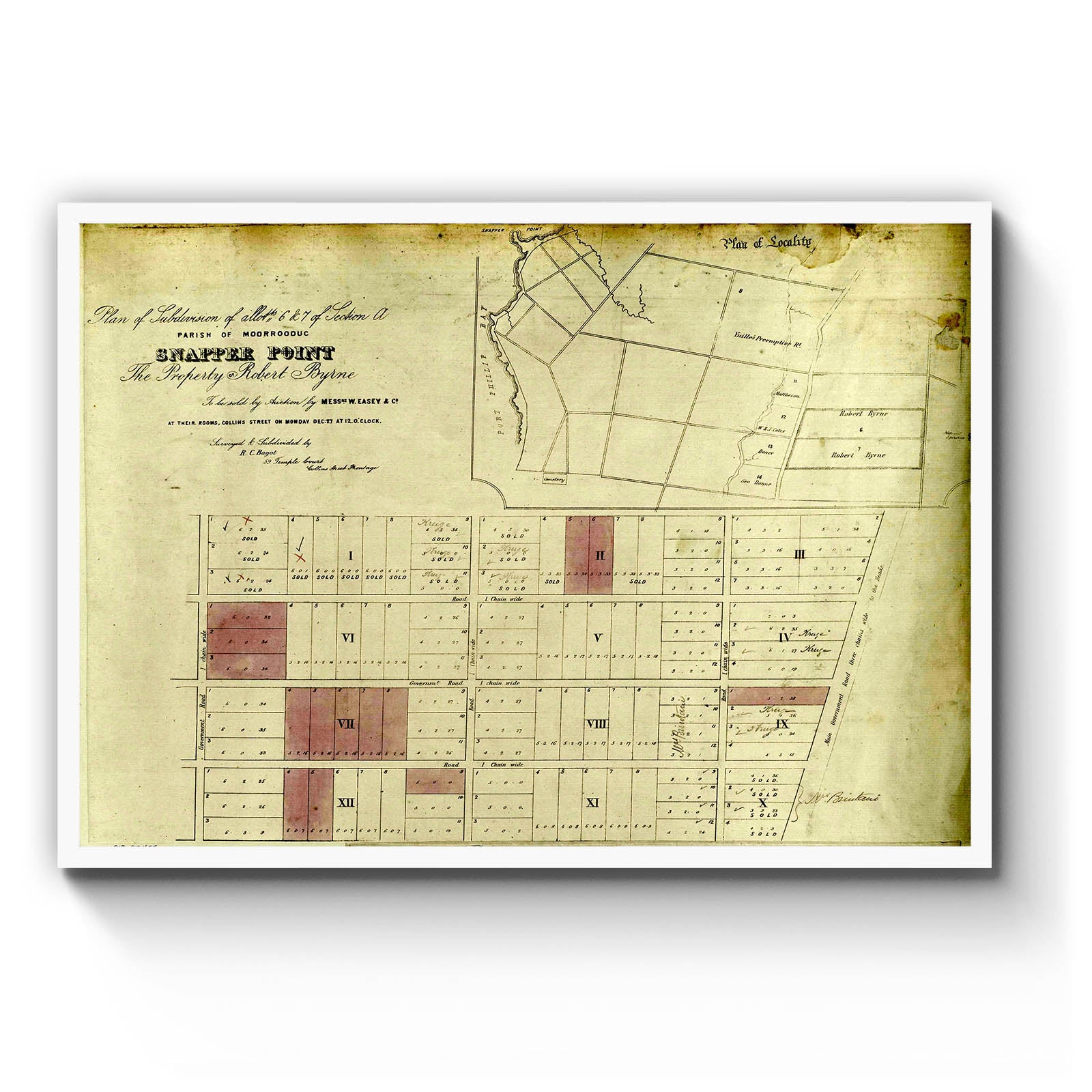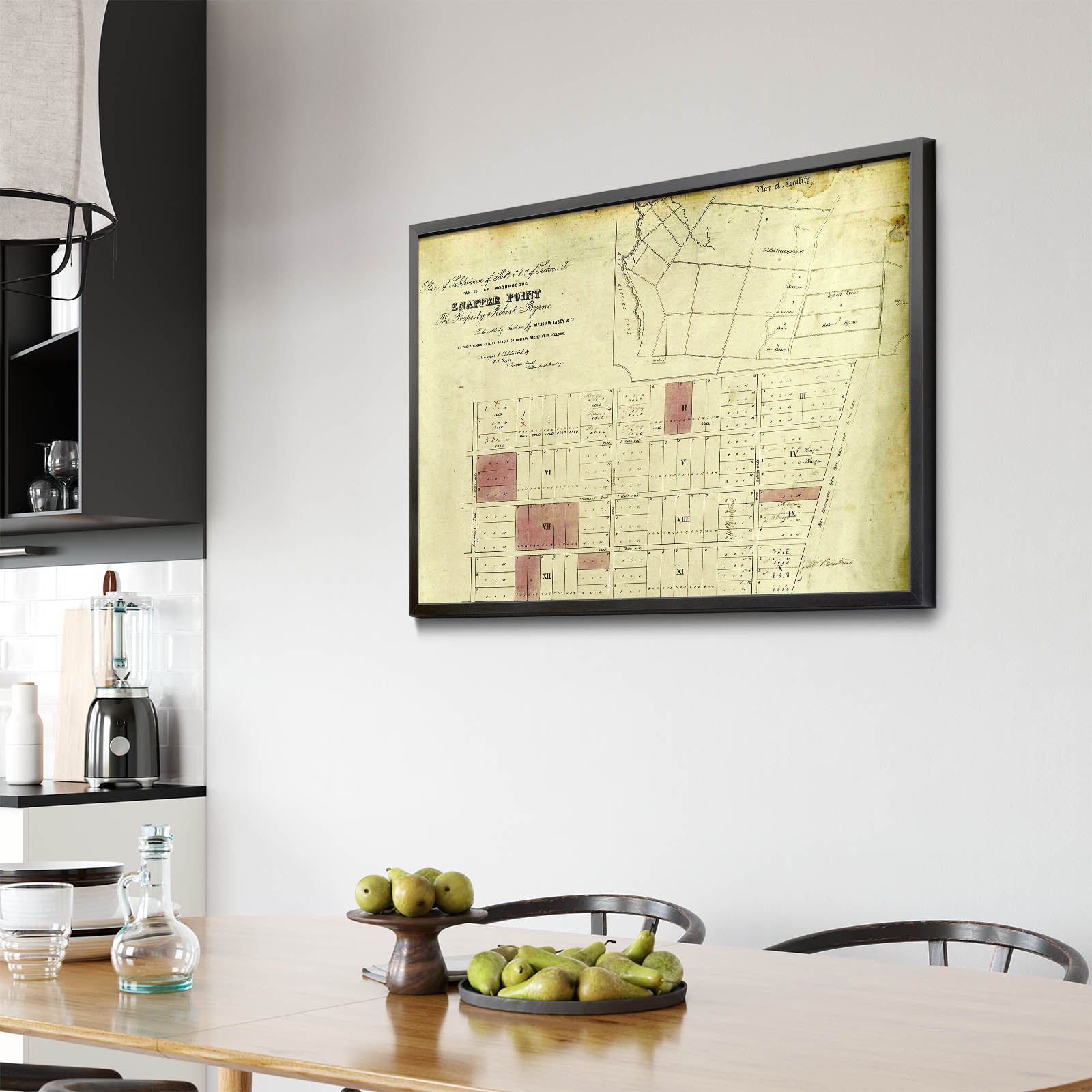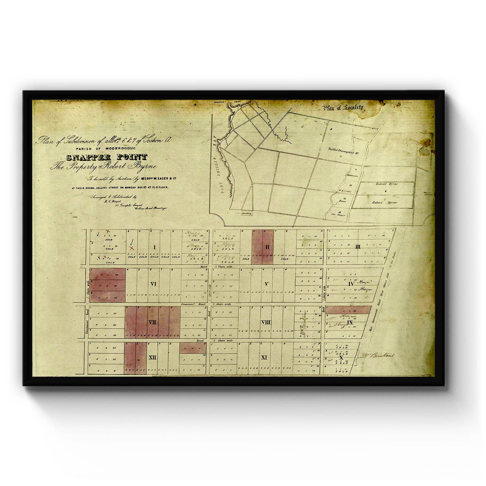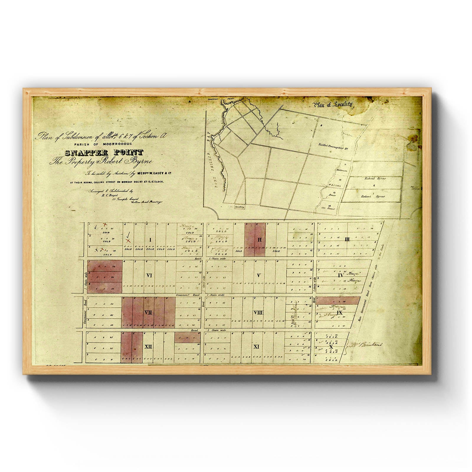 Recently moving to Harcourt and being interested in the history of the area, it seemed fitting to purchase a vintage map of the area which is displayed on our kitchen wall for us to study easily, identifying the block of land we bought. Nicely framed too.