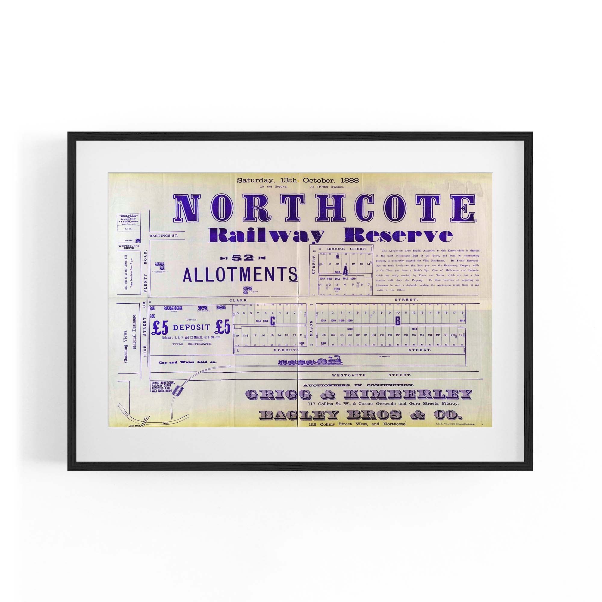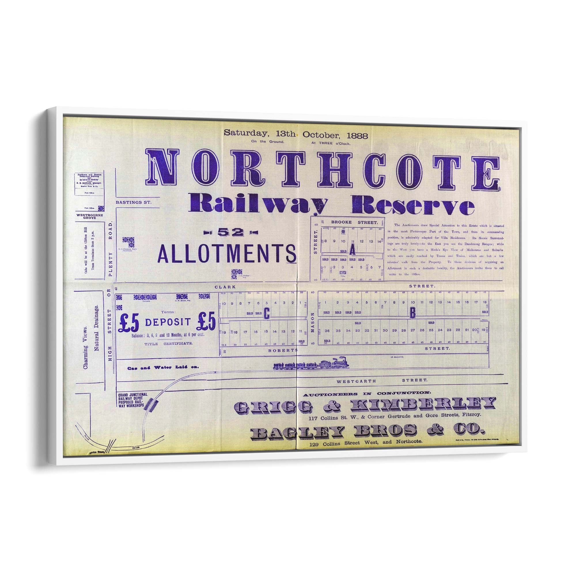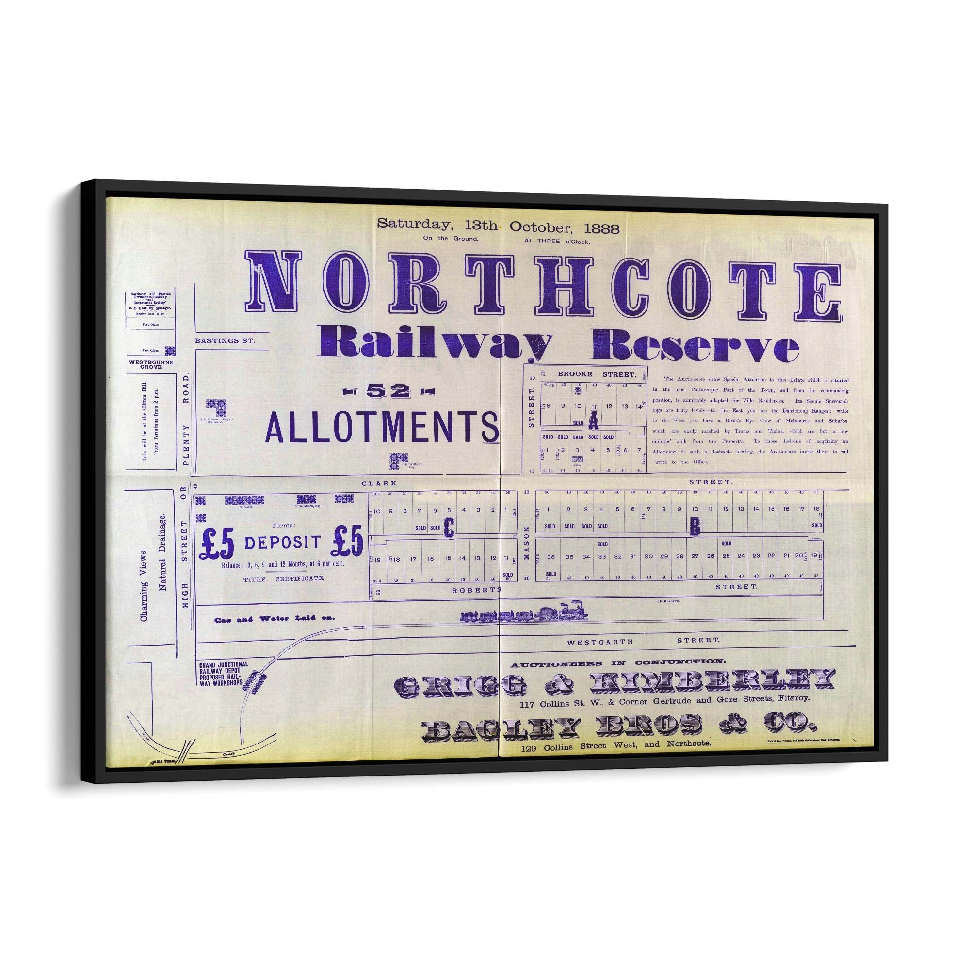 1888 Vintage Map of Northcote, Victoria Australia