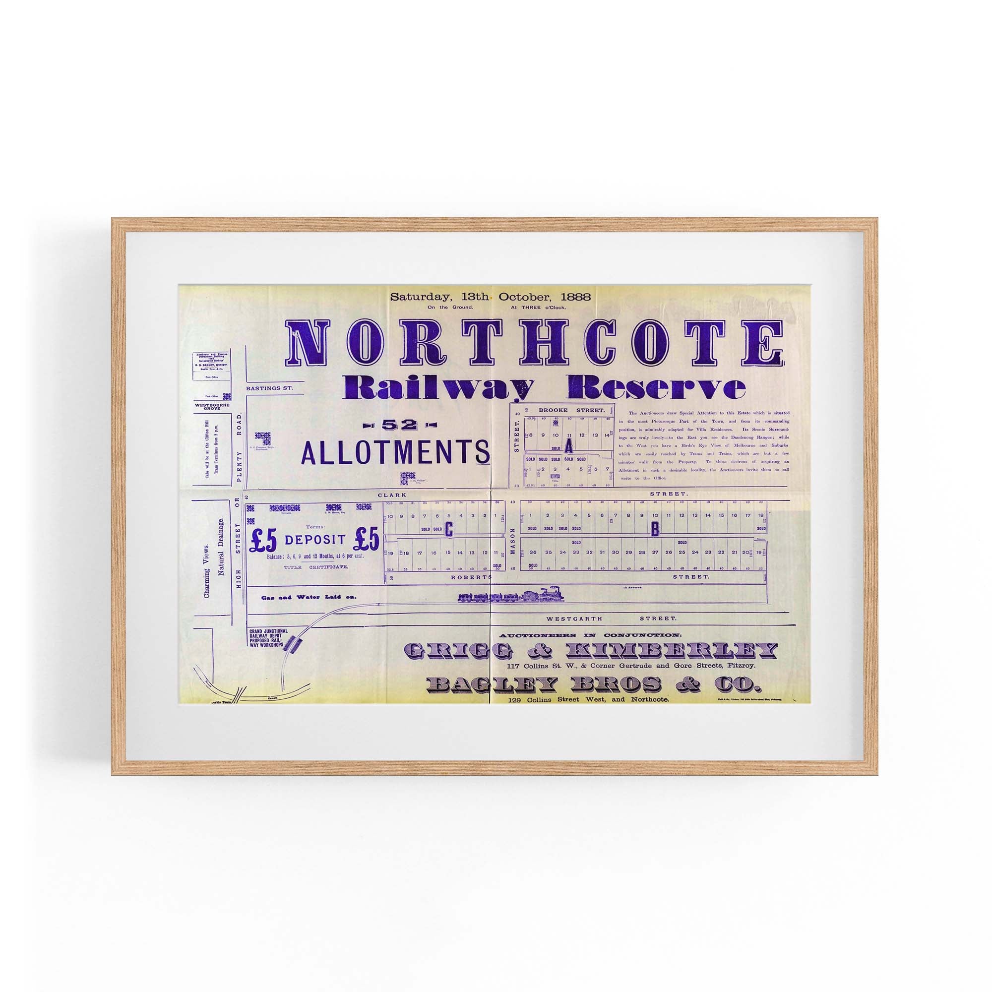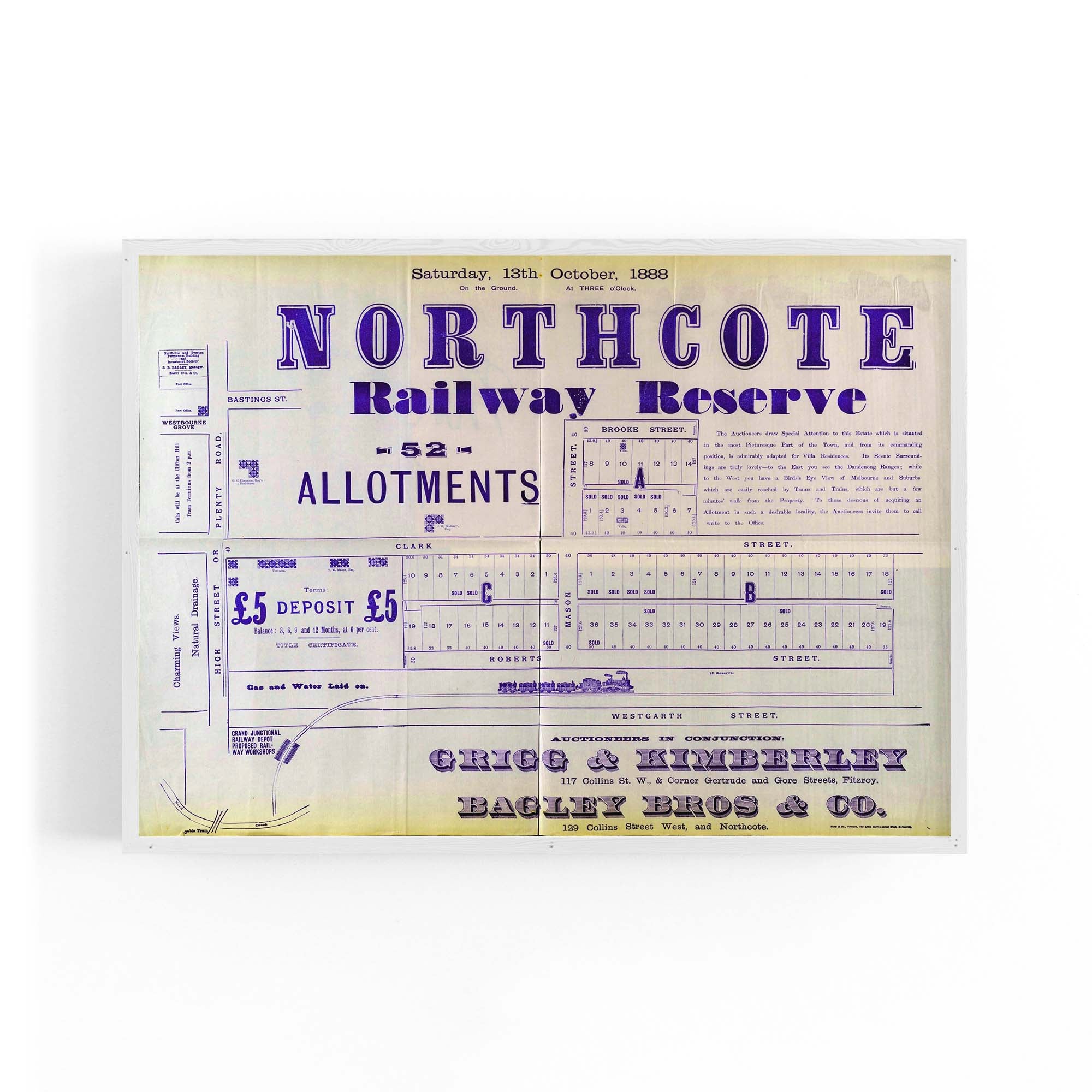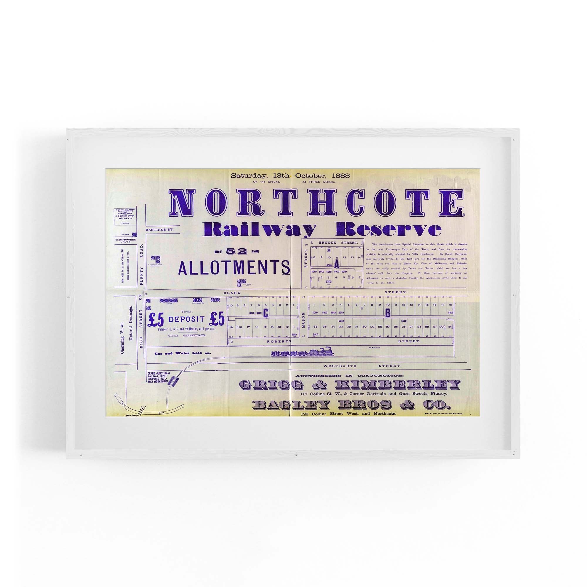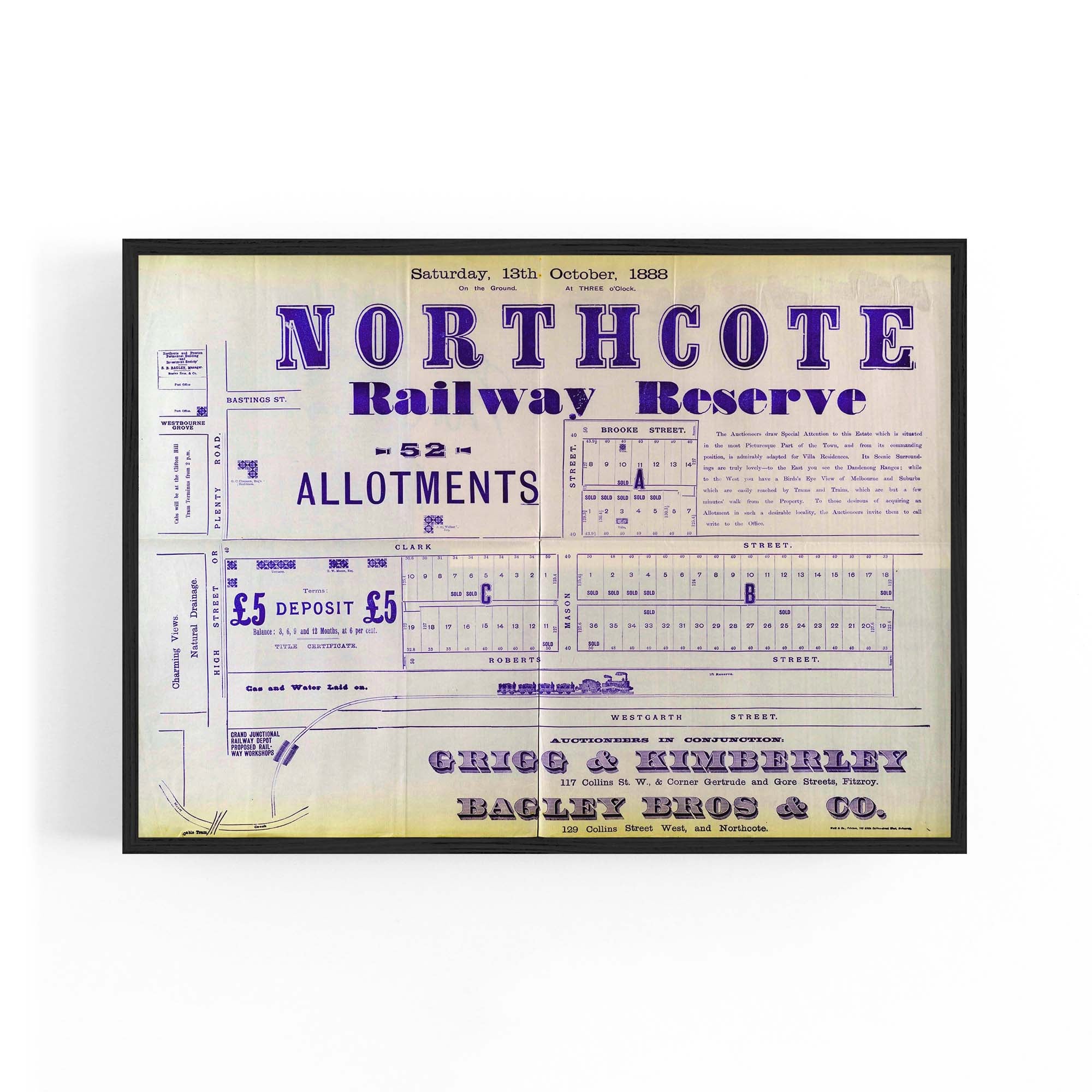 1888 Vintage Map of Northcote, Victoria Australia