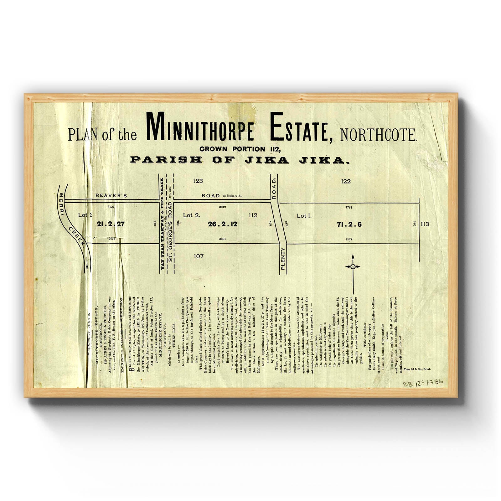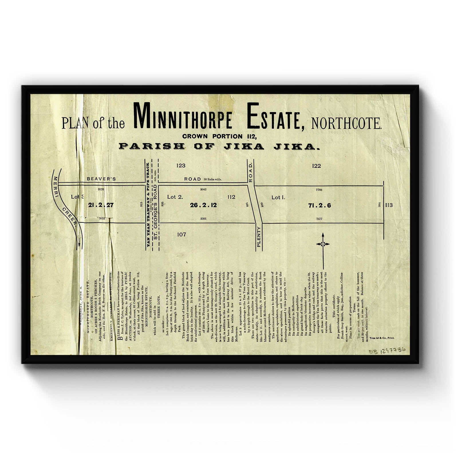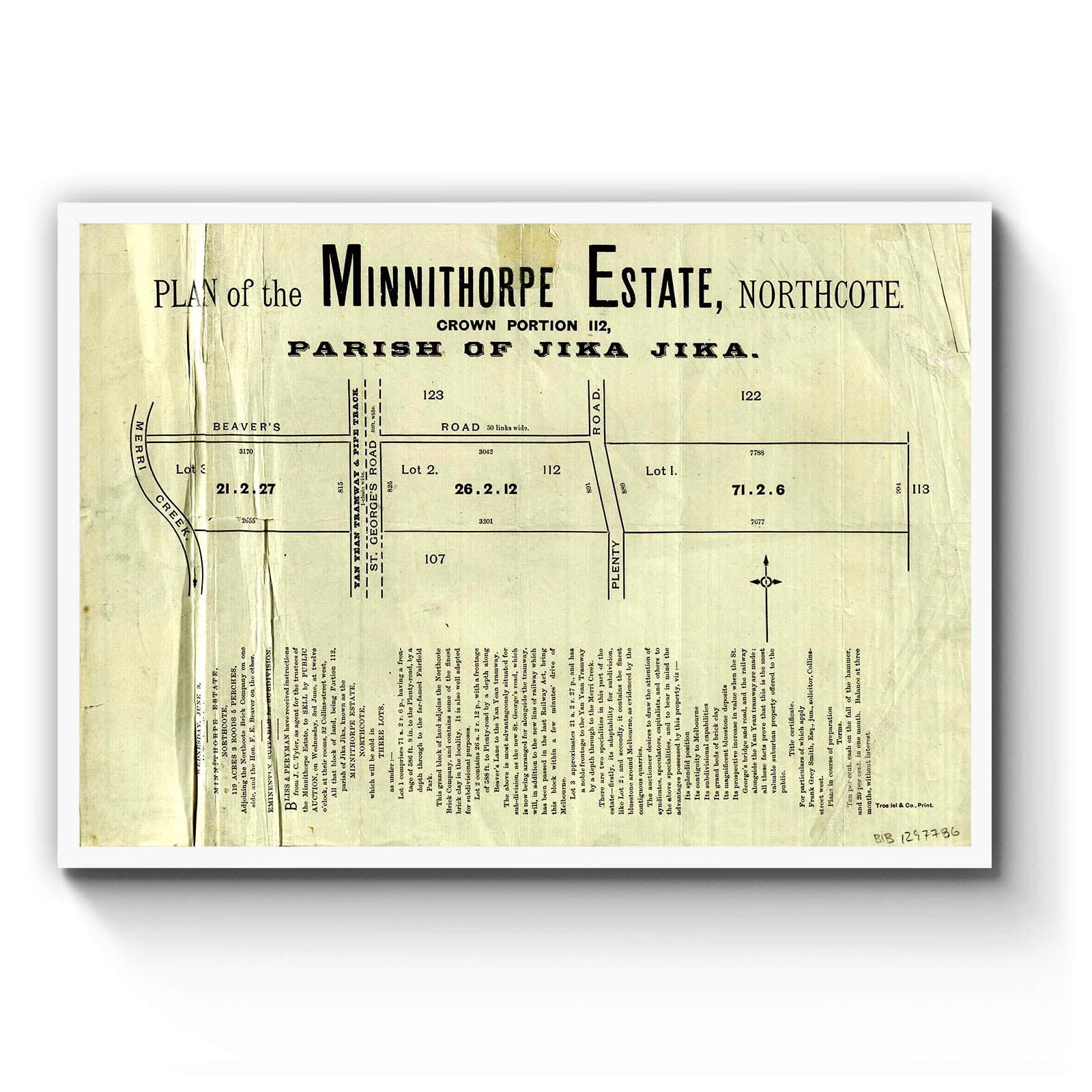 Plan of the Minnithorpe Estate, Northcote [cartographic material]. [1885?]