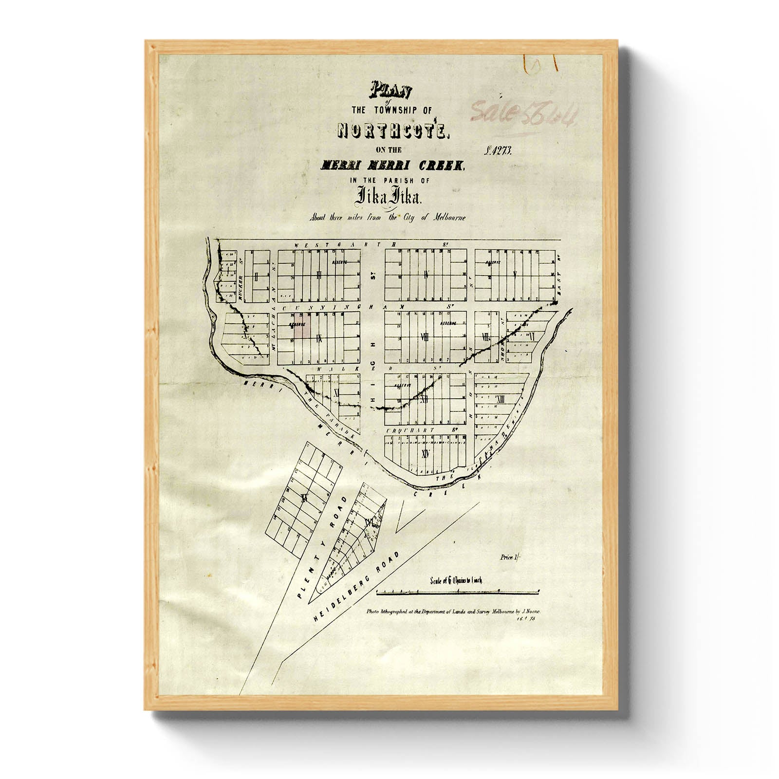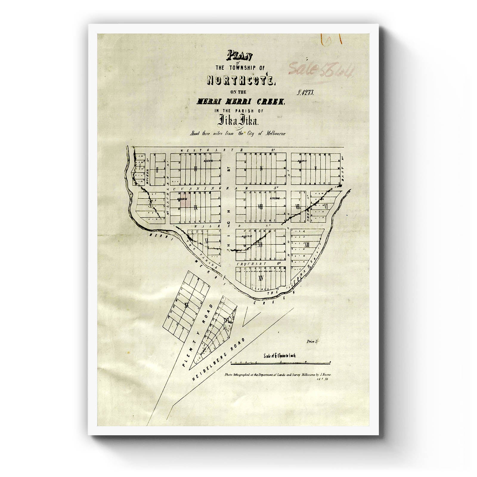 Plan of the Township of Northcote on the Merri Merri Creek in the Parish of Jika Jika [cartographic material] / photo-lithographed at the Department of Lands and Survey, Melbourne, by J. Noone 1875.