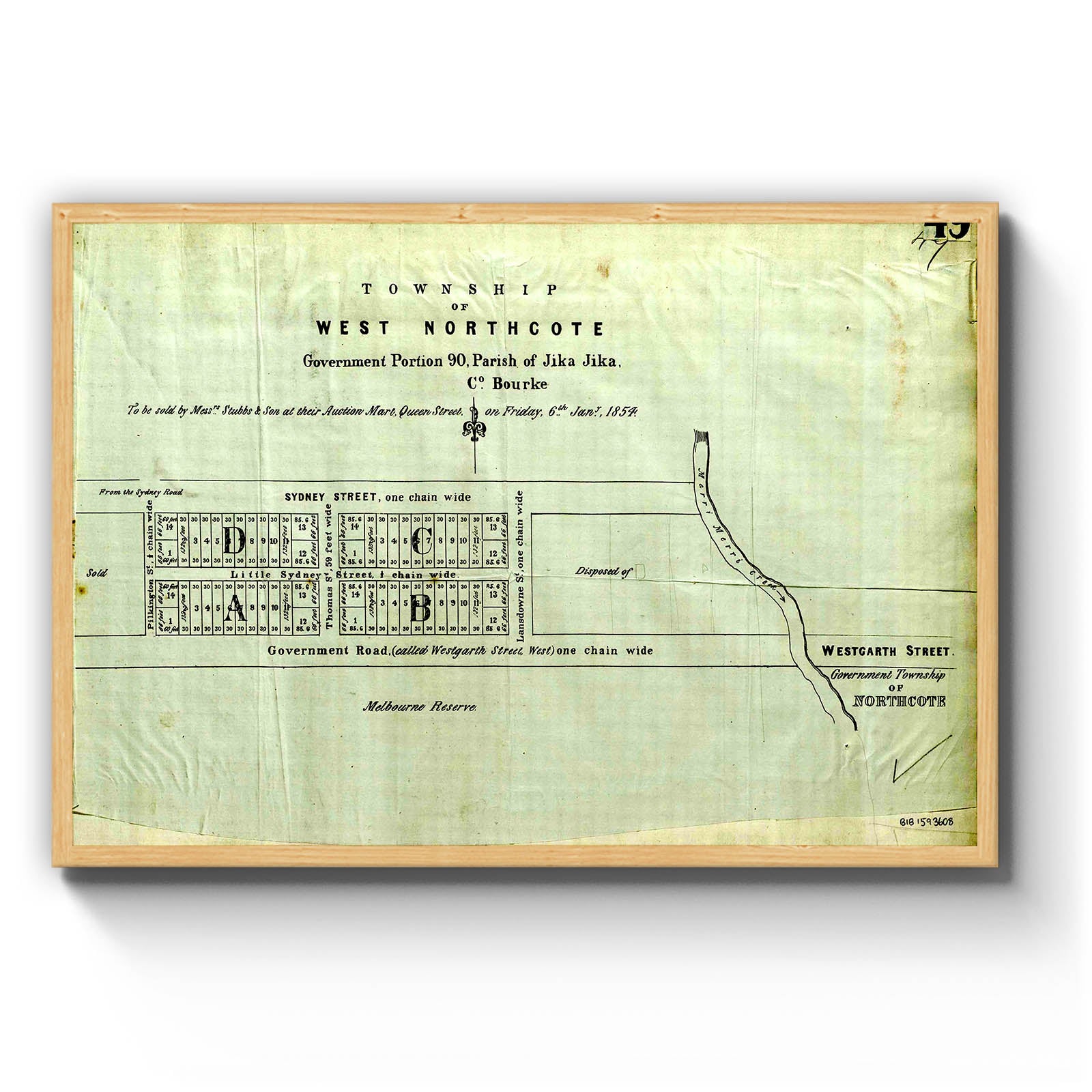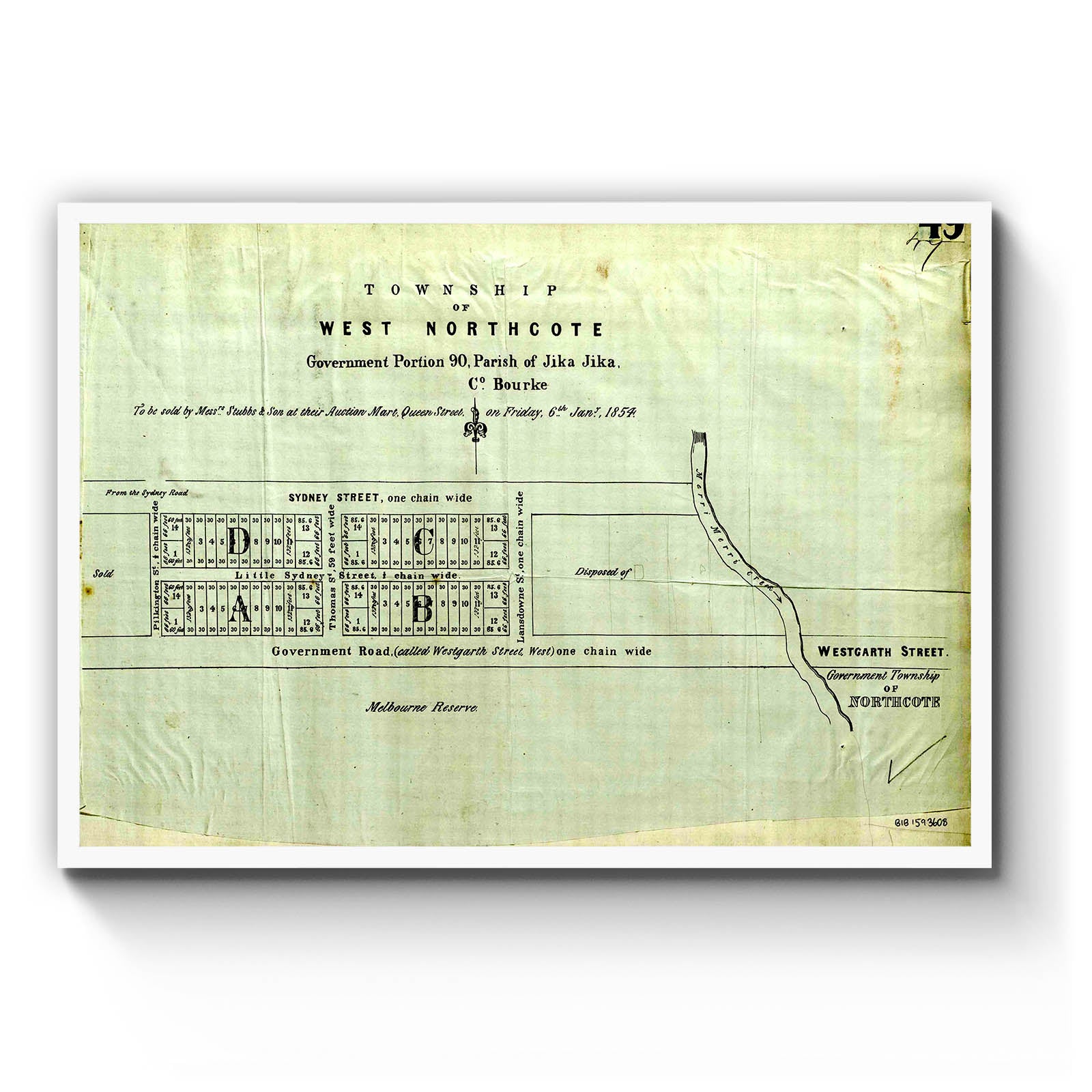 Northcote, Victoria Australia Vintage Map #63 (1854)