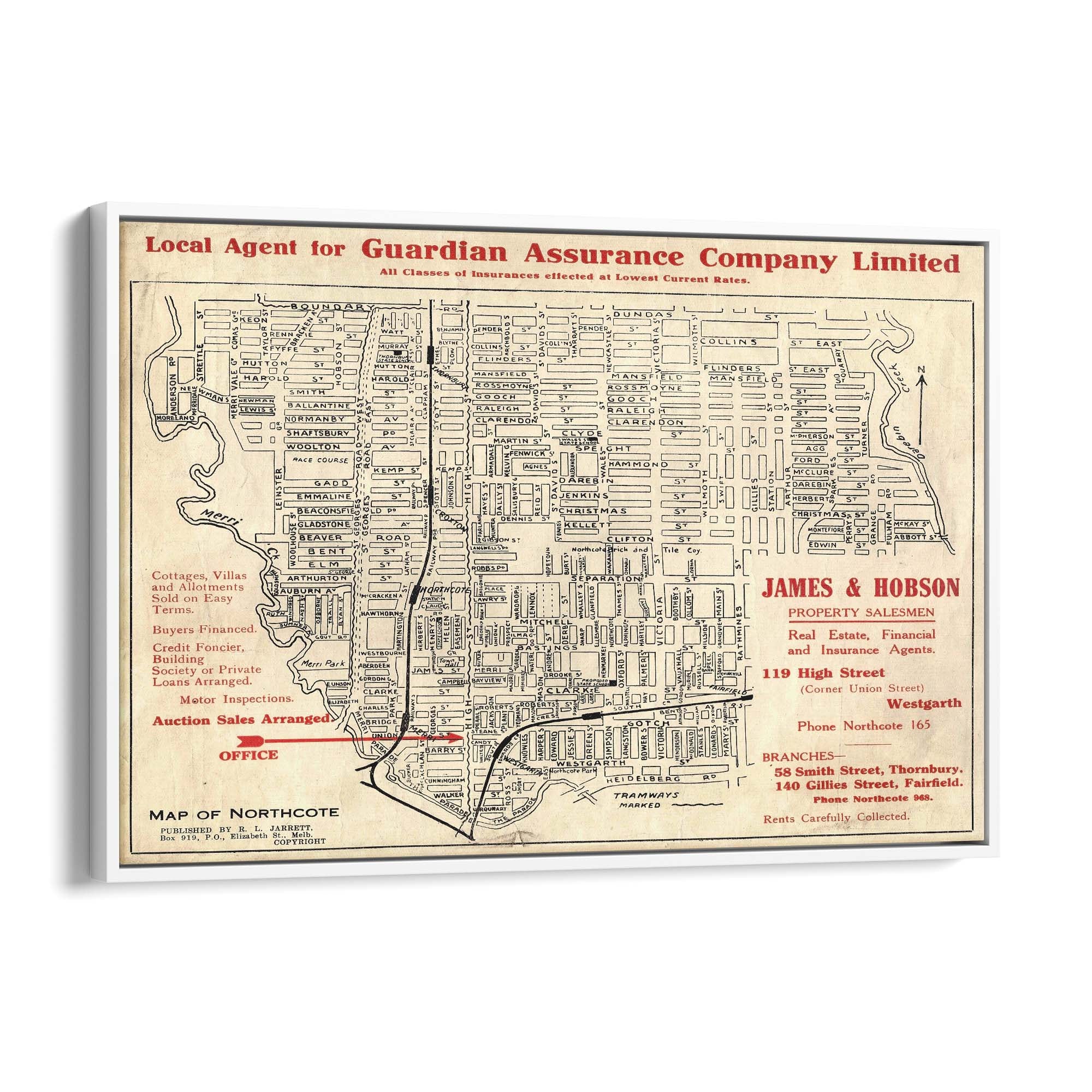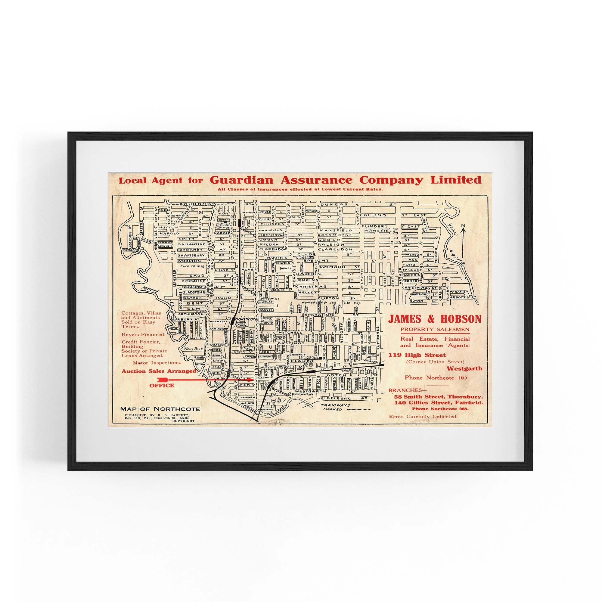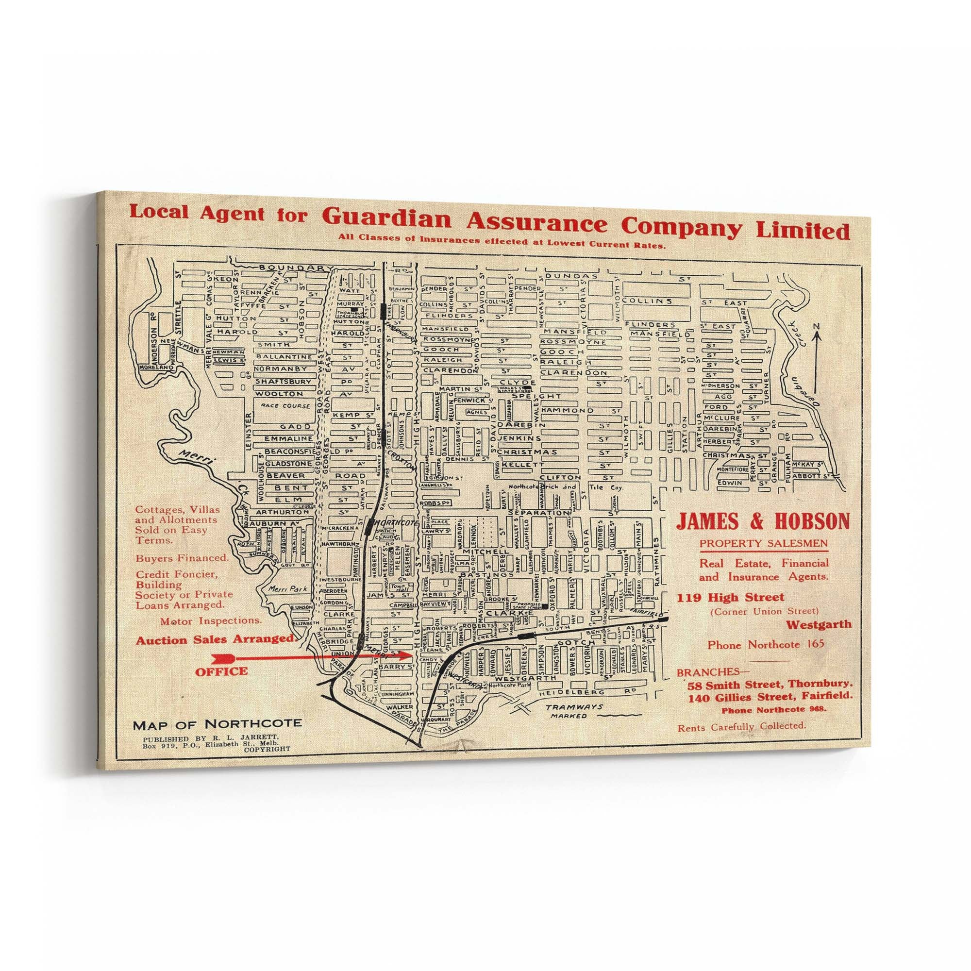 1925 Vintage Map of Northcote, Victoria Australia