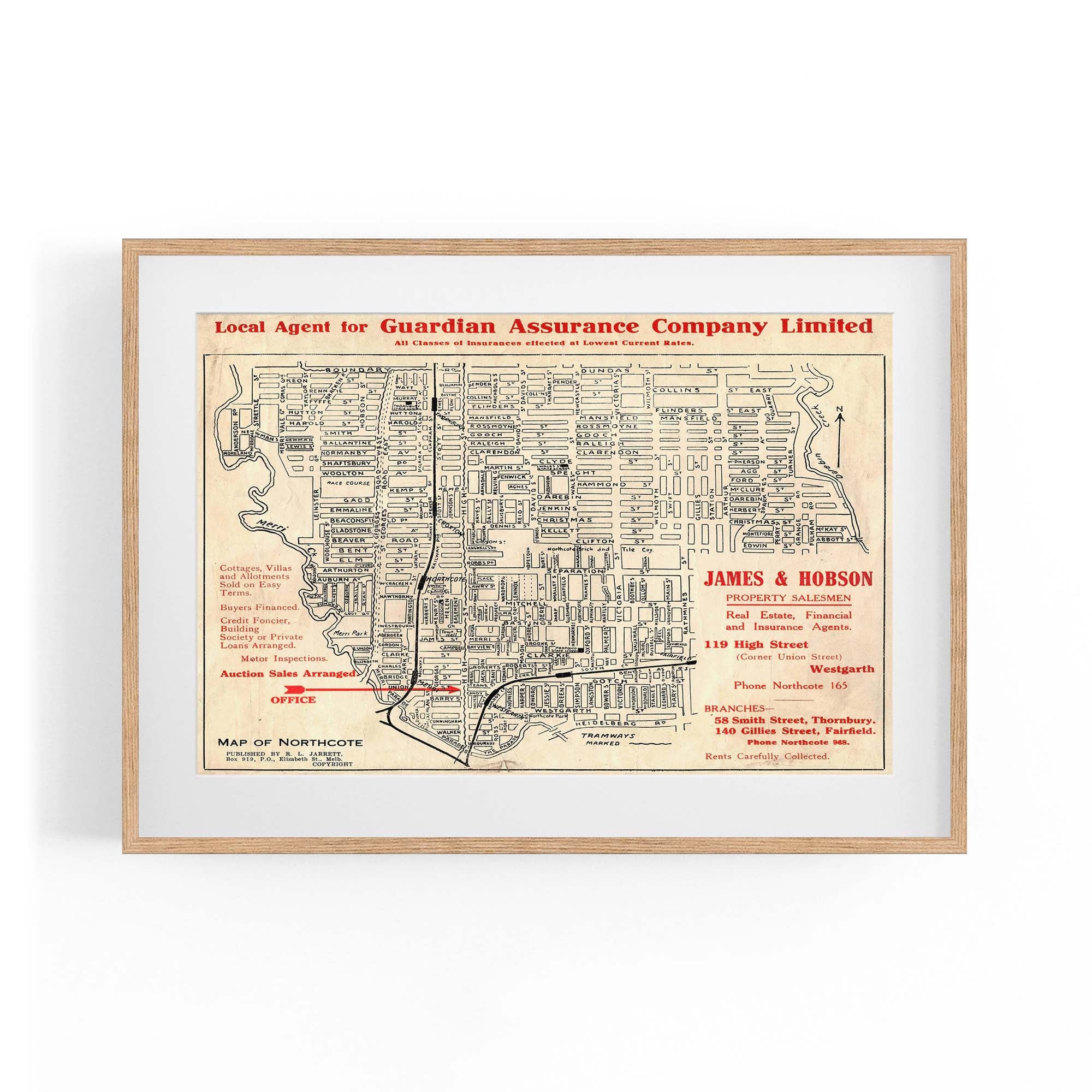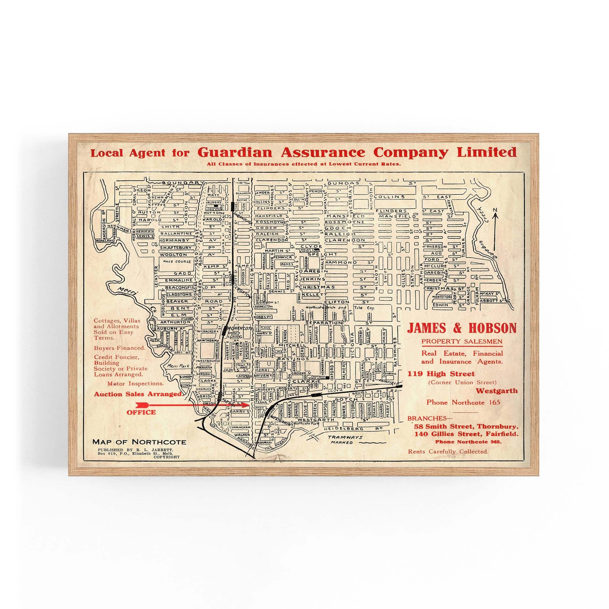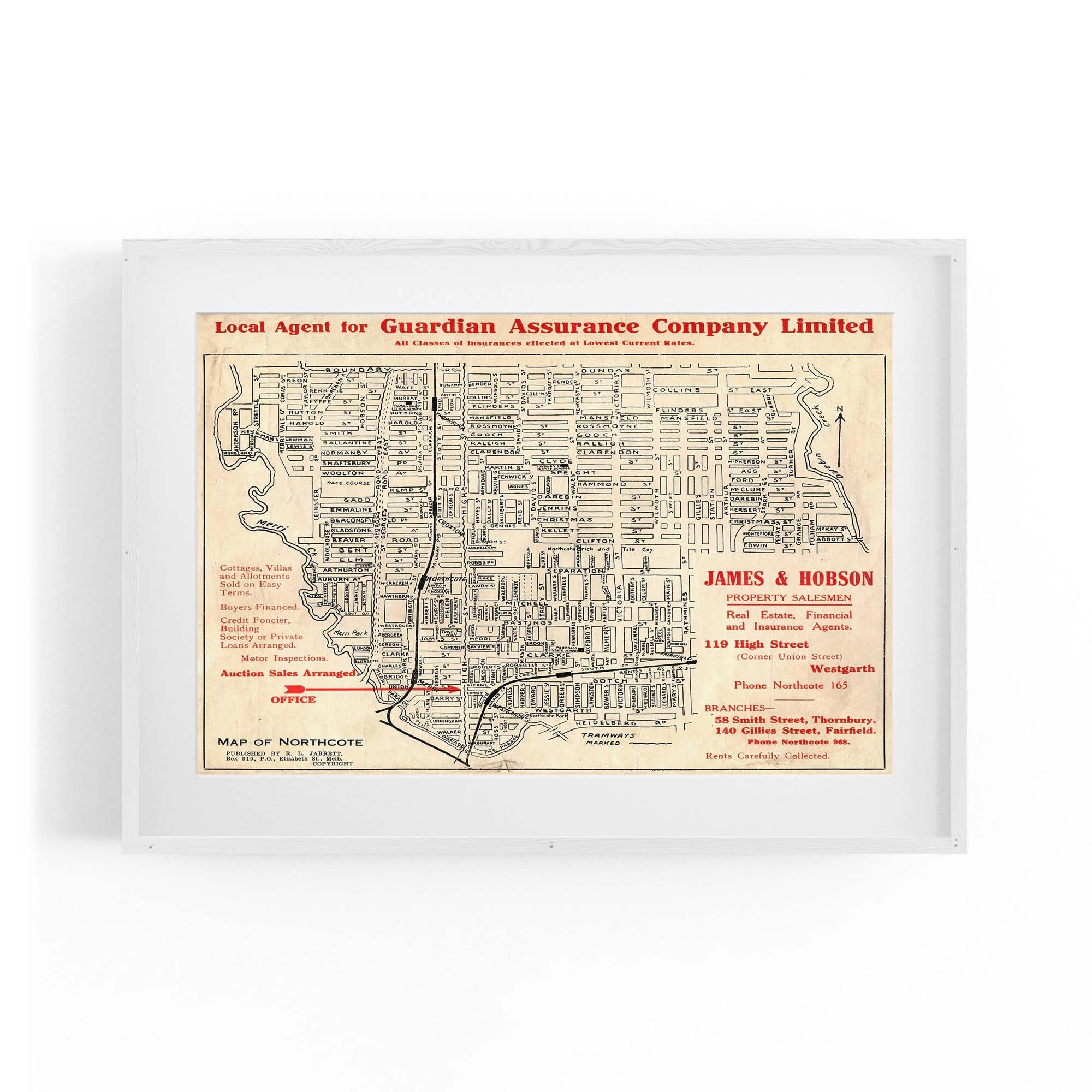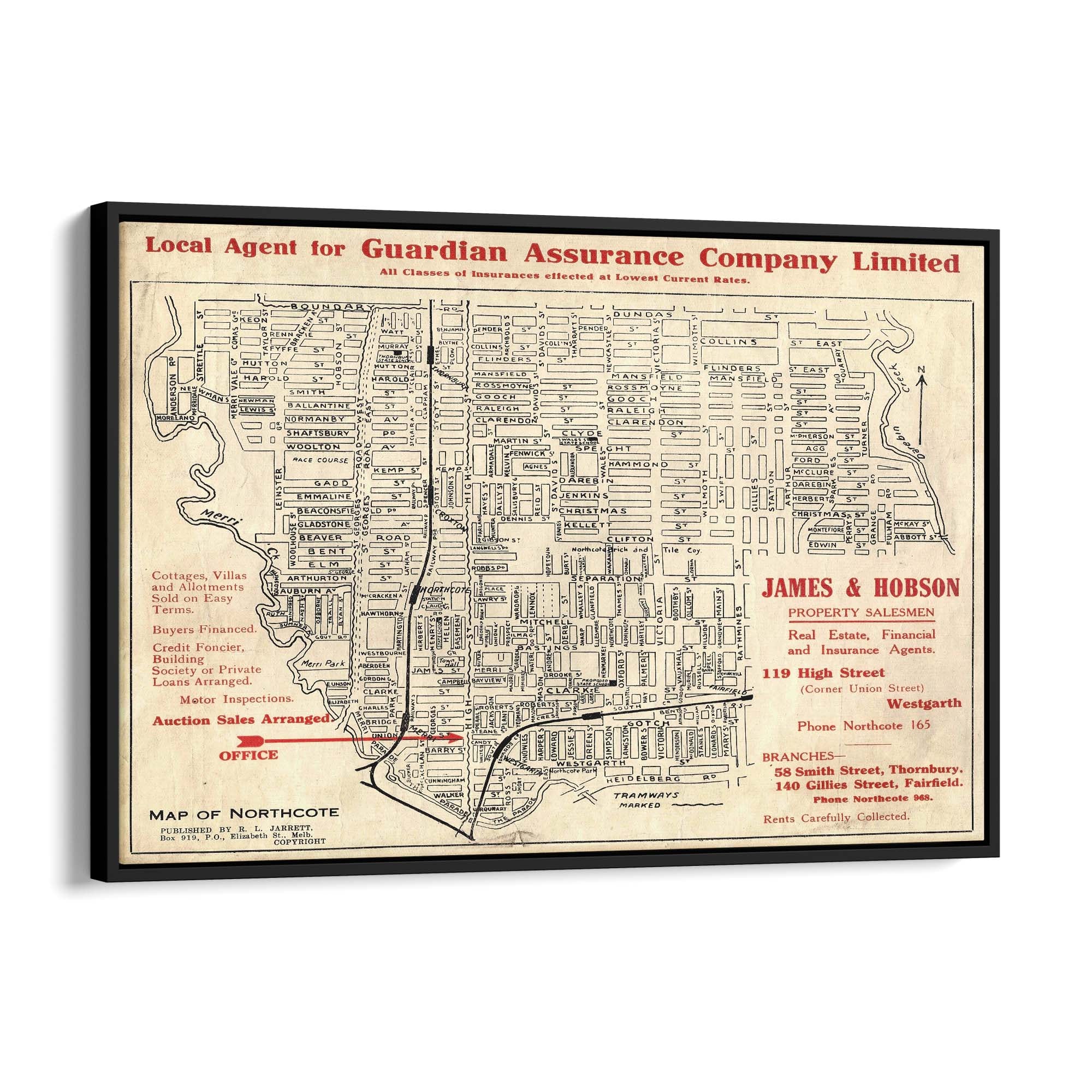 1925 Vintage Map of Northcote, Victoria Australia