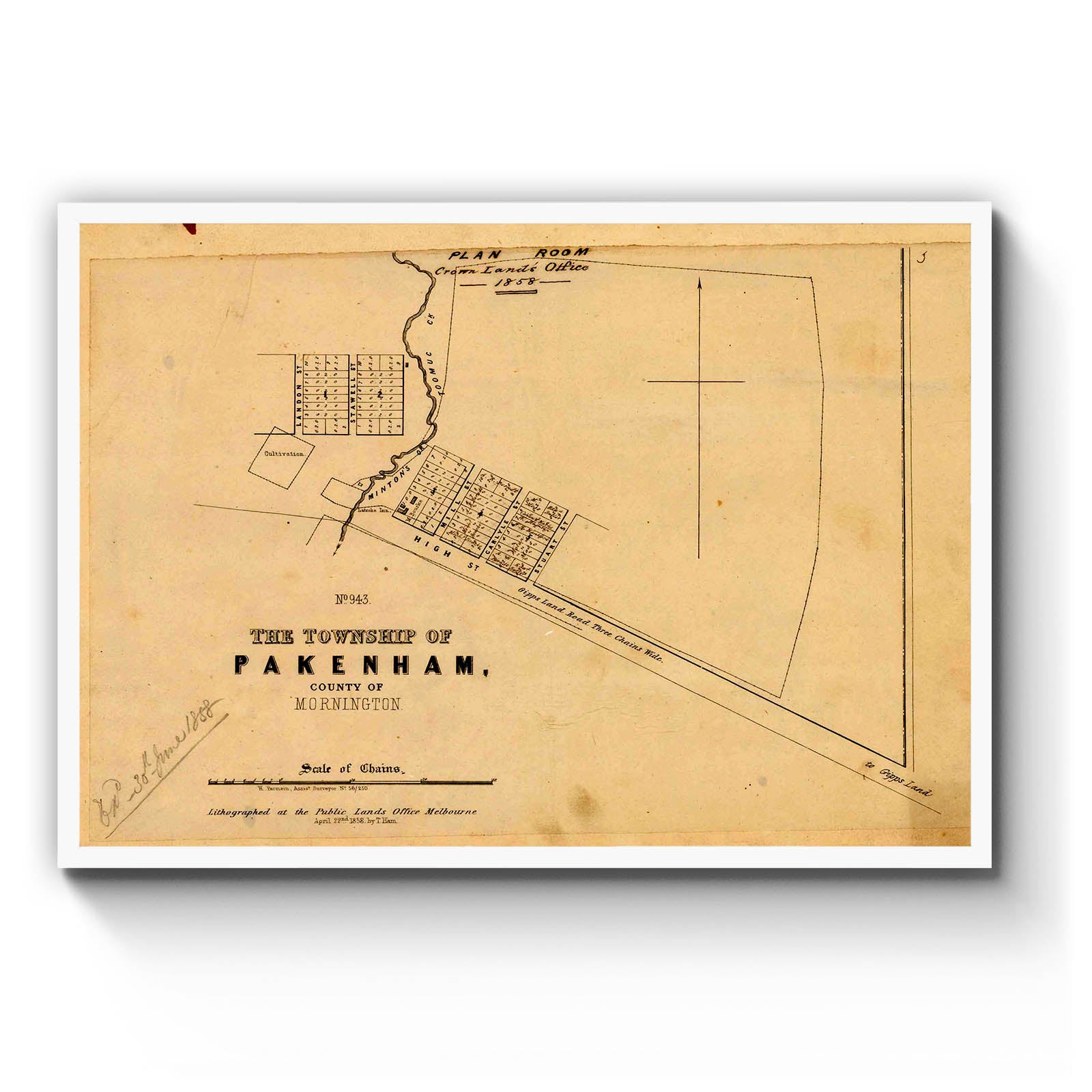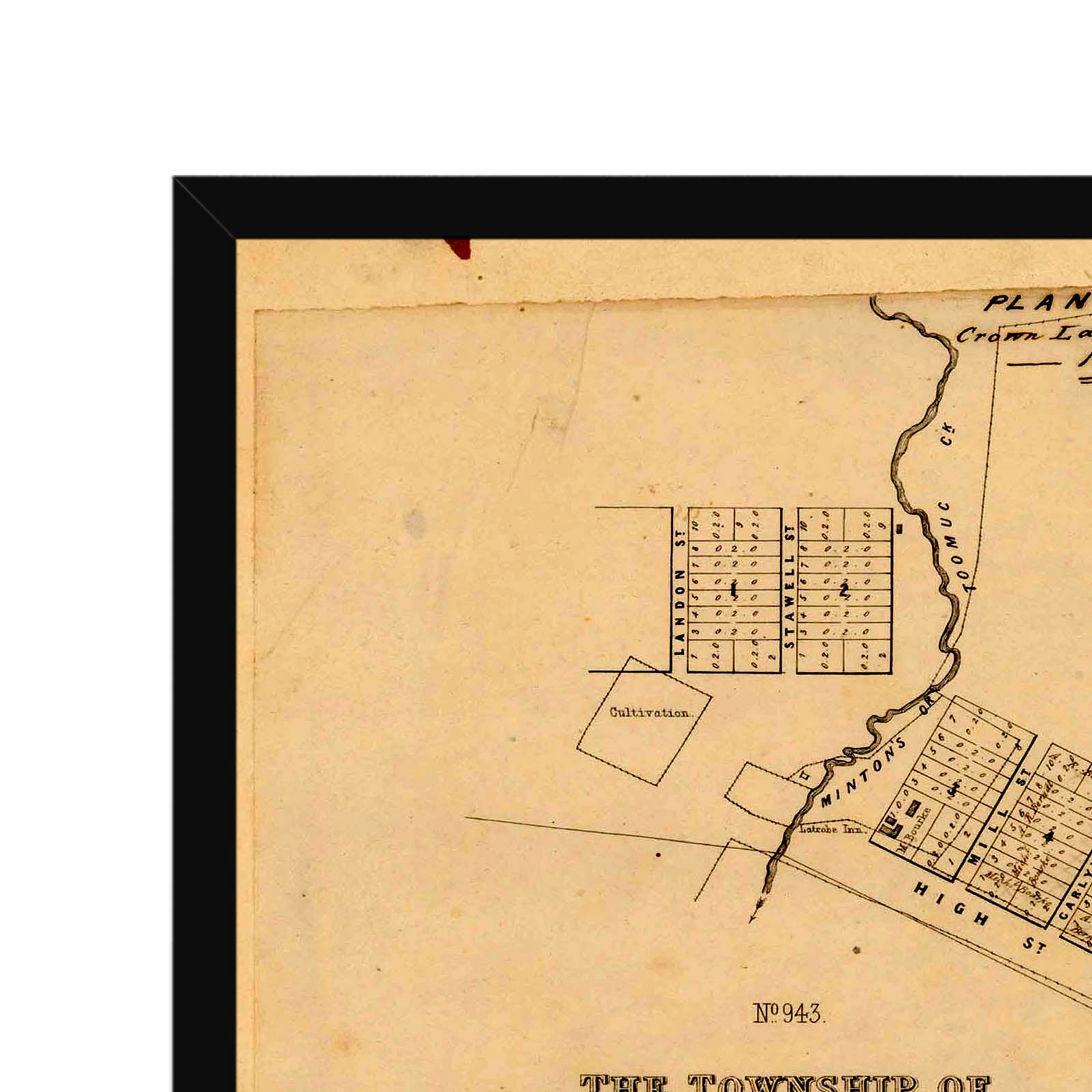 Recently moving to Harcourt and being interested in the history of the area, it seemed fitting to purchase a vintage map of the area which is displayed on our kitchen wall for us to study easily, identifying the block of land we bought. Nicely framed too.
