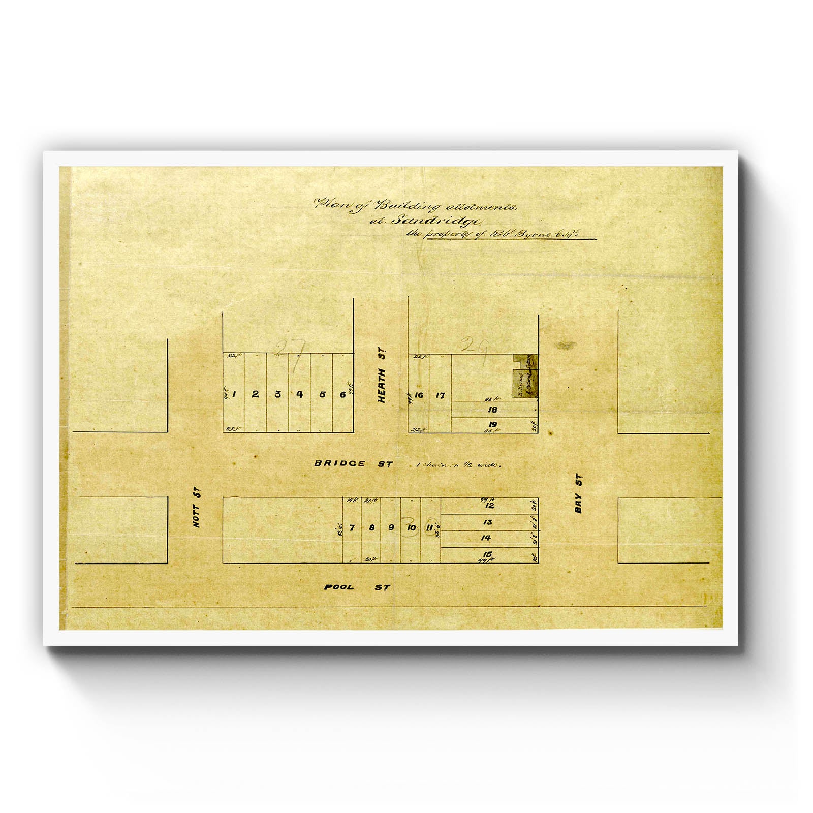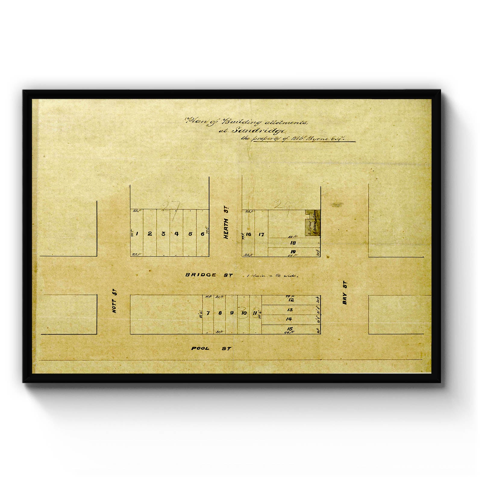 Plan of building allotments at Sandridge, the property of Robt. Byrne Esqr. [cartographic material]. [Between 1860 and 1880]
