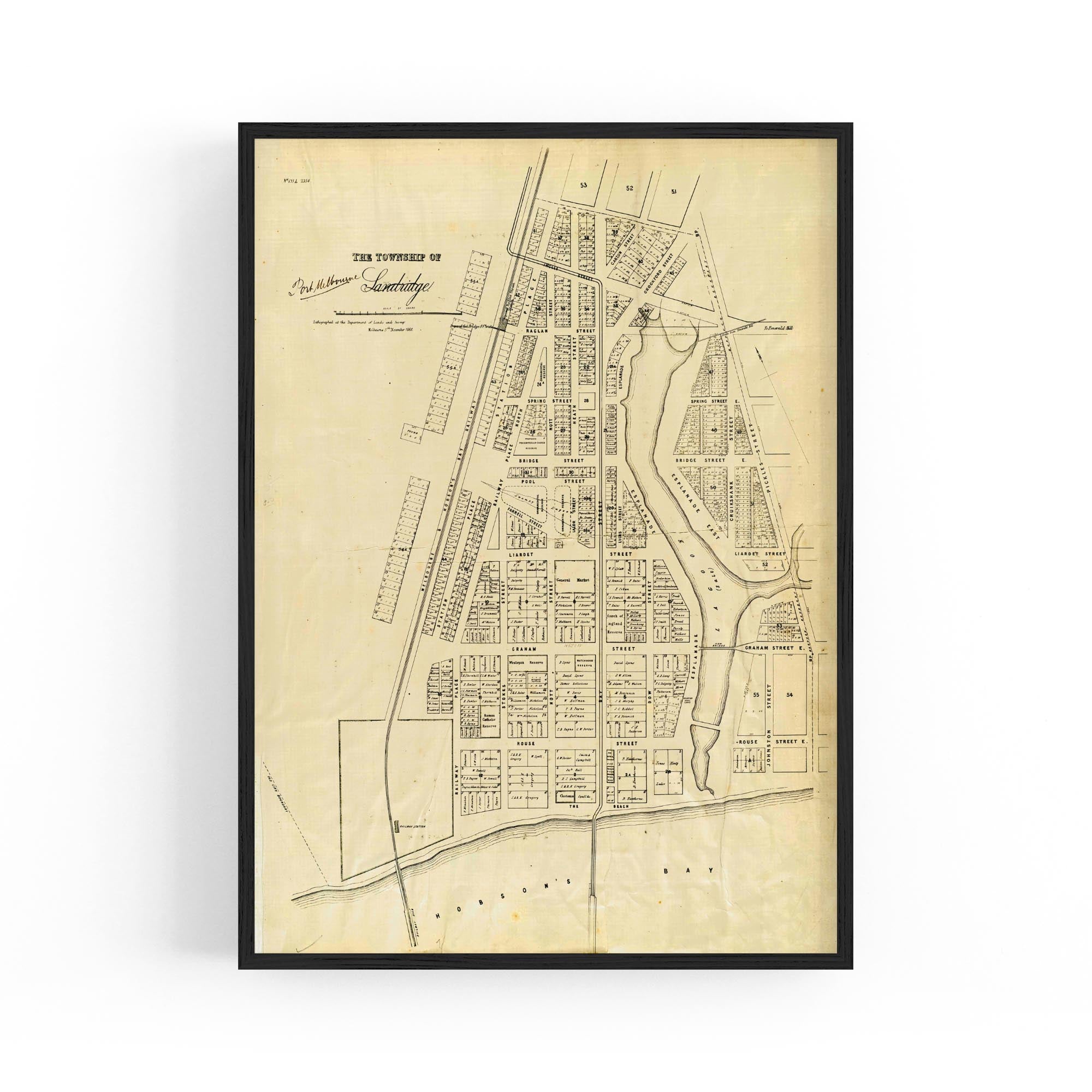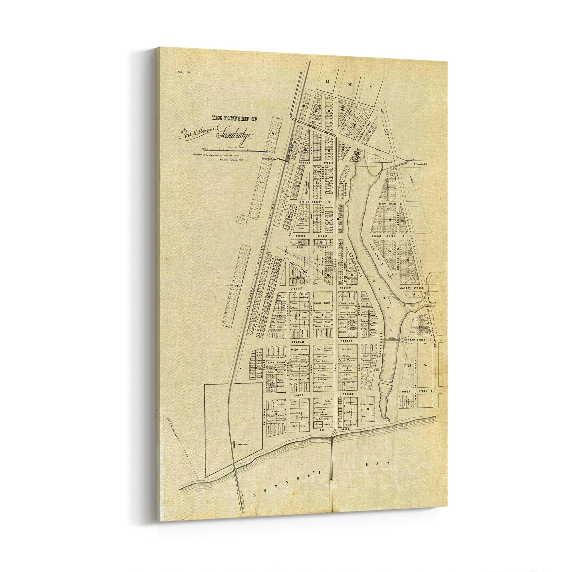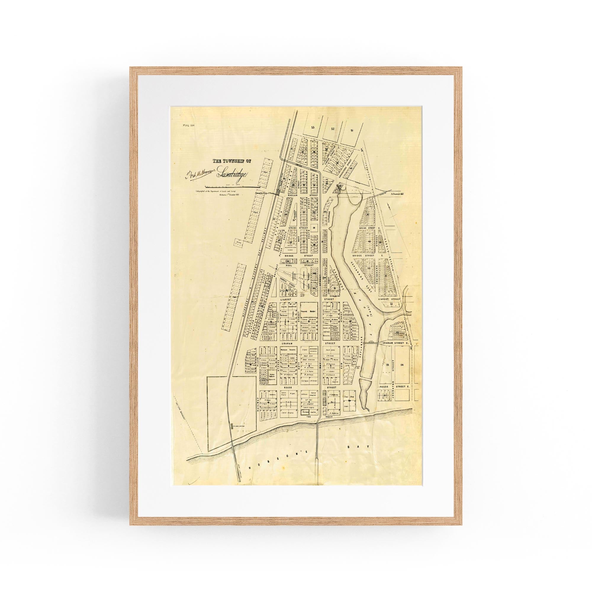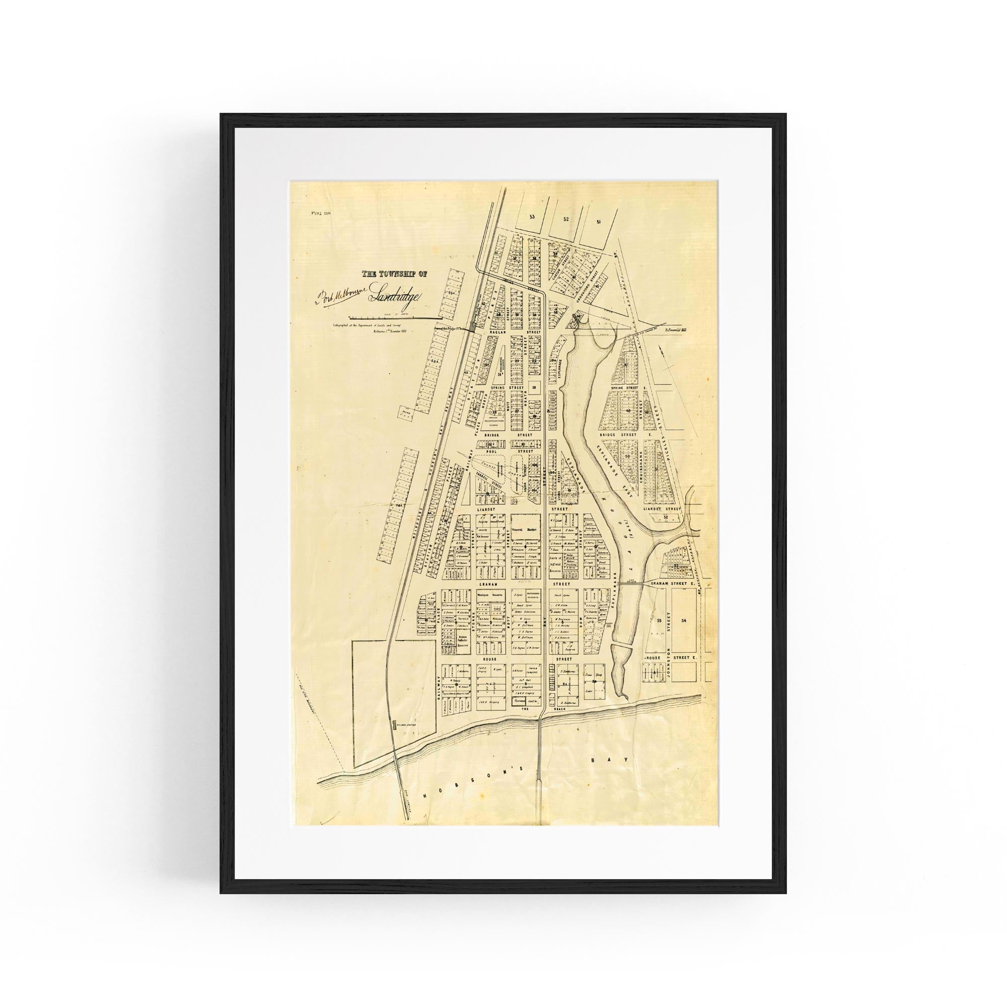 1860 Vintage Map of Port Melbourne, Victoria Australia