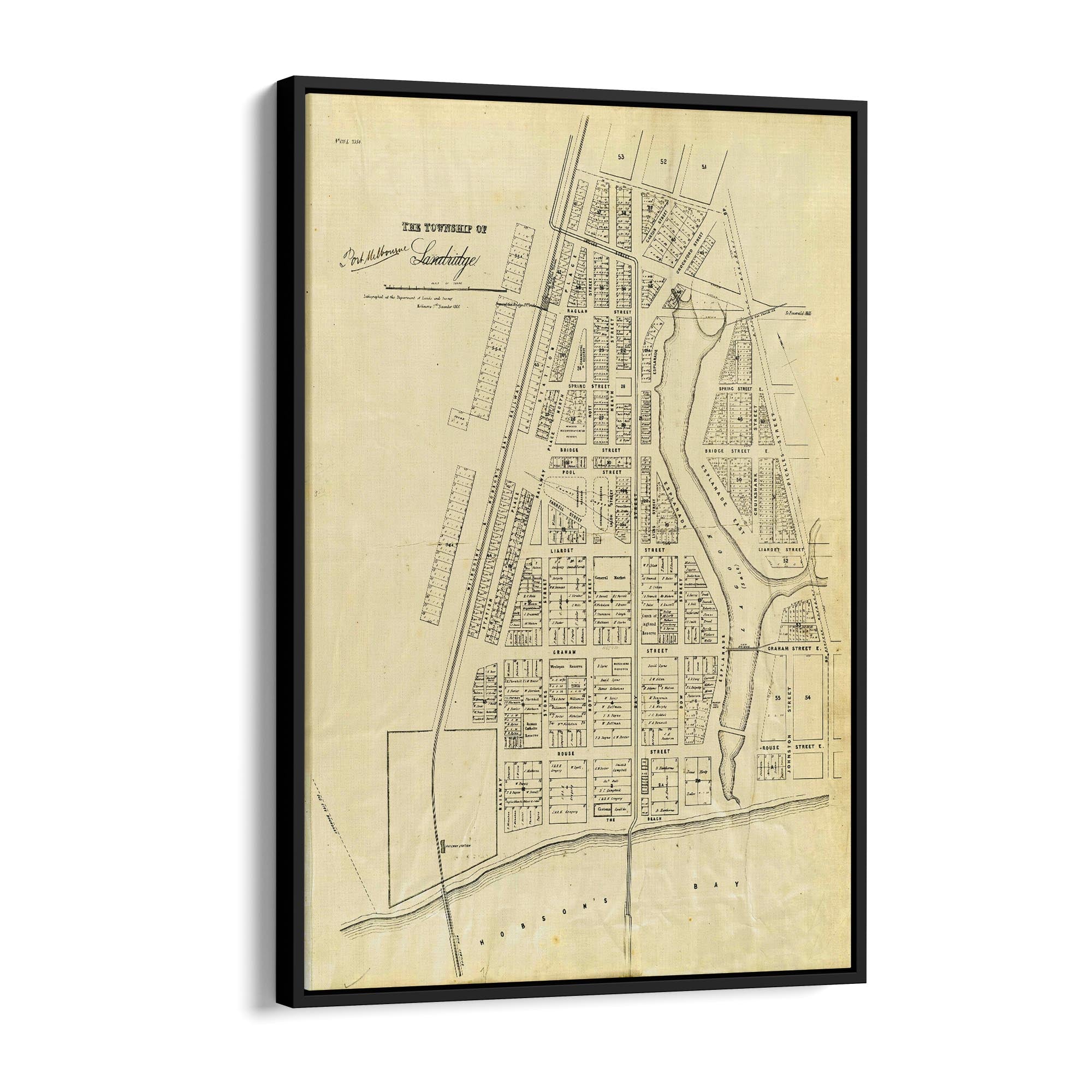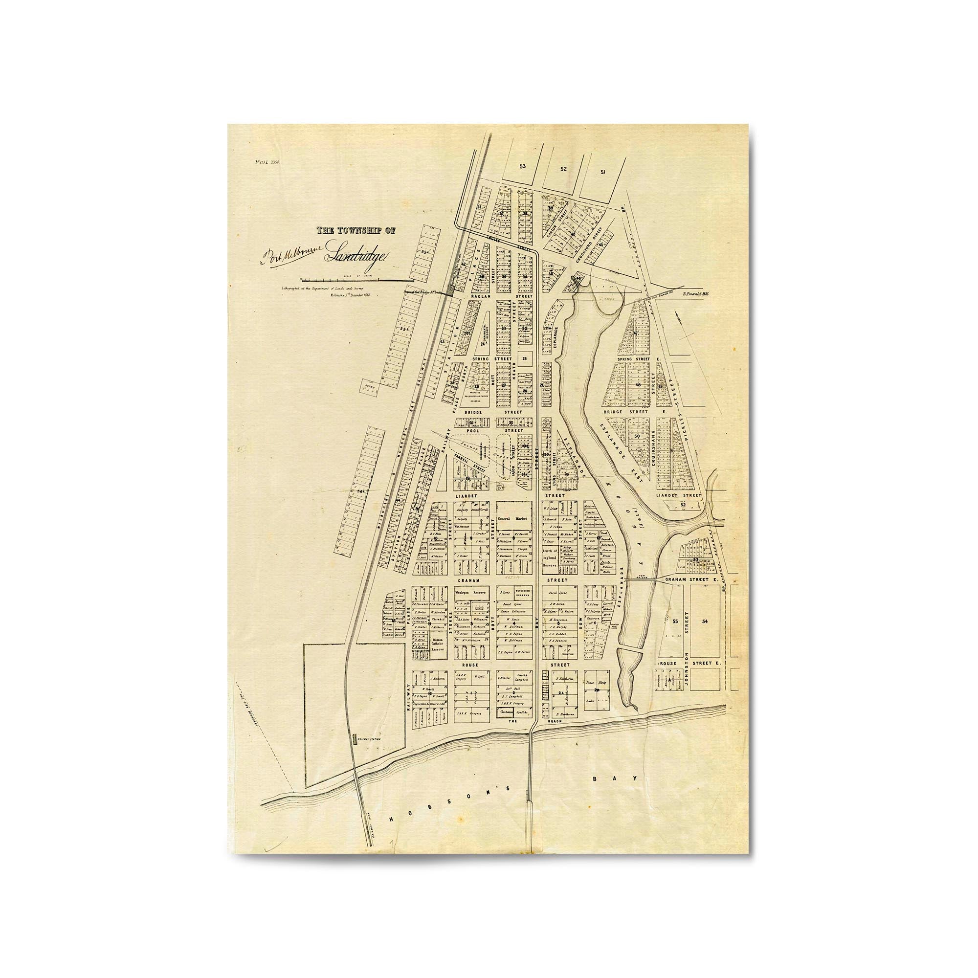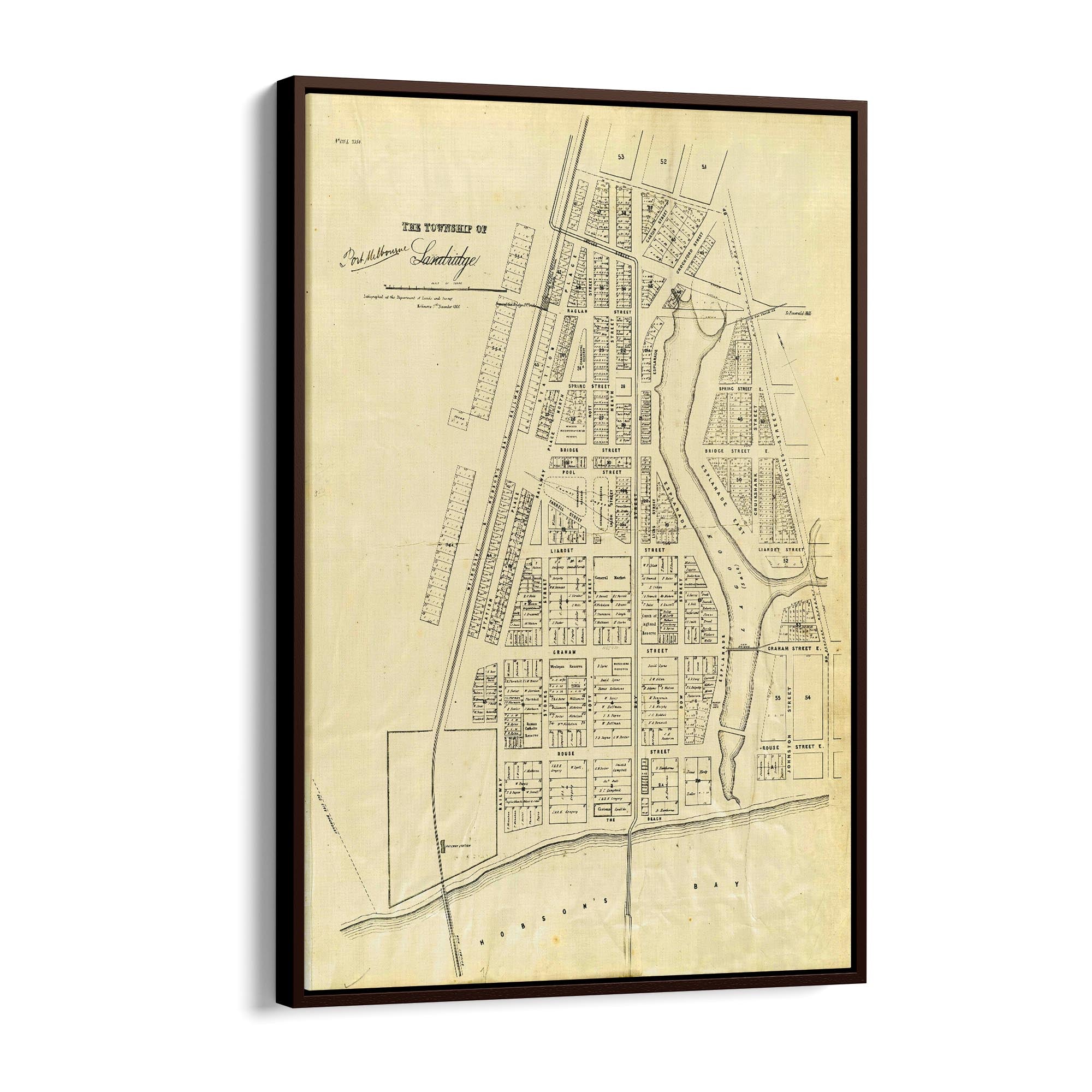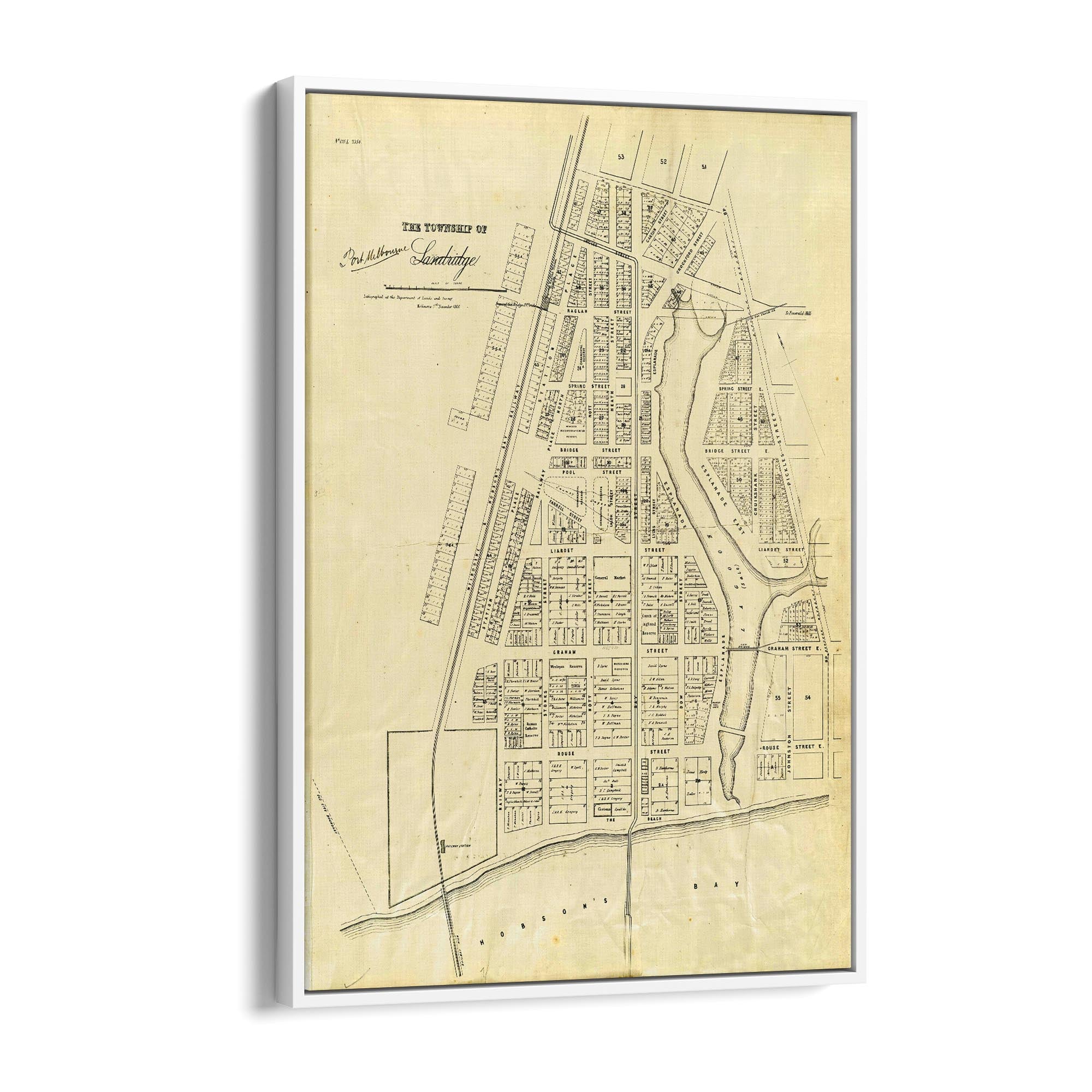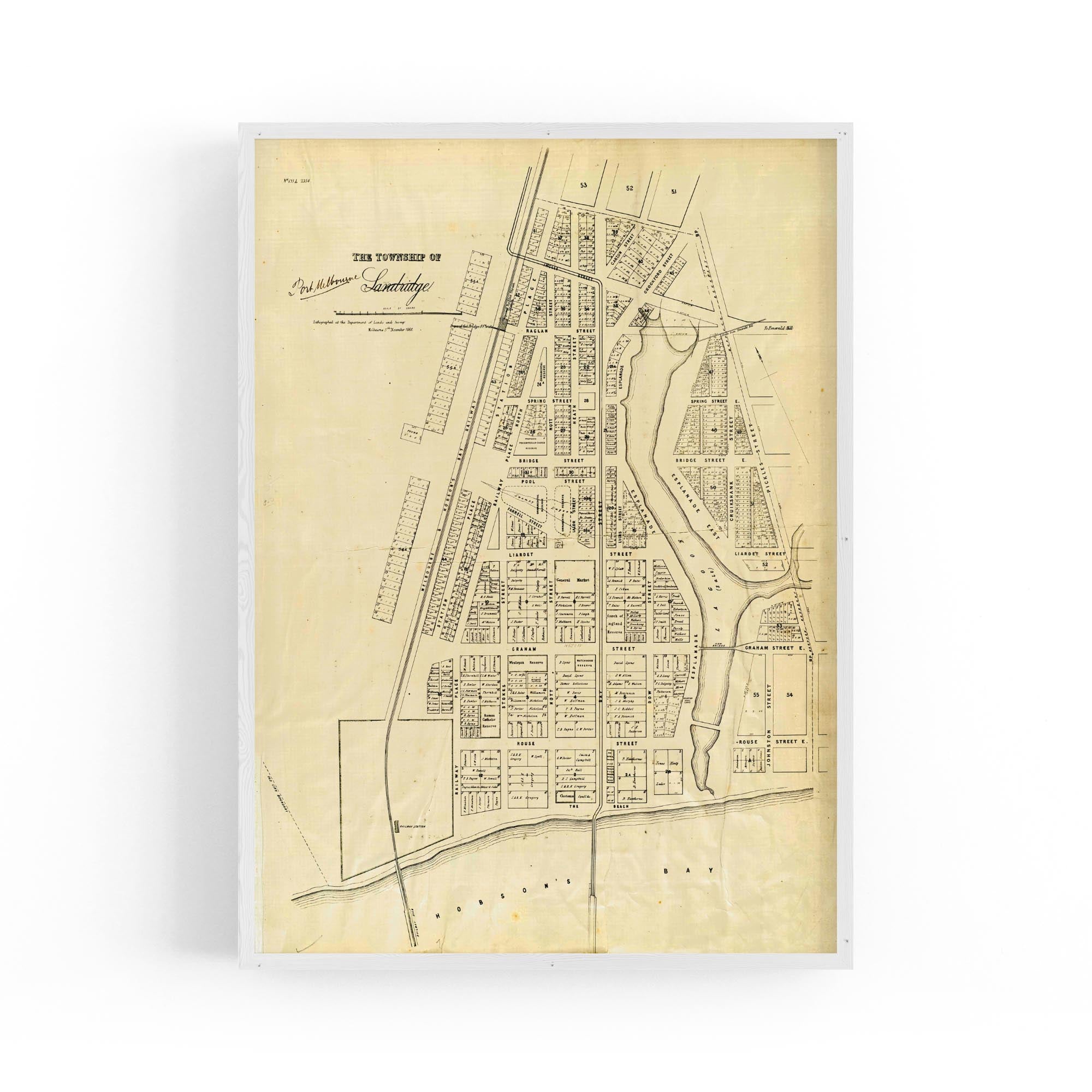 1860 Vintage Map of Port Melbourne, Victoria Australia