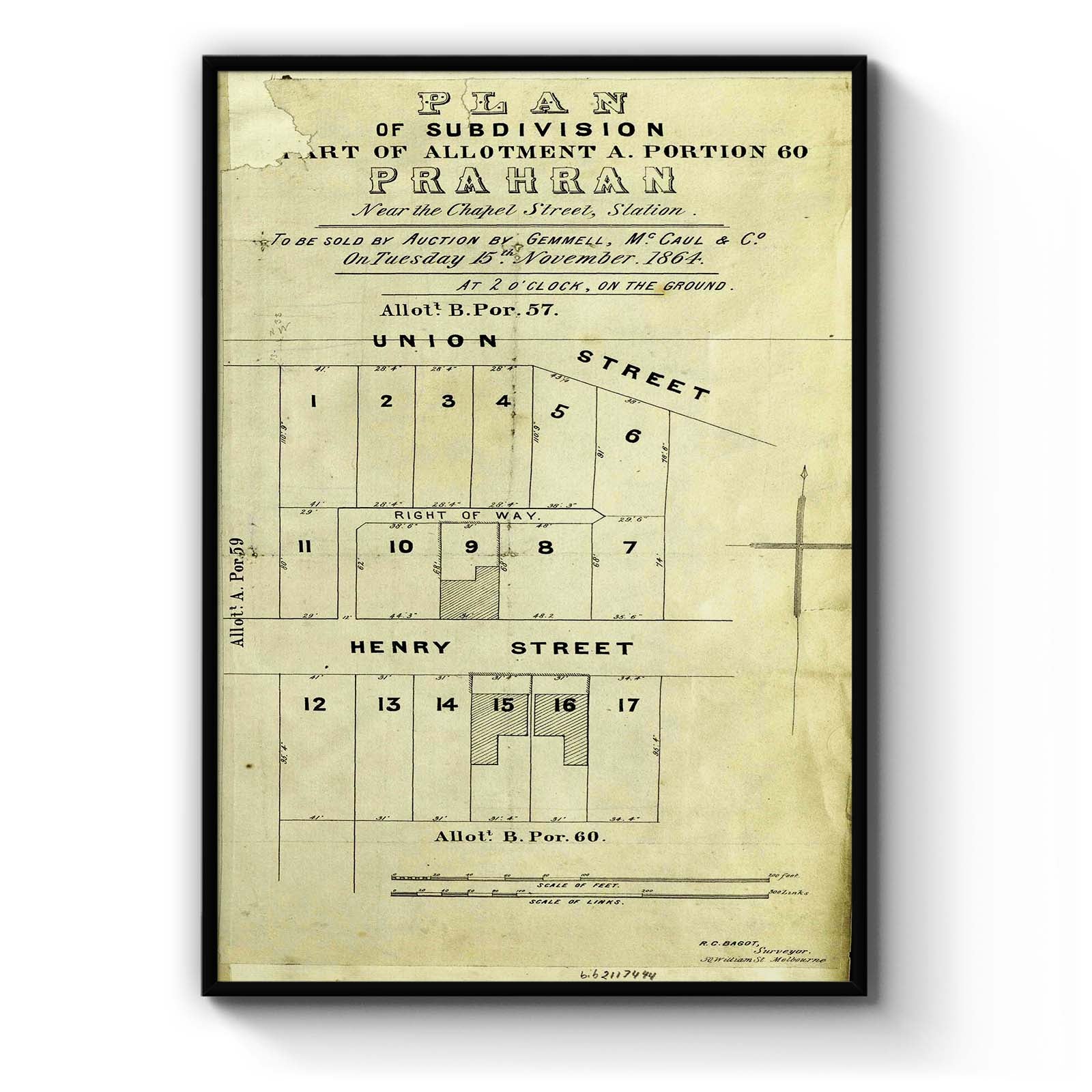 Prahran, Victoria Australia Vintage Map #14 (1864)