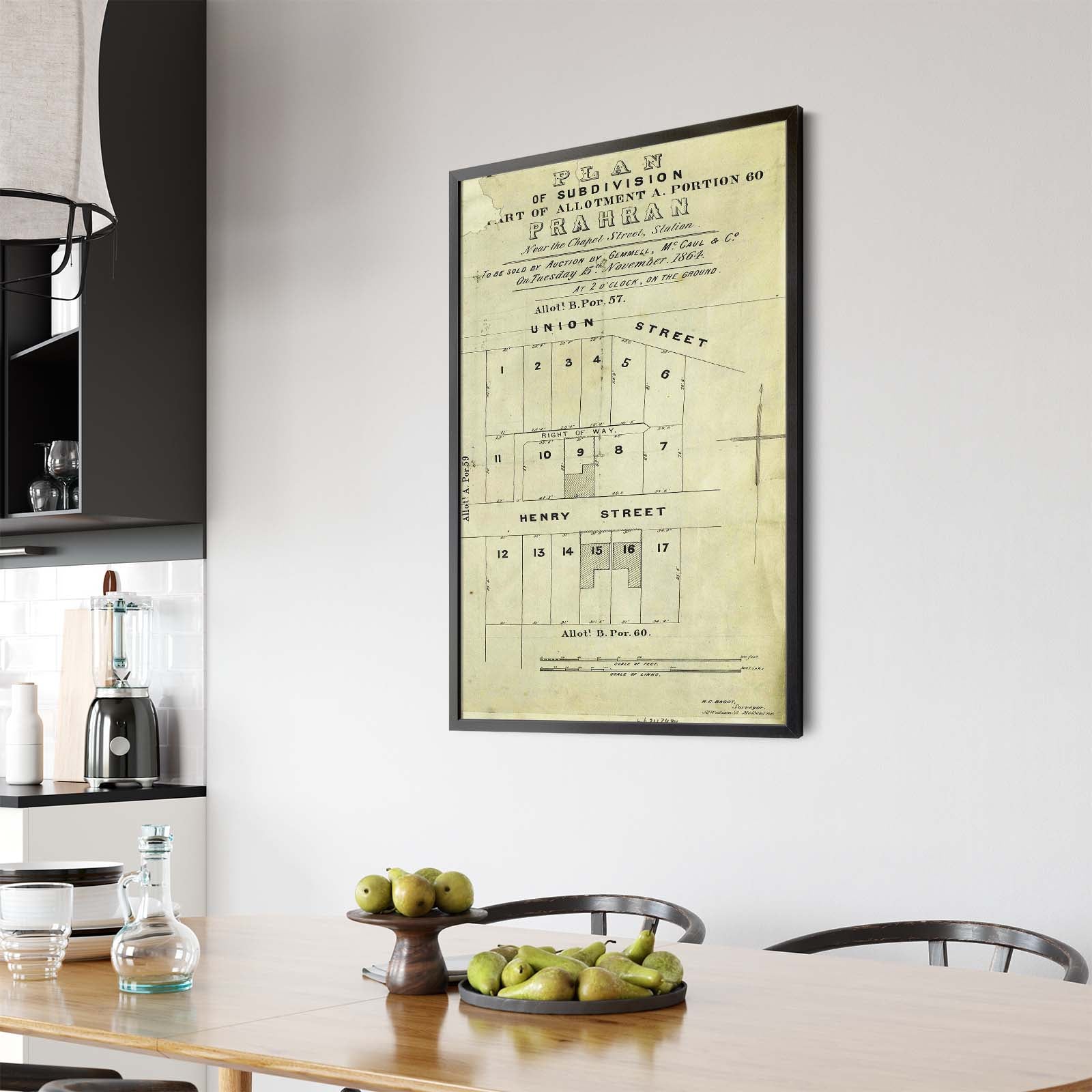 Plan of subdivision, part of allotment A, portion 60, Prahran, near the Chapel Street Station at 2 o'clock on the ground [cartographic material]./