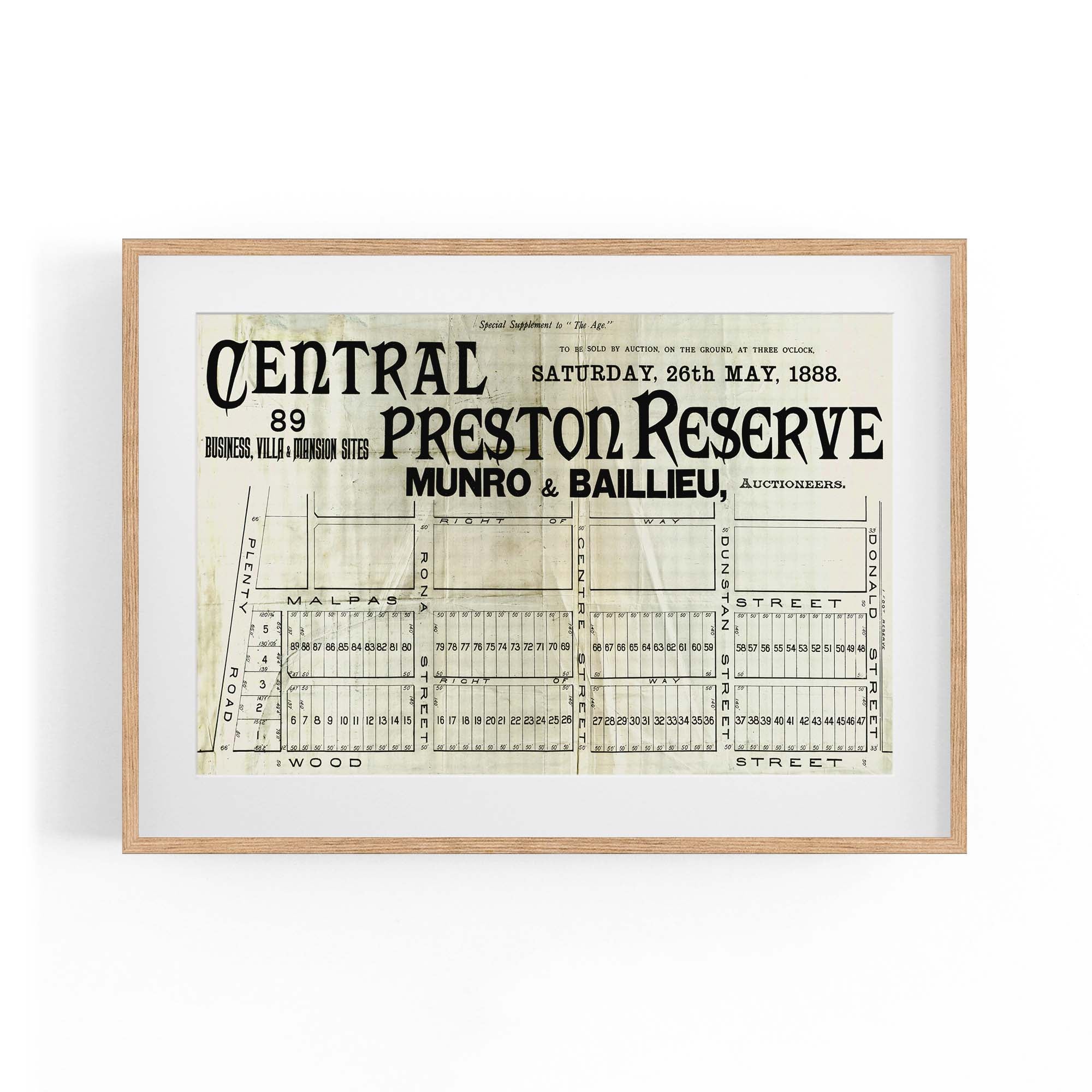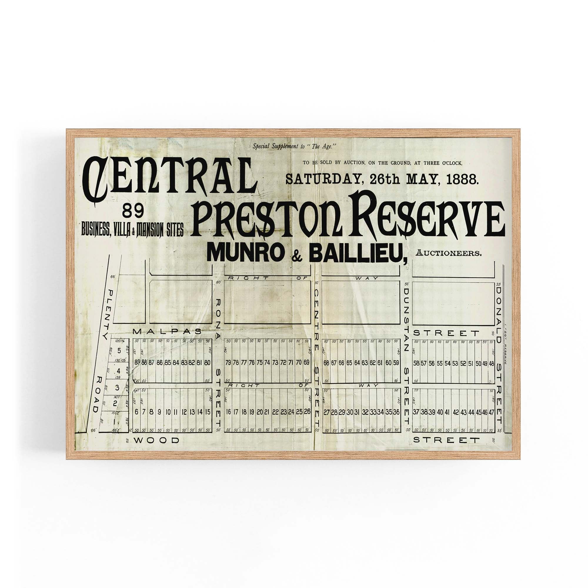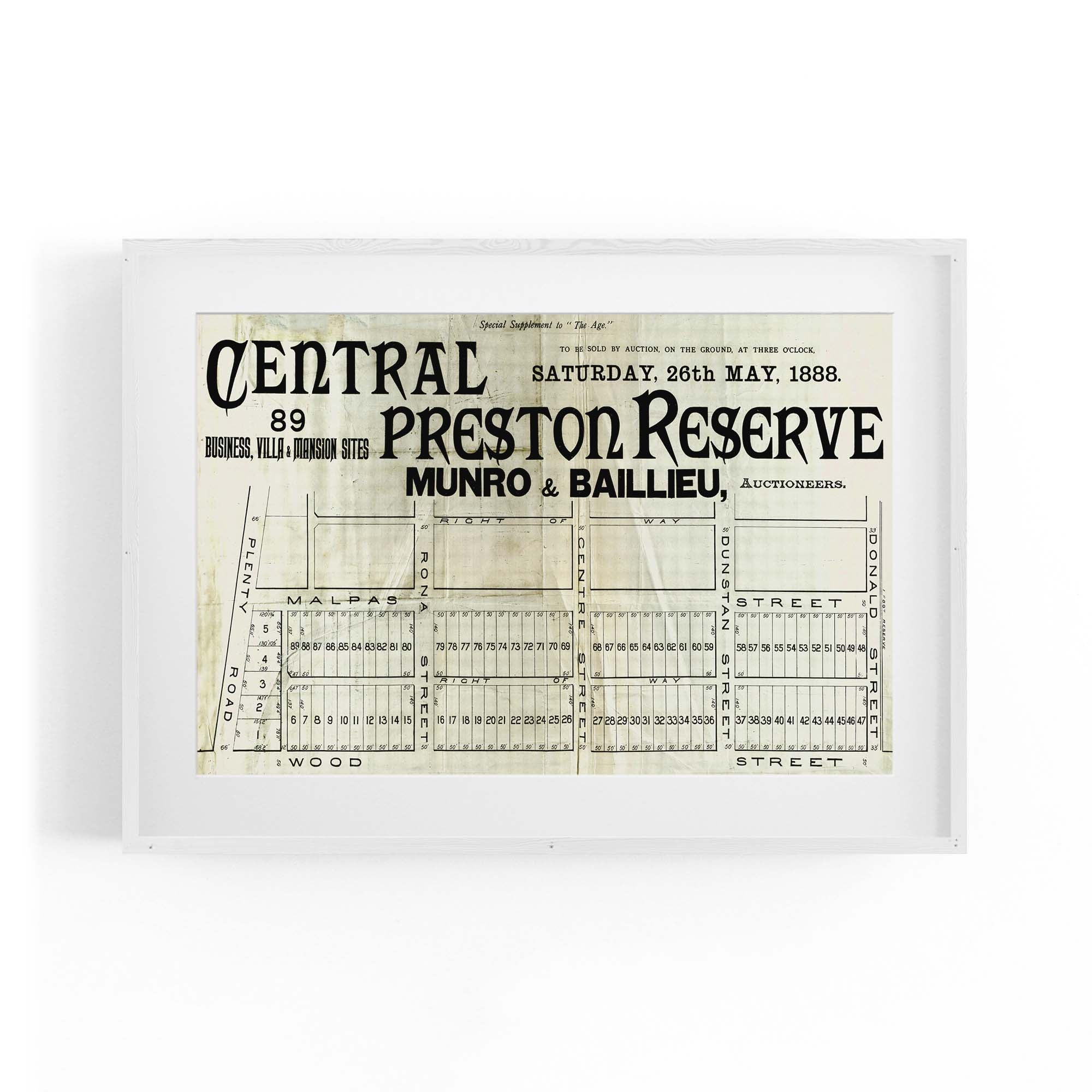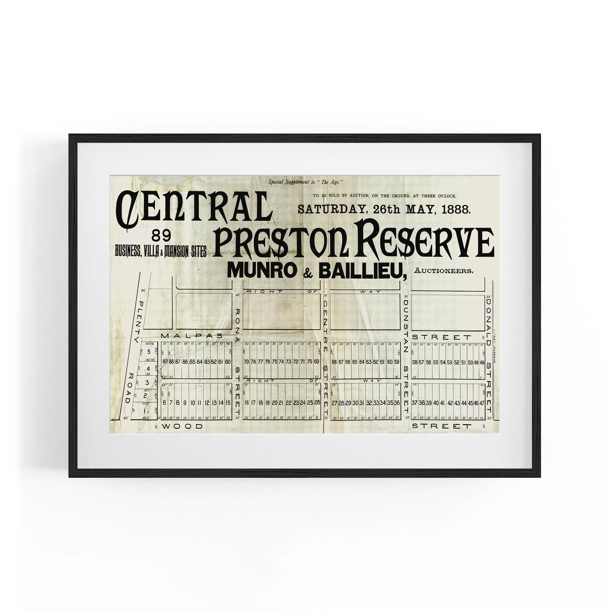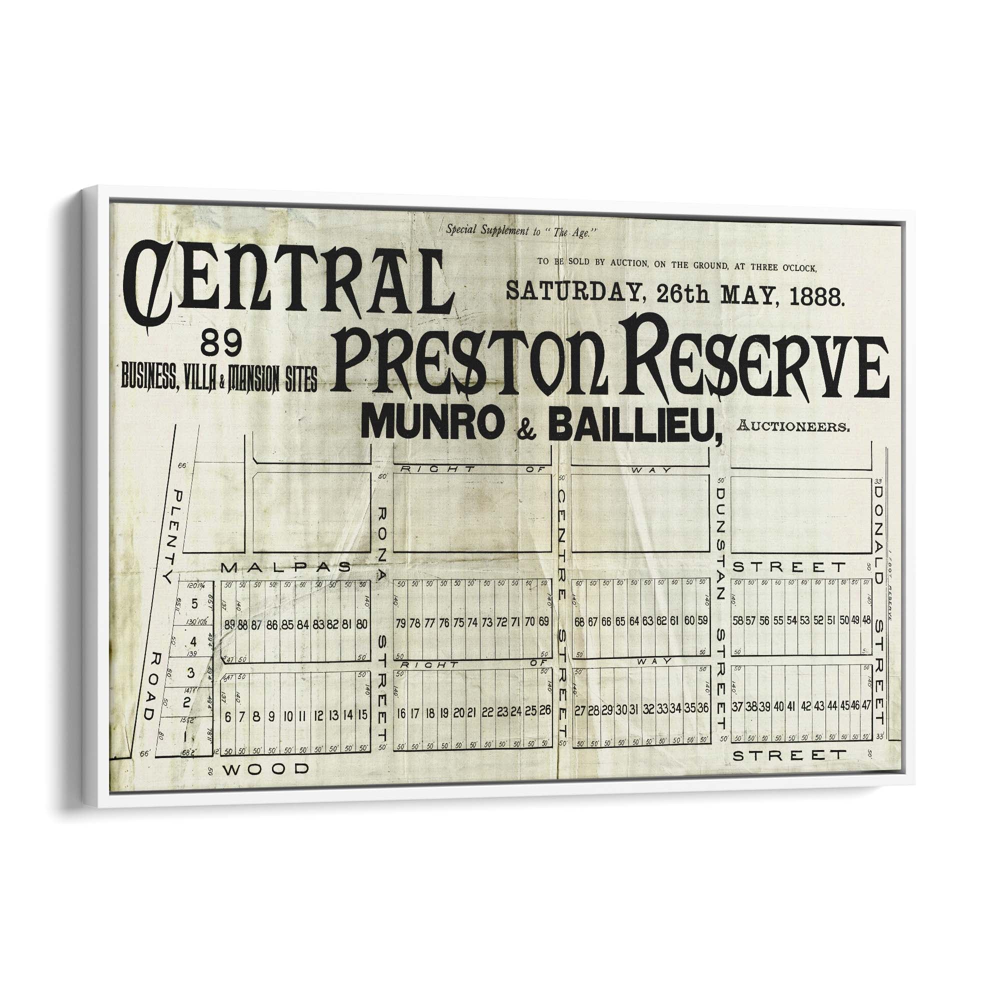 1888 Vintage Map of Preston, Victoria Australia