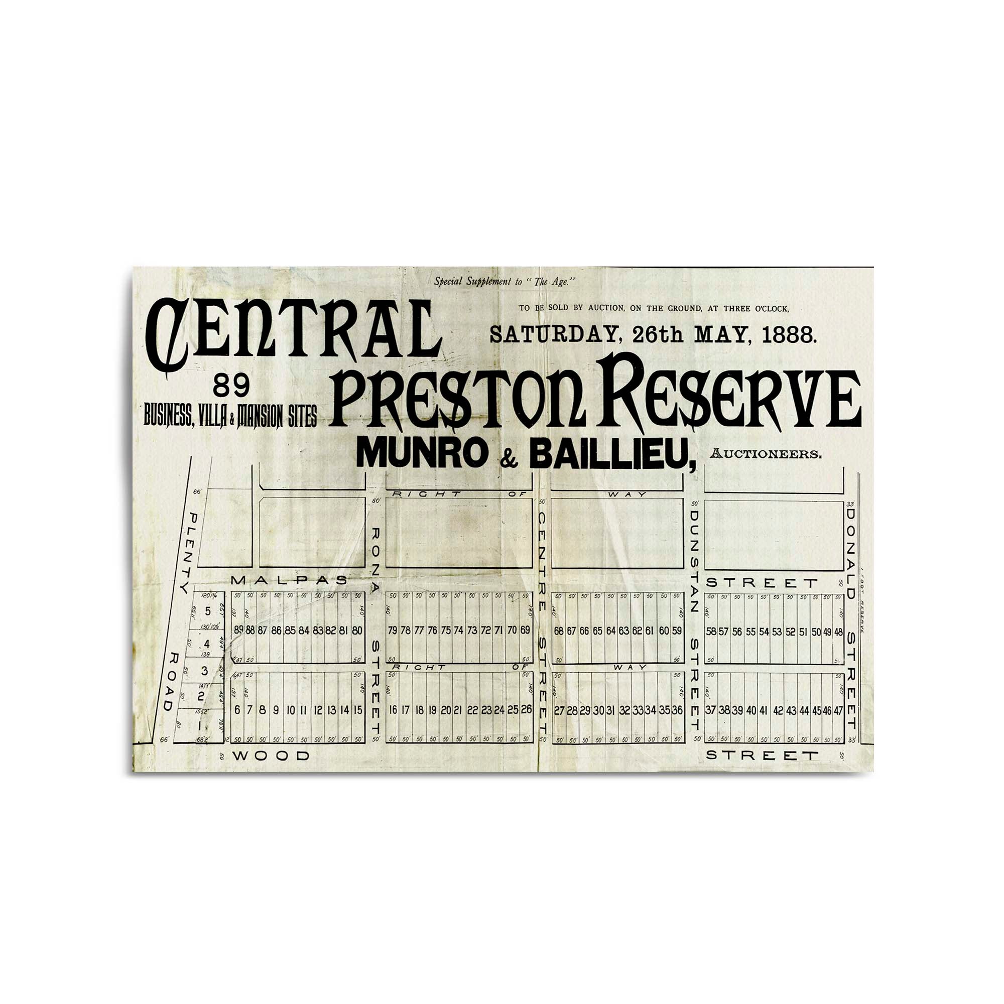 Central Preston Reserve. 1888.