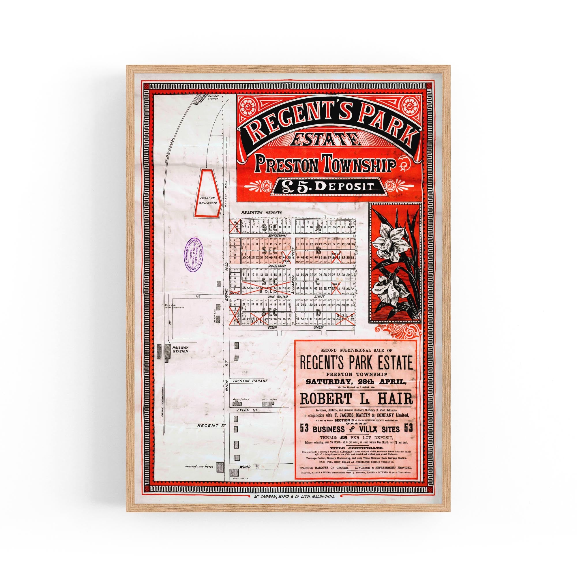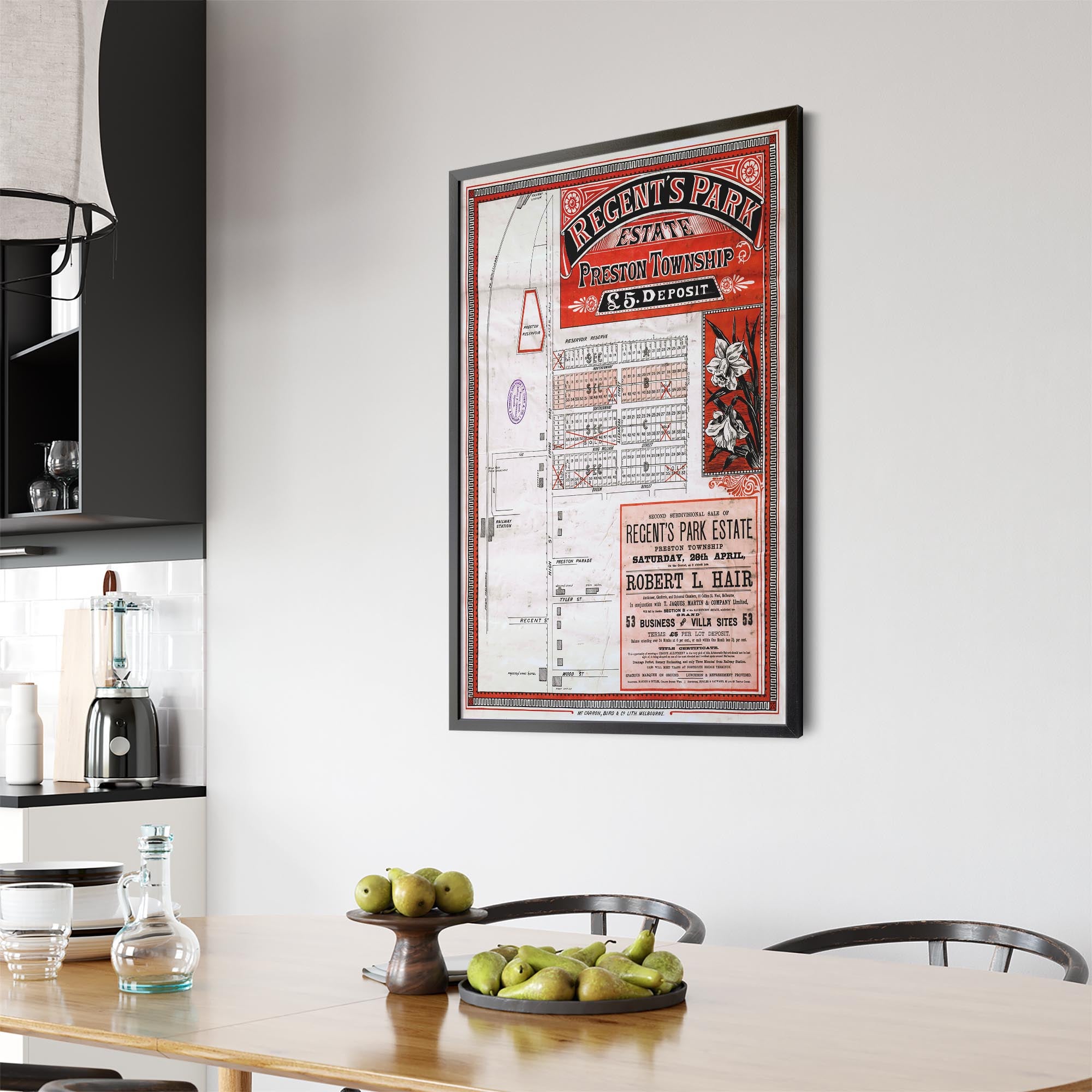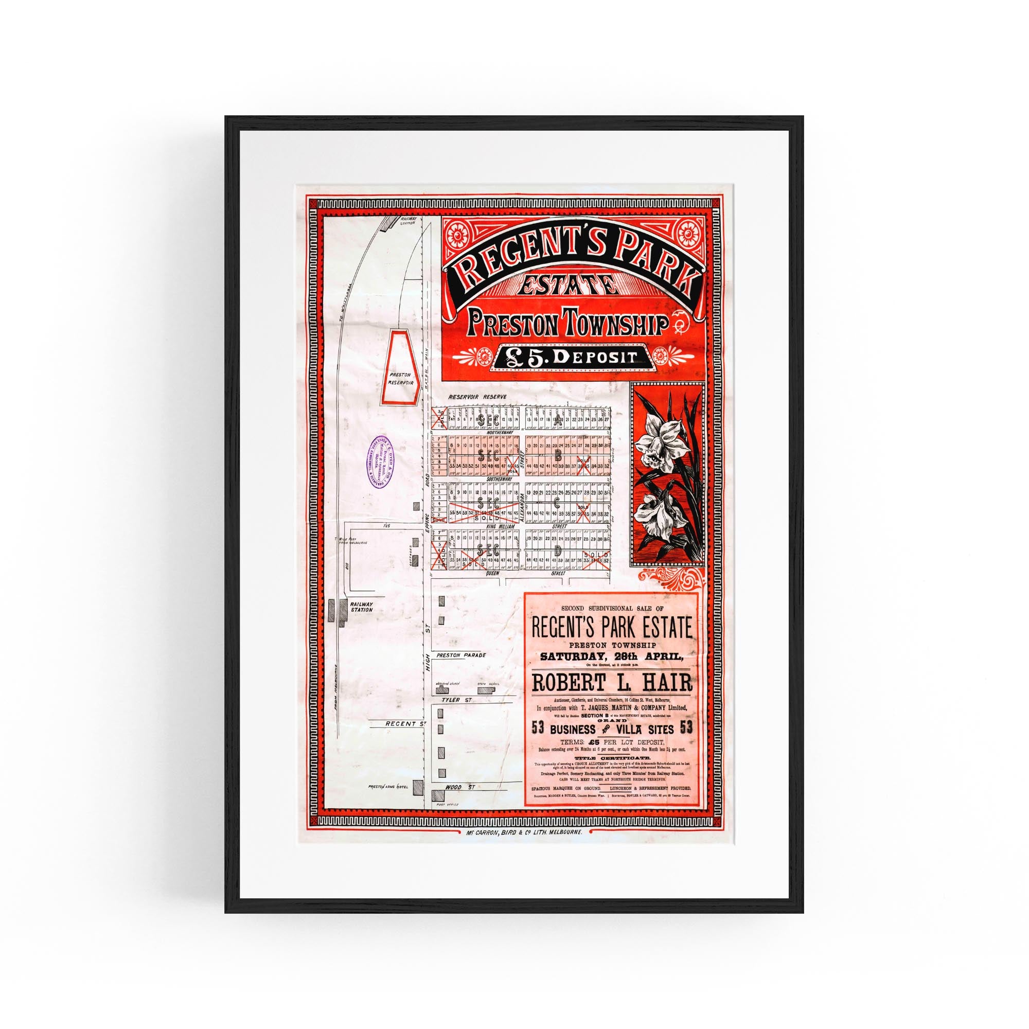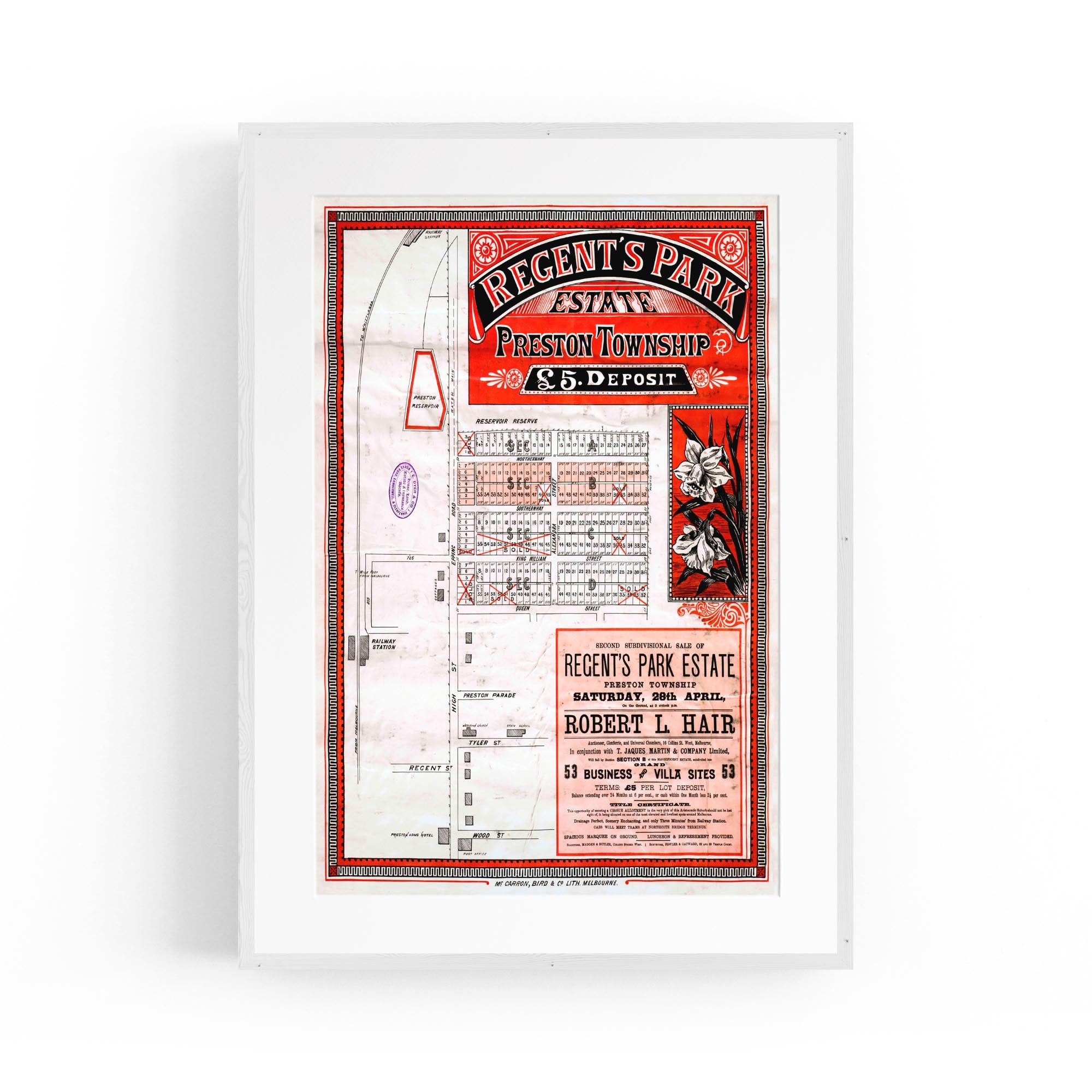 1888 Vintage Map of Preston, Victoria Australia