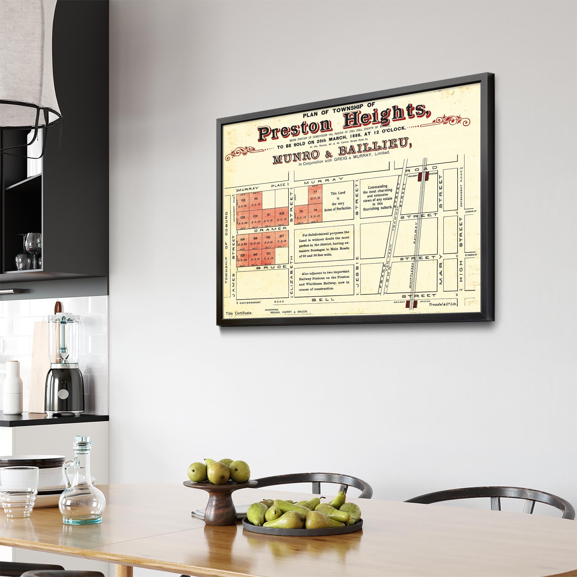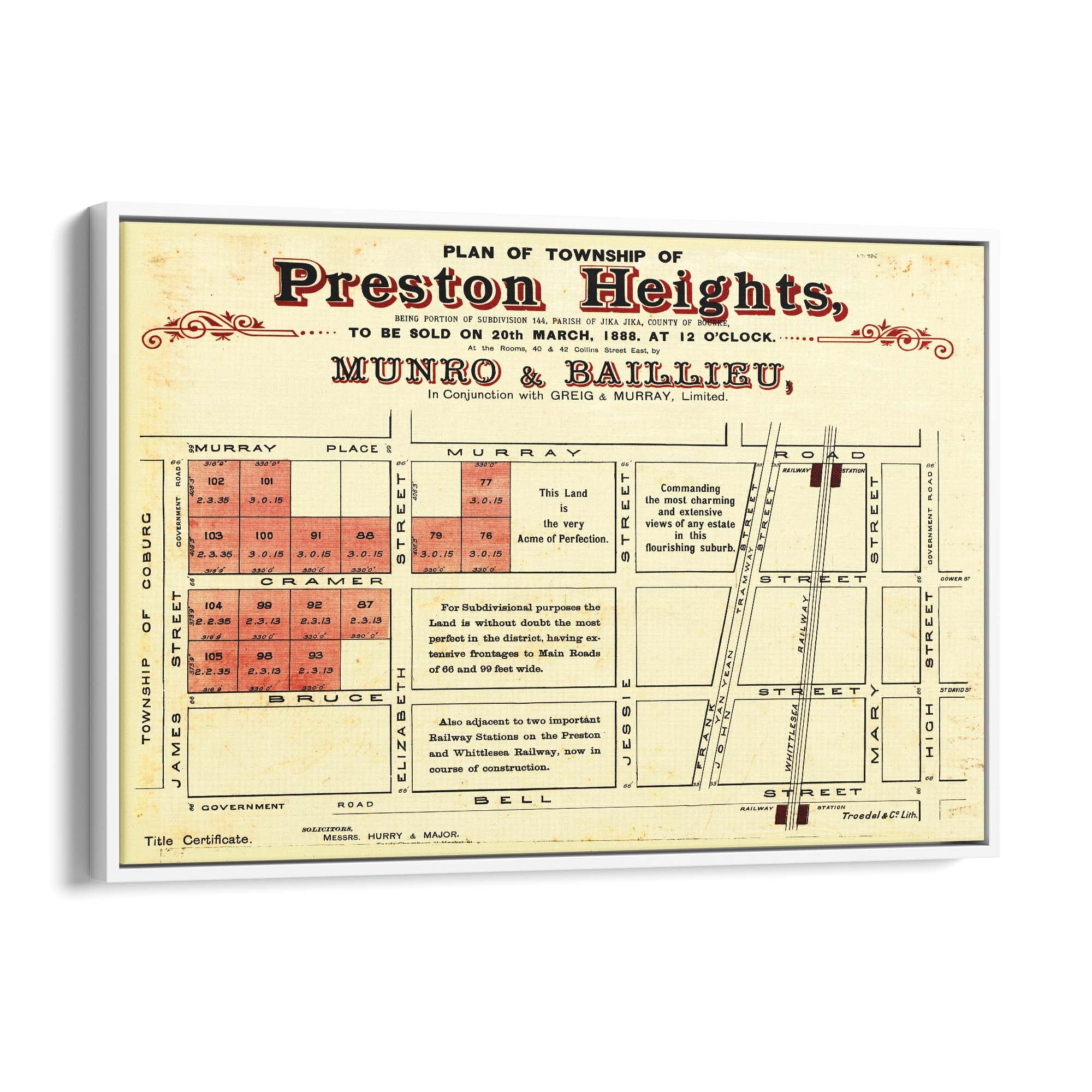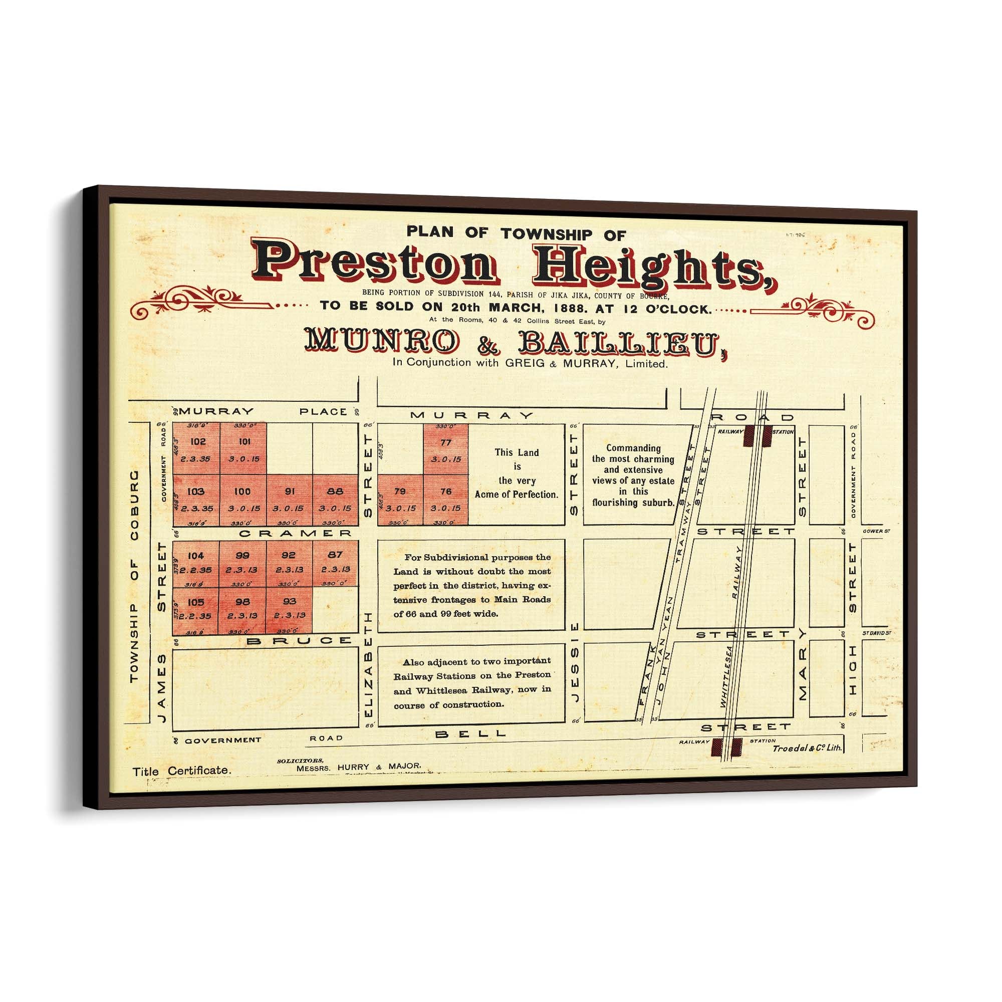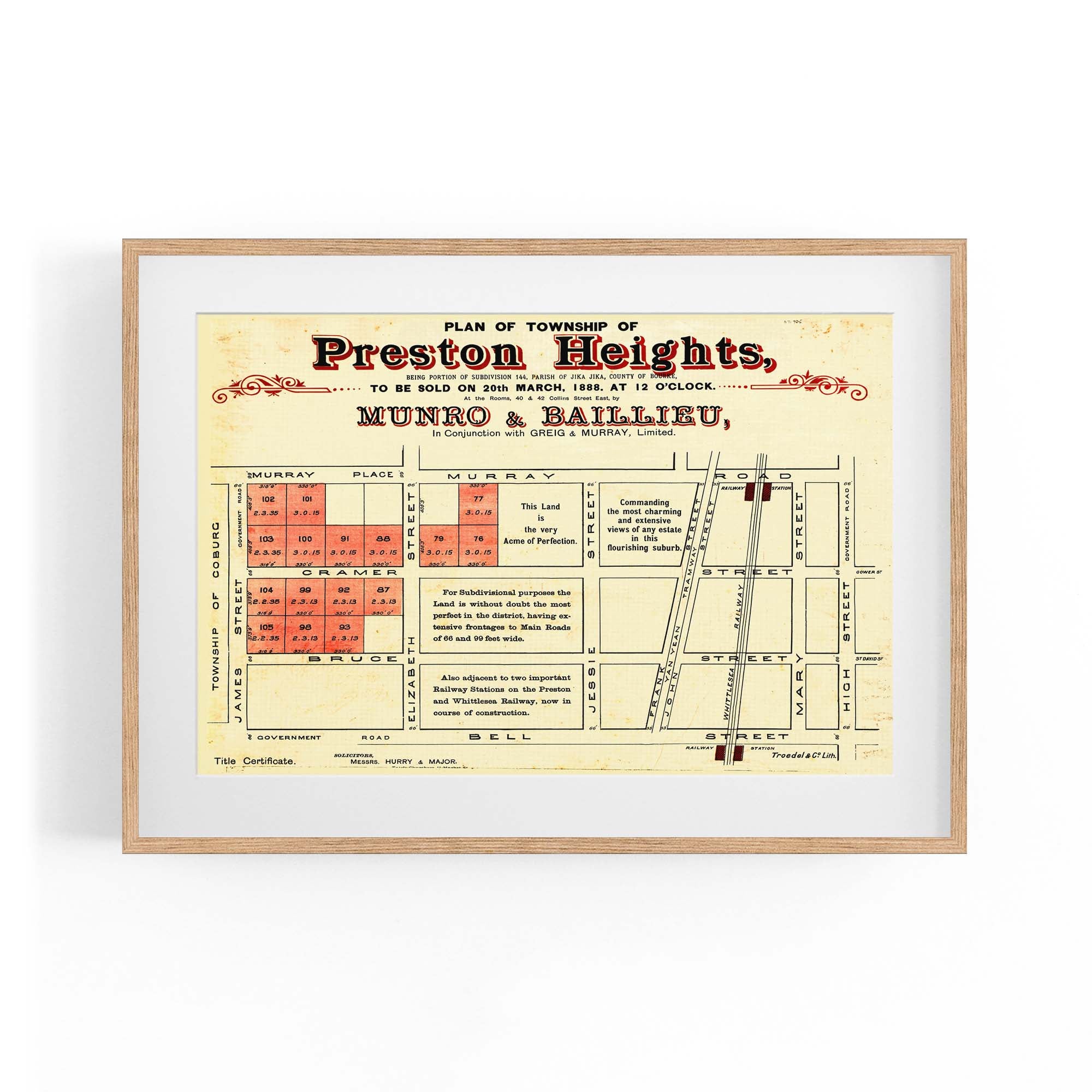1888 Vintage Map of Preston, Victoria Australia