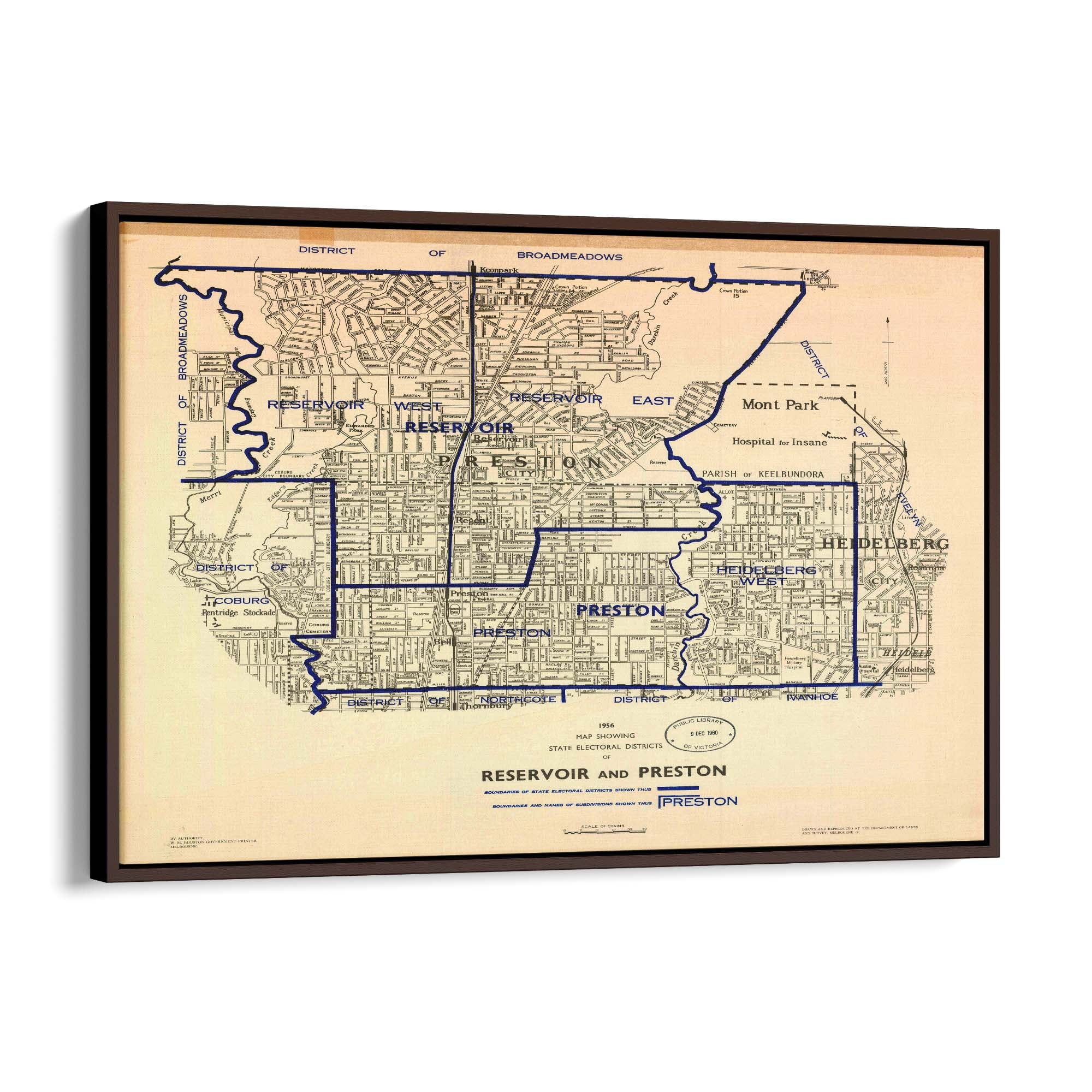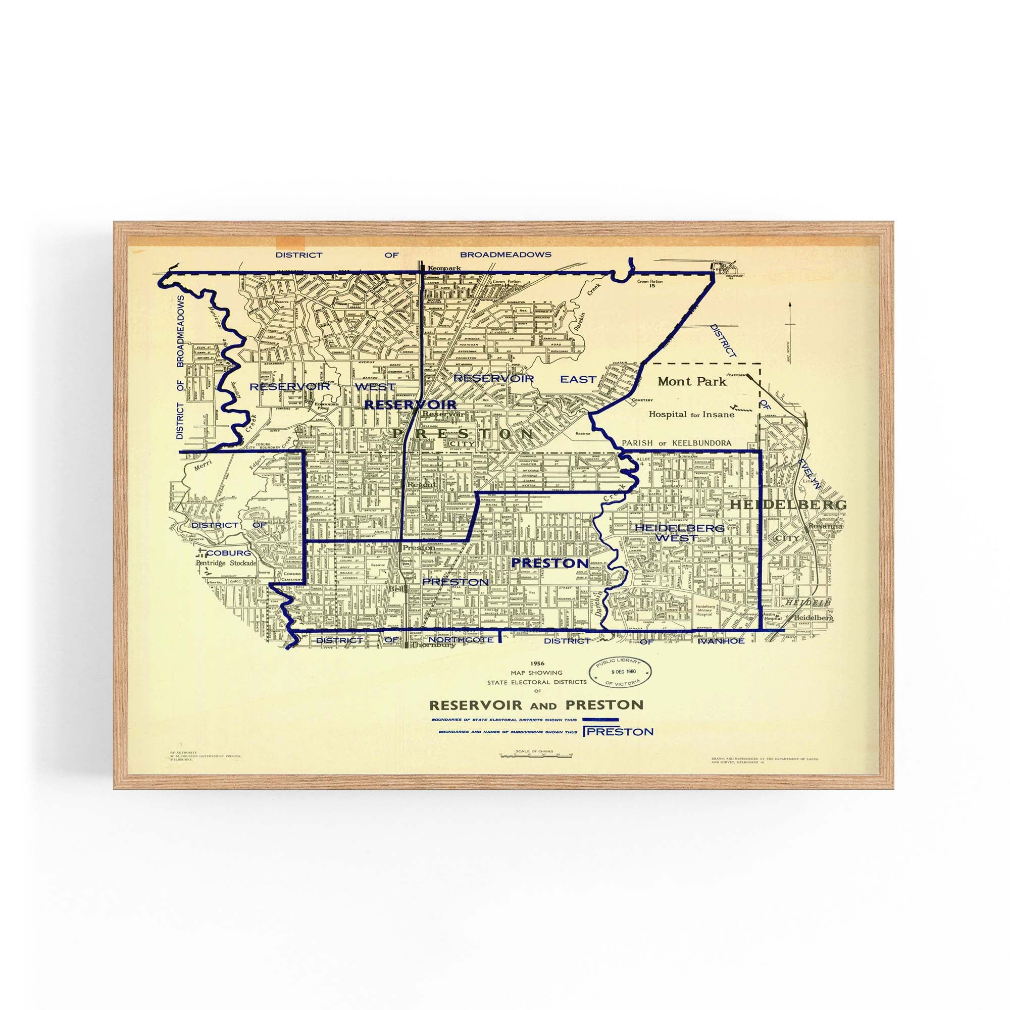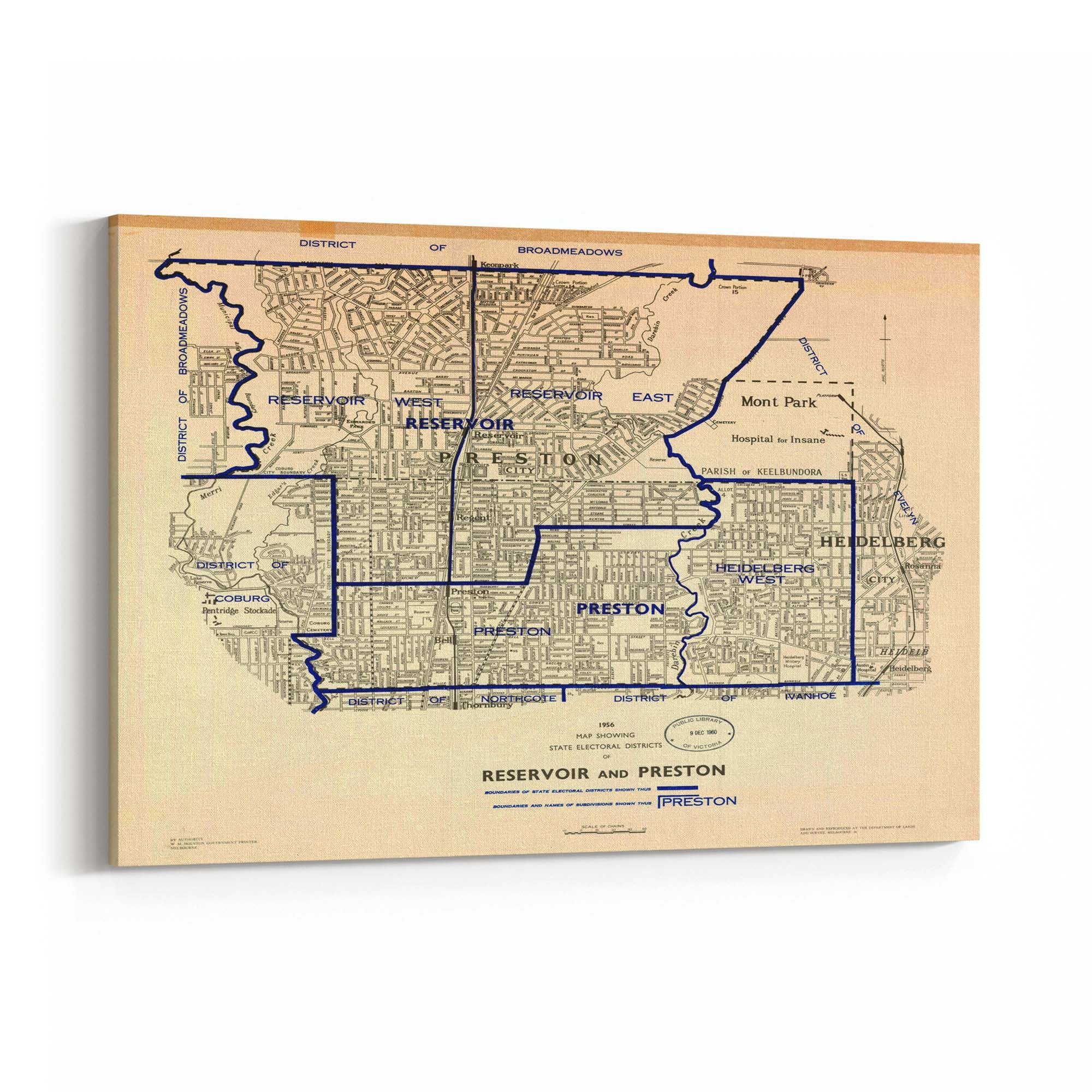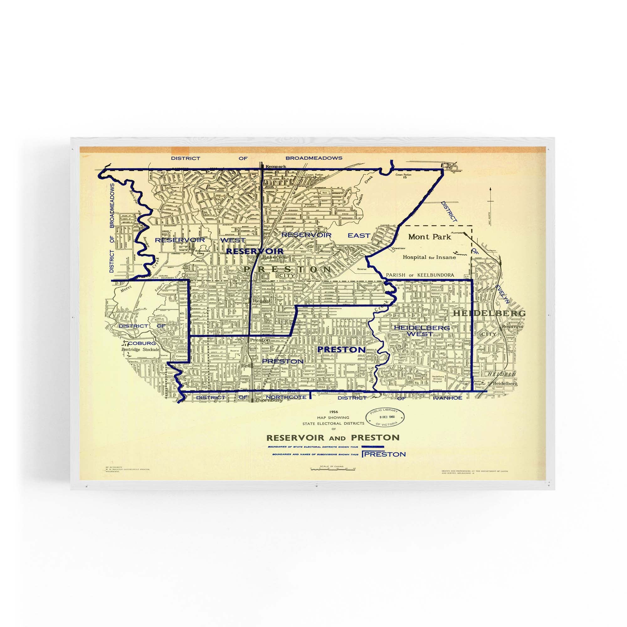1956 map showing state electoral districts of Reservoir and Preston. Drawn and reproduced at the Department of Lands and Survey. 1956.