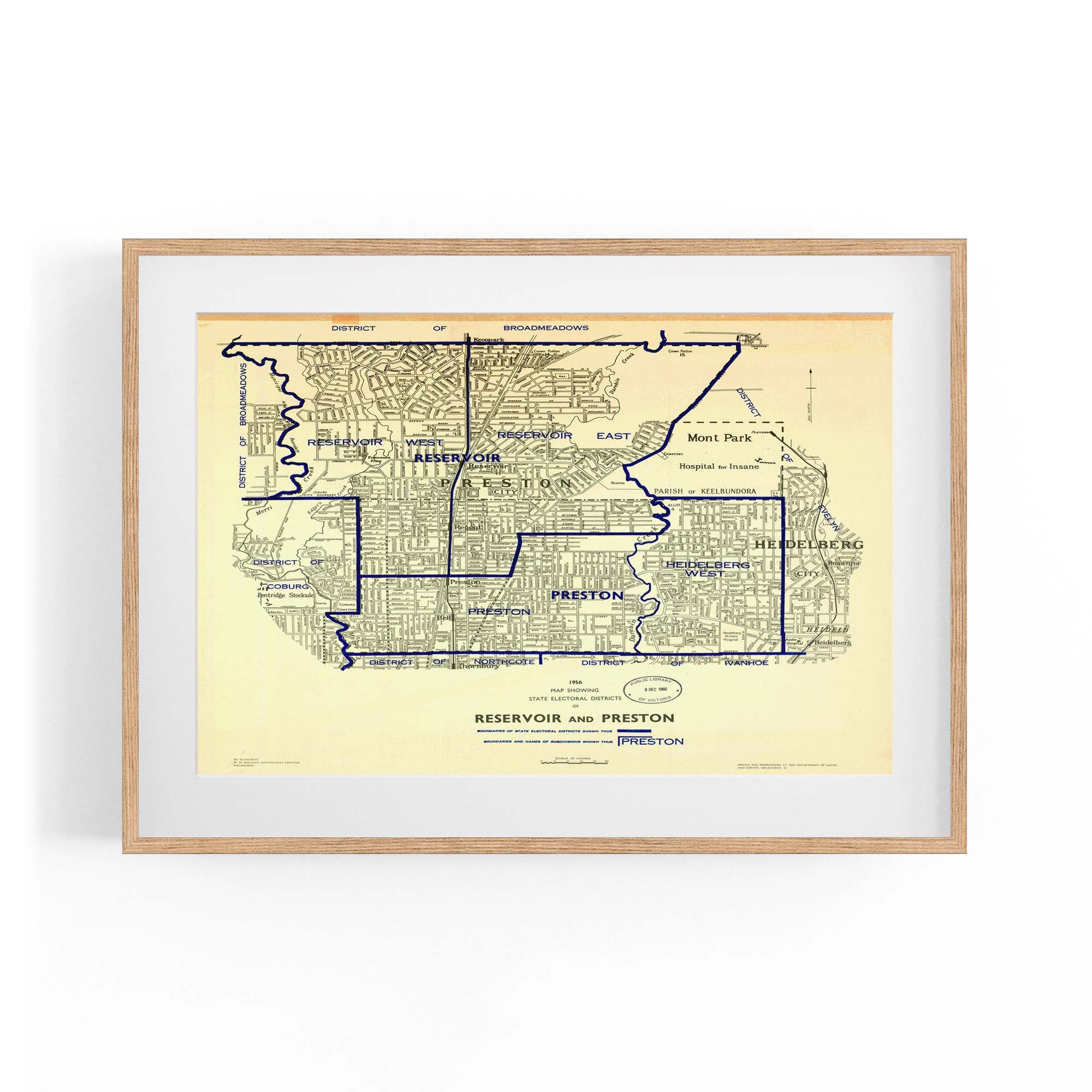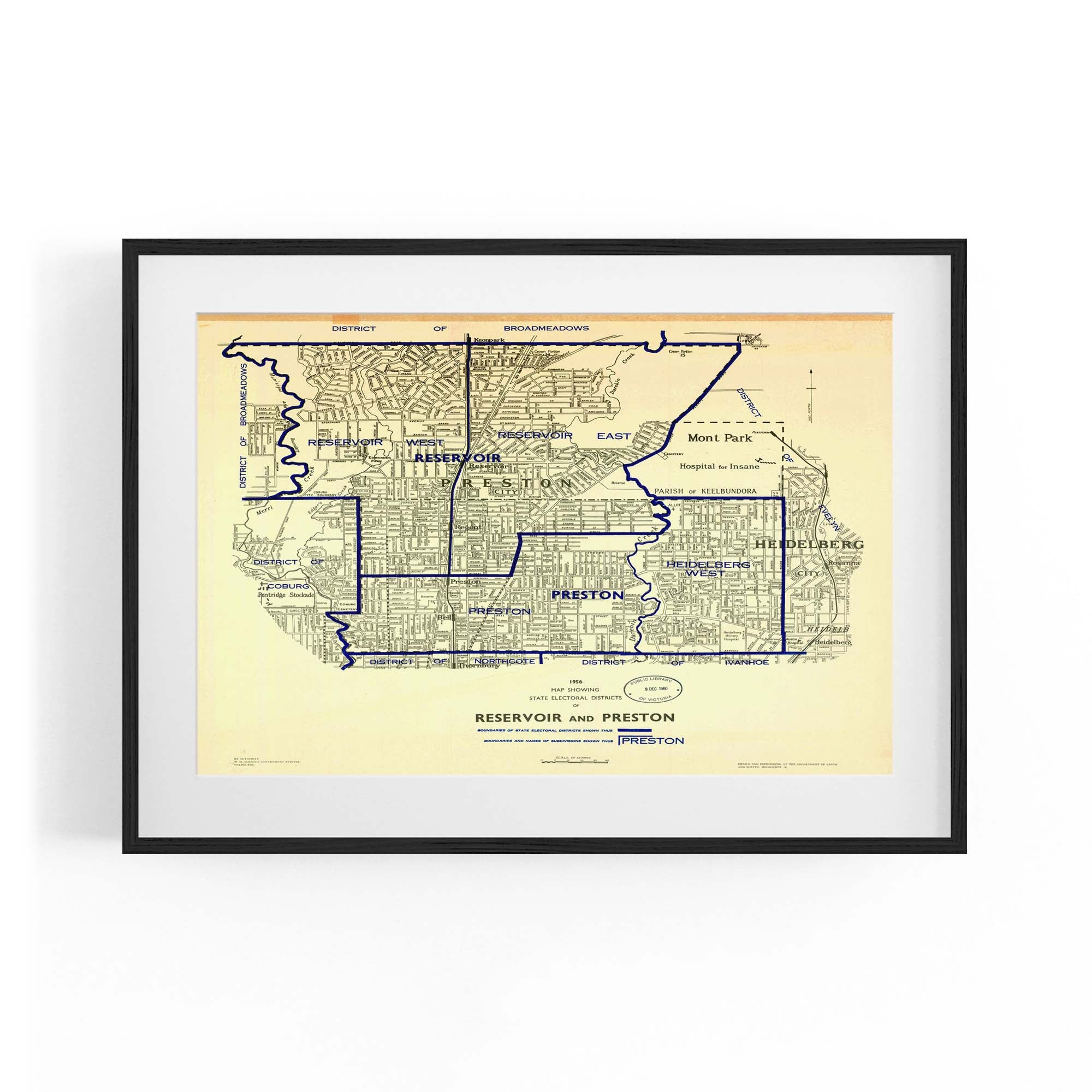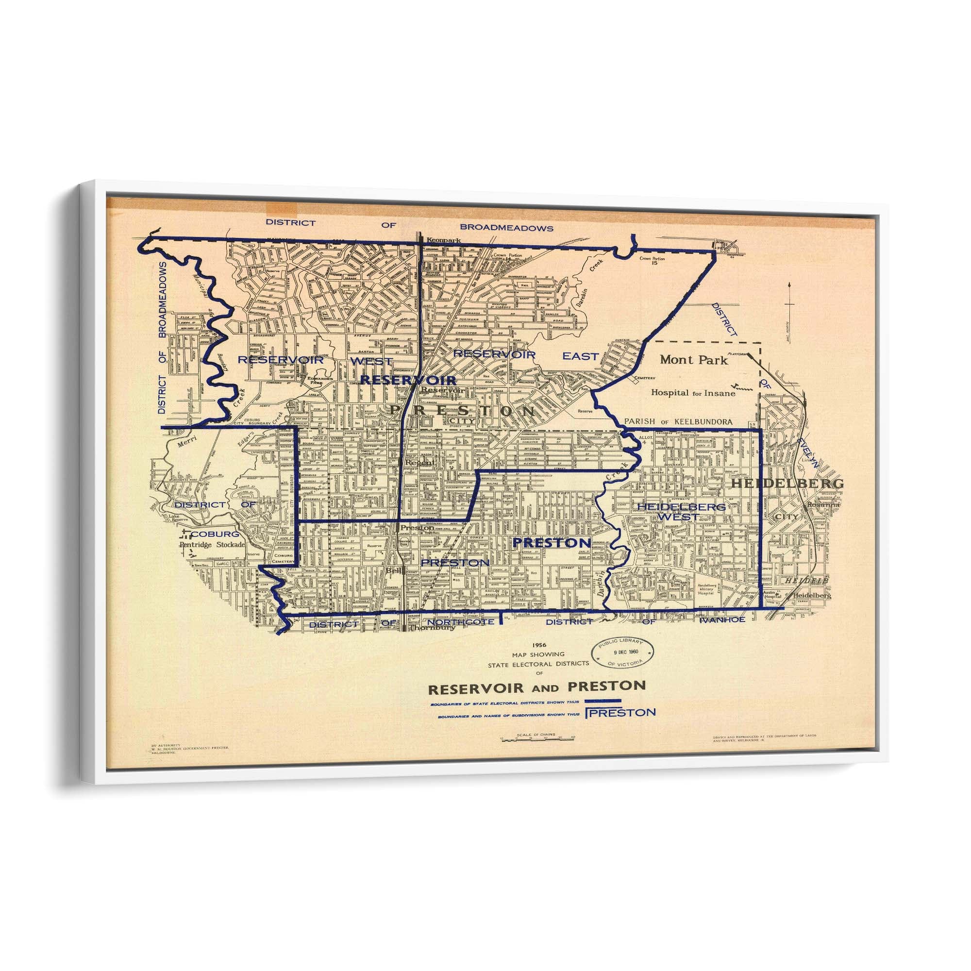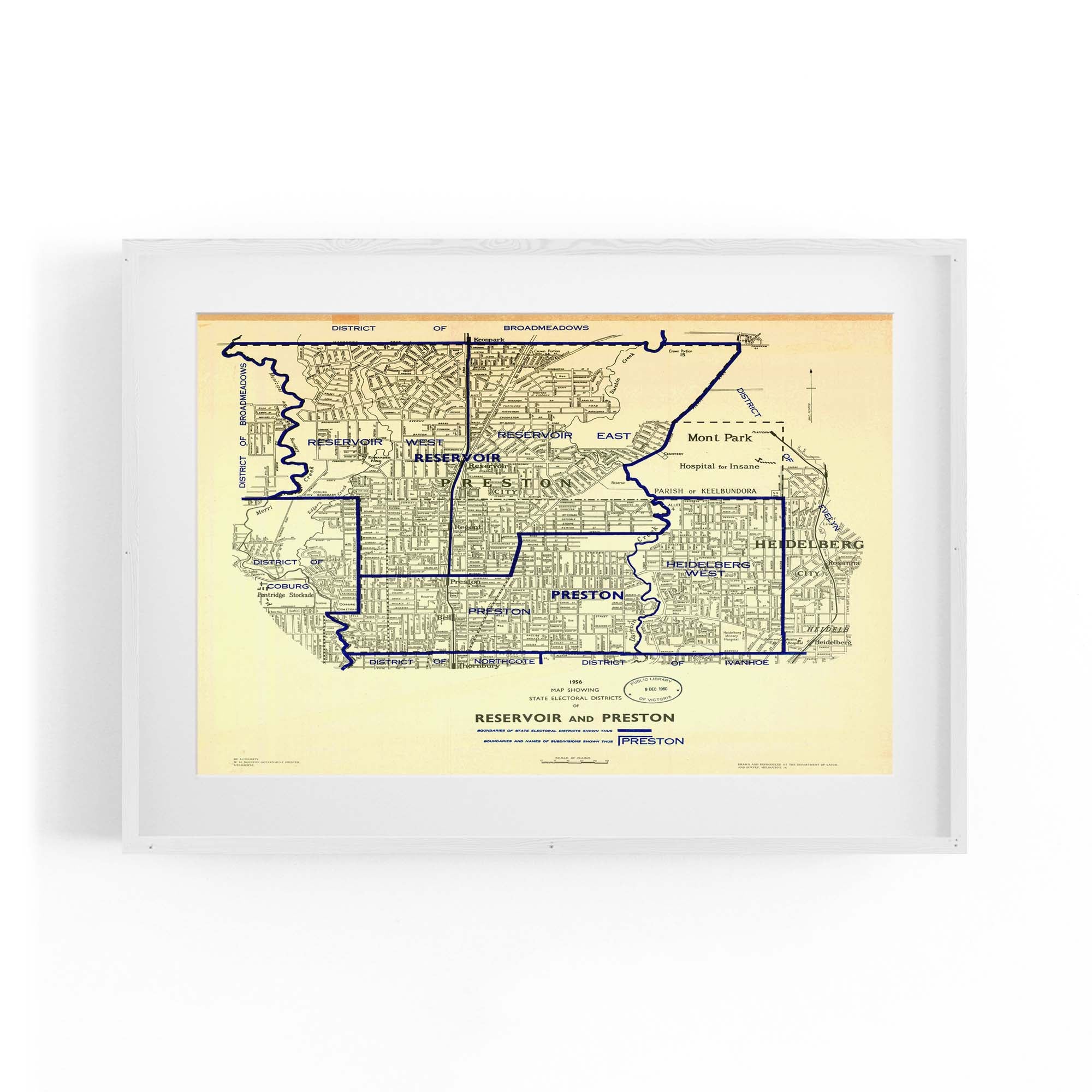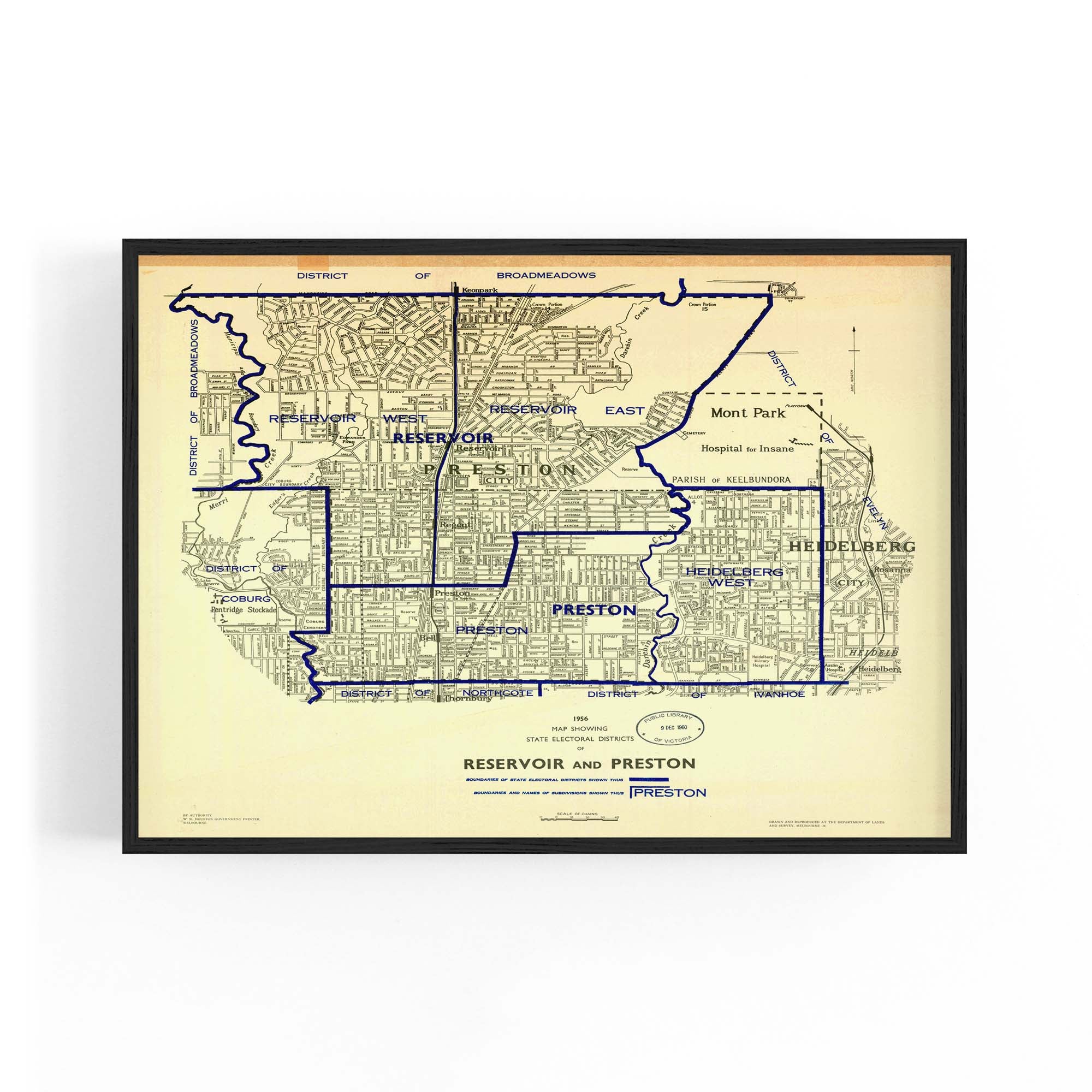 1956 map showing state electoral districts of Reservoir and Preston. Drawn and reproduced at the Department of Lands and Survey. 1956.