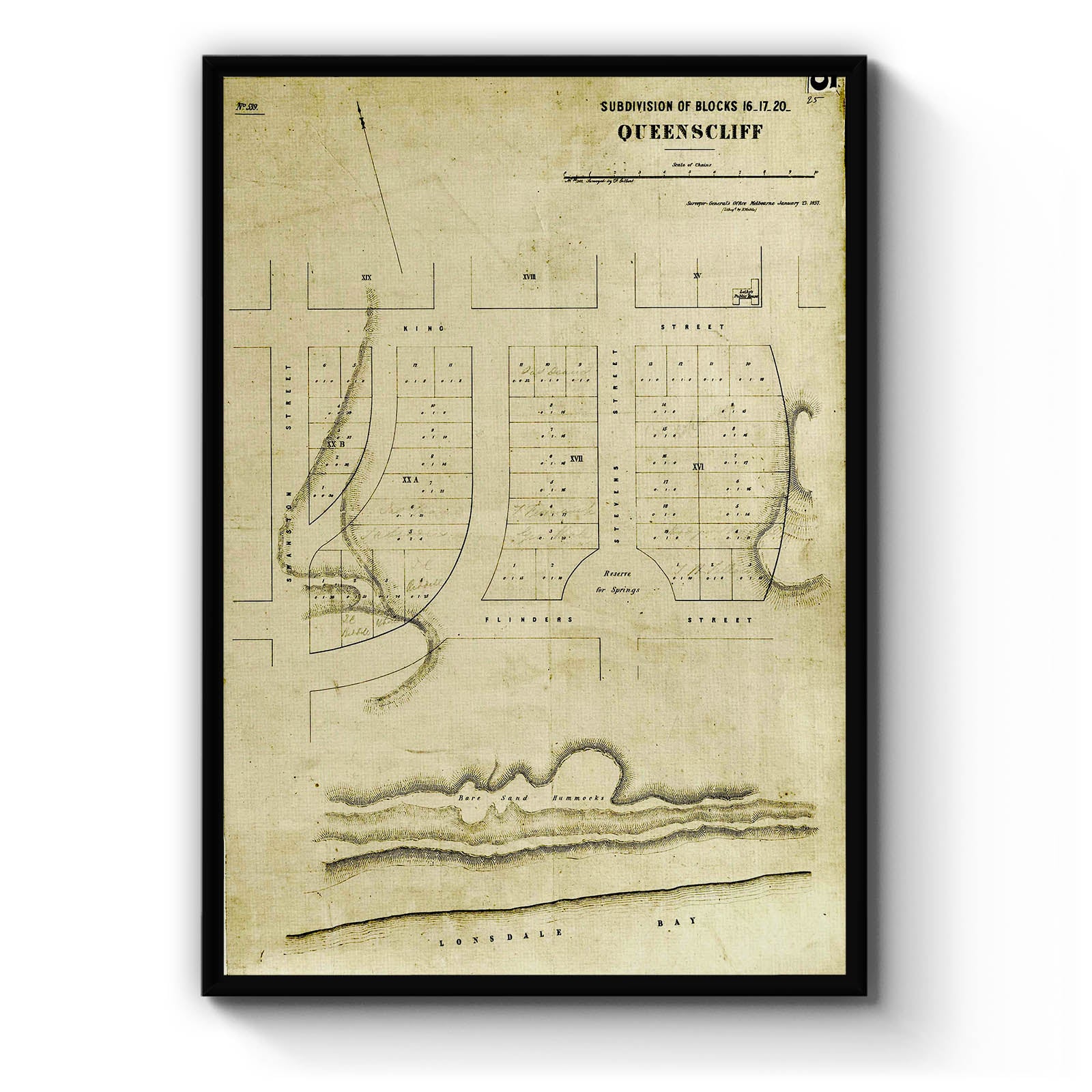 Subdivision of blocks 16-17-20, Queenscliff [cartographic material]./ surveyed by F. Gilbert, Suveyor General's Office, Melbourne January 23, 1857 ; lithogd. by R. Meikle. 1857.