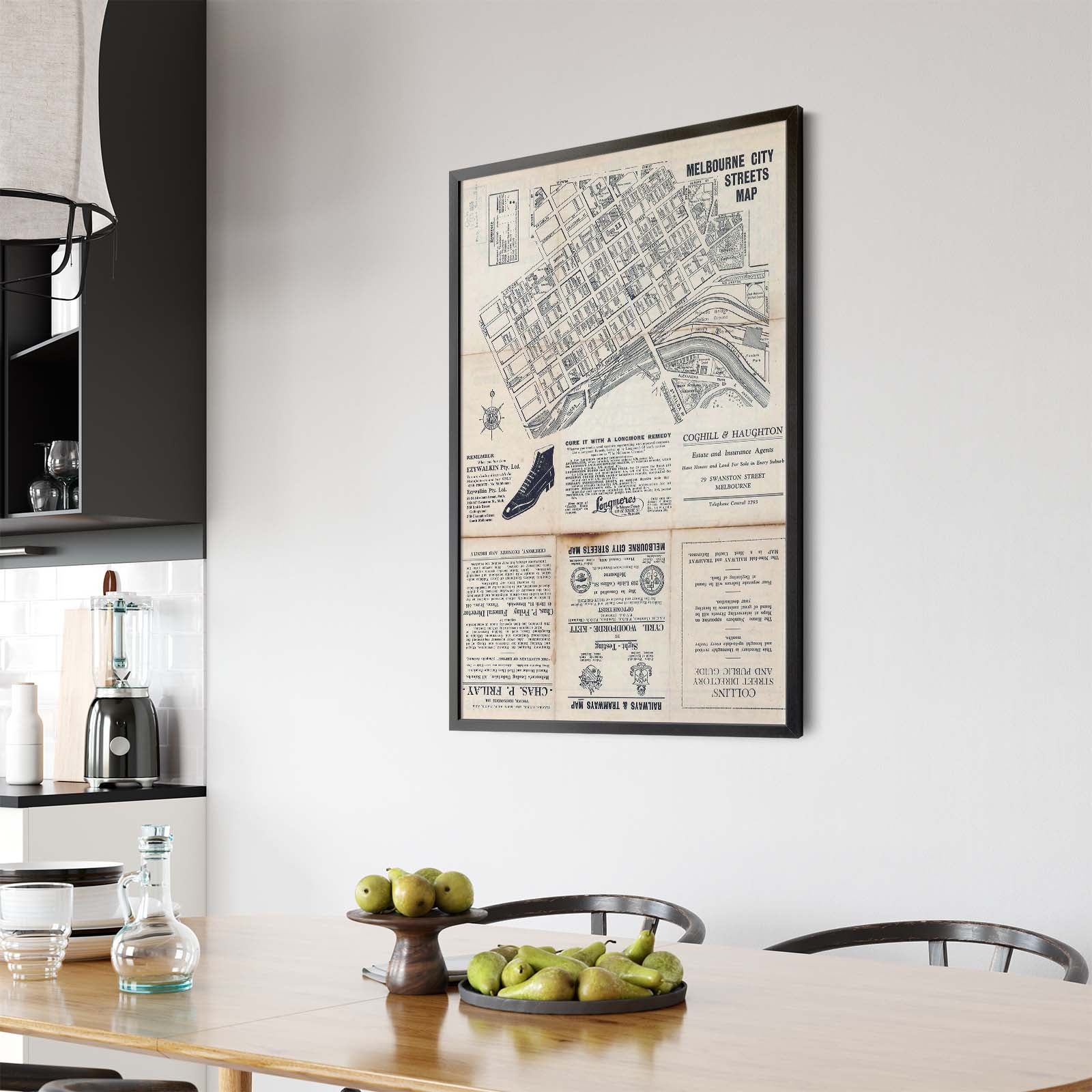Recently moving to Harcourt and being interested in the history of the area, it seemed fitting to purchase a vintage map of the area which is displayed on our kitchen wall for us to study easily, identifying the block of land we bought. Nicely framed too.
