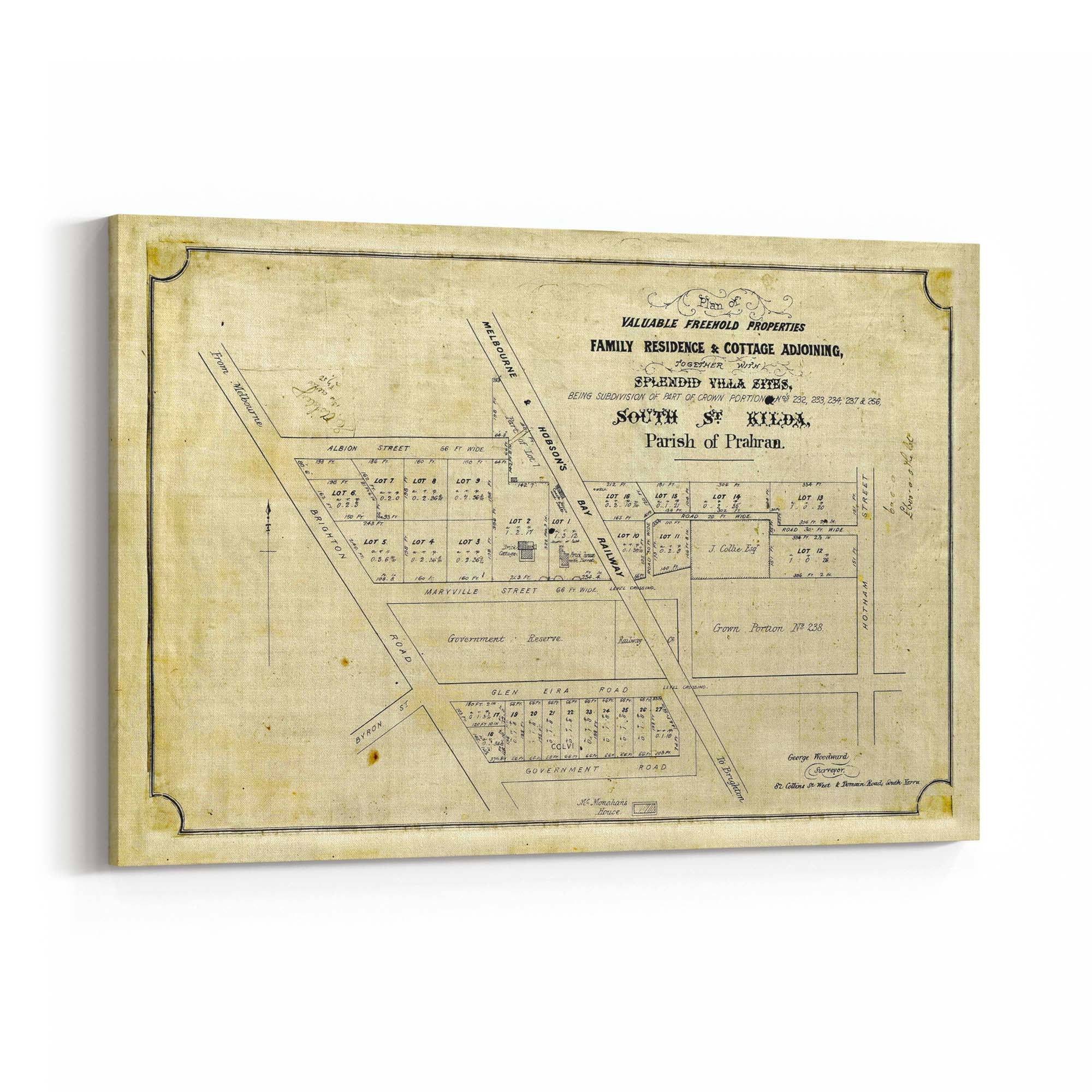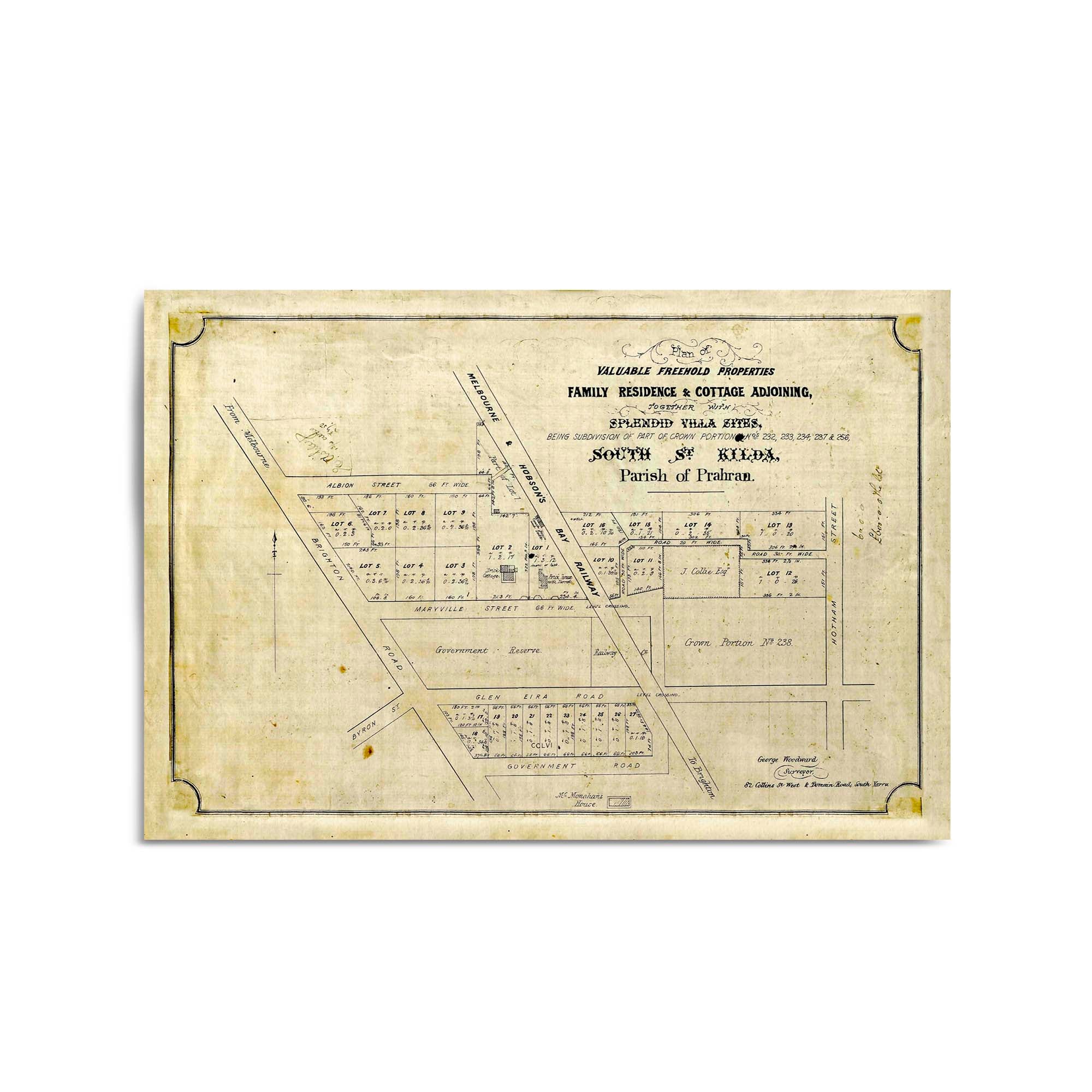 Recently moving to Harcourt and being interested in the history of the area, it seemed fitting to purchase a vintage map of the area which is displayed on our kitchen wall for us to study easily, identifying the block of land we bought. Nicely framed too.