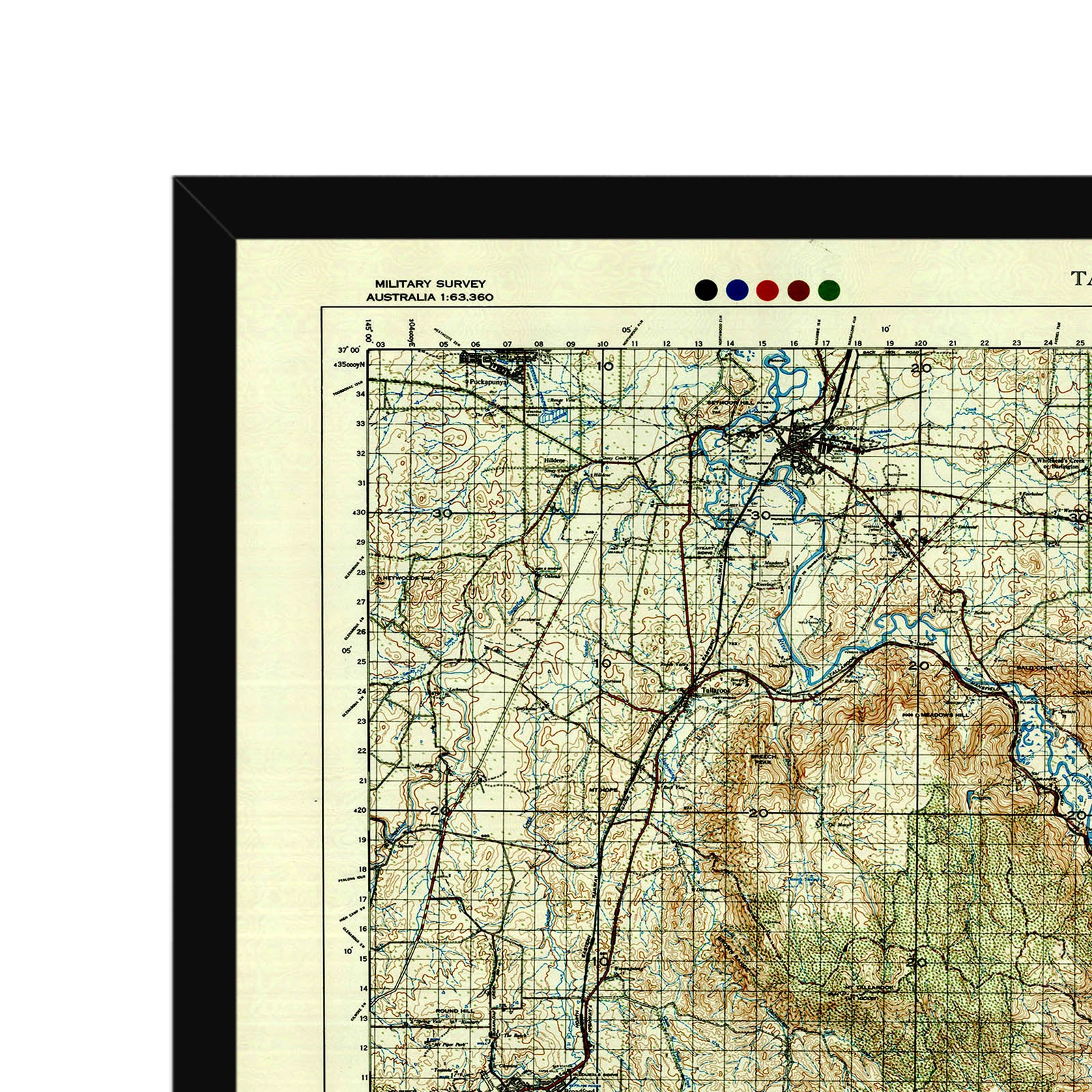 Recently moving to Harcourt and being interested in the history of the area, it seemed fitting to purchase a vintage map of the area which is displayed on our kitchen wall for us to study easily, identifying the block of land we bought. Nicely framed too.