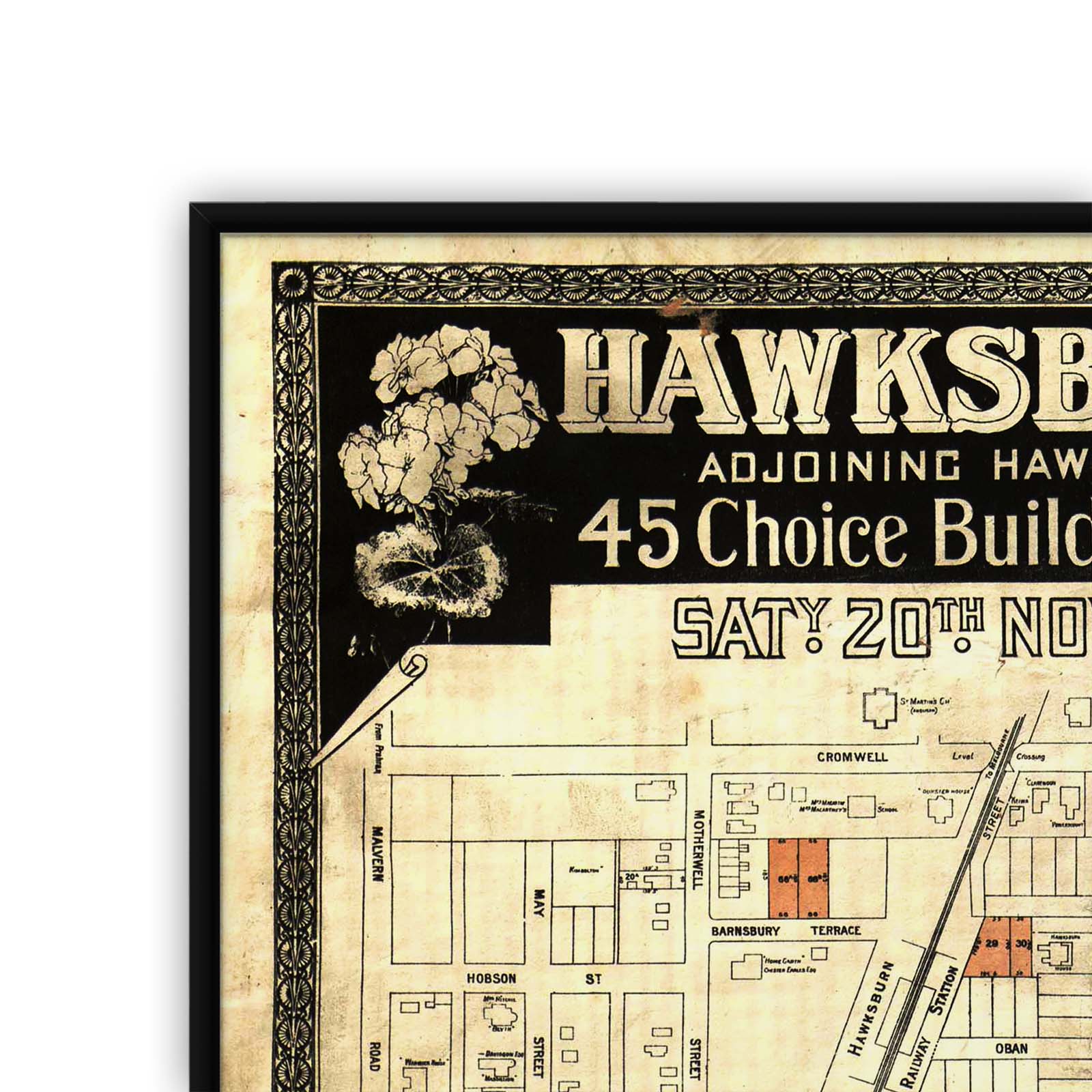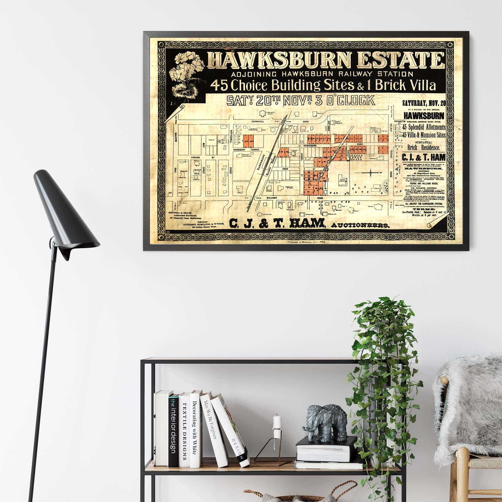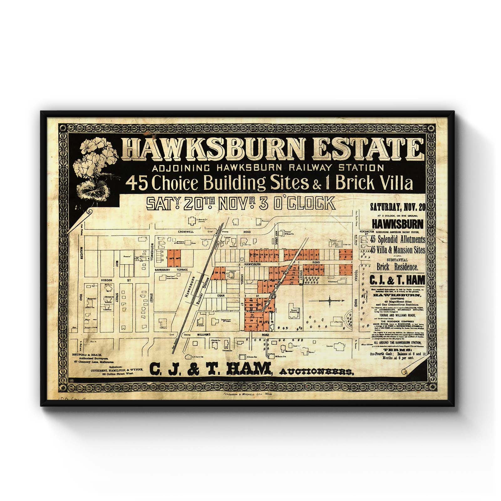 "45 choice building sites and 1 brick villa".; "Saty. 20th. Novr."; "C.J. & T. Ham, Auctioneers".