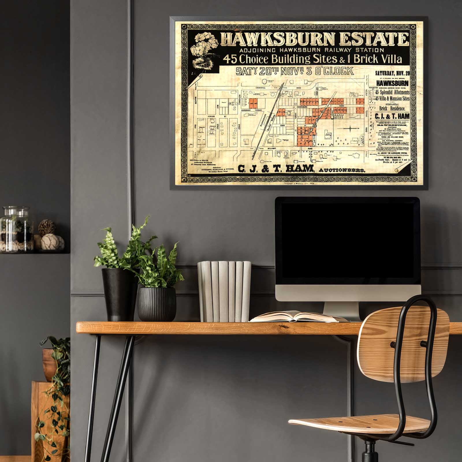 Recently moving to Harcourt and being interested in the history of the area, it seemed fitting to purchase a vintage map of the area which is displayed on our kitchen wall for us to study easily, identifying the block of land we bought. Nicely framed too.