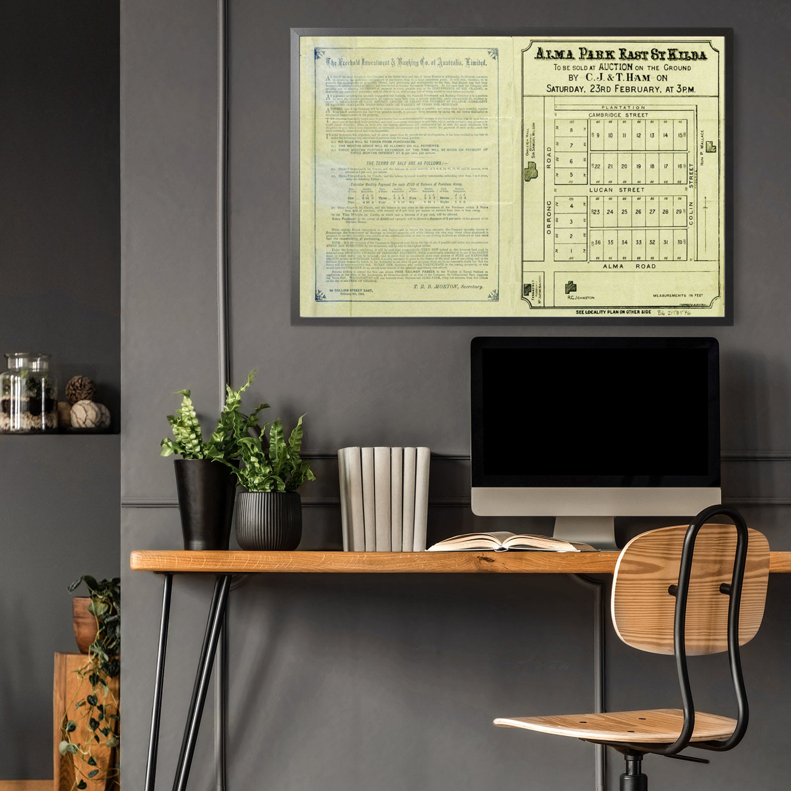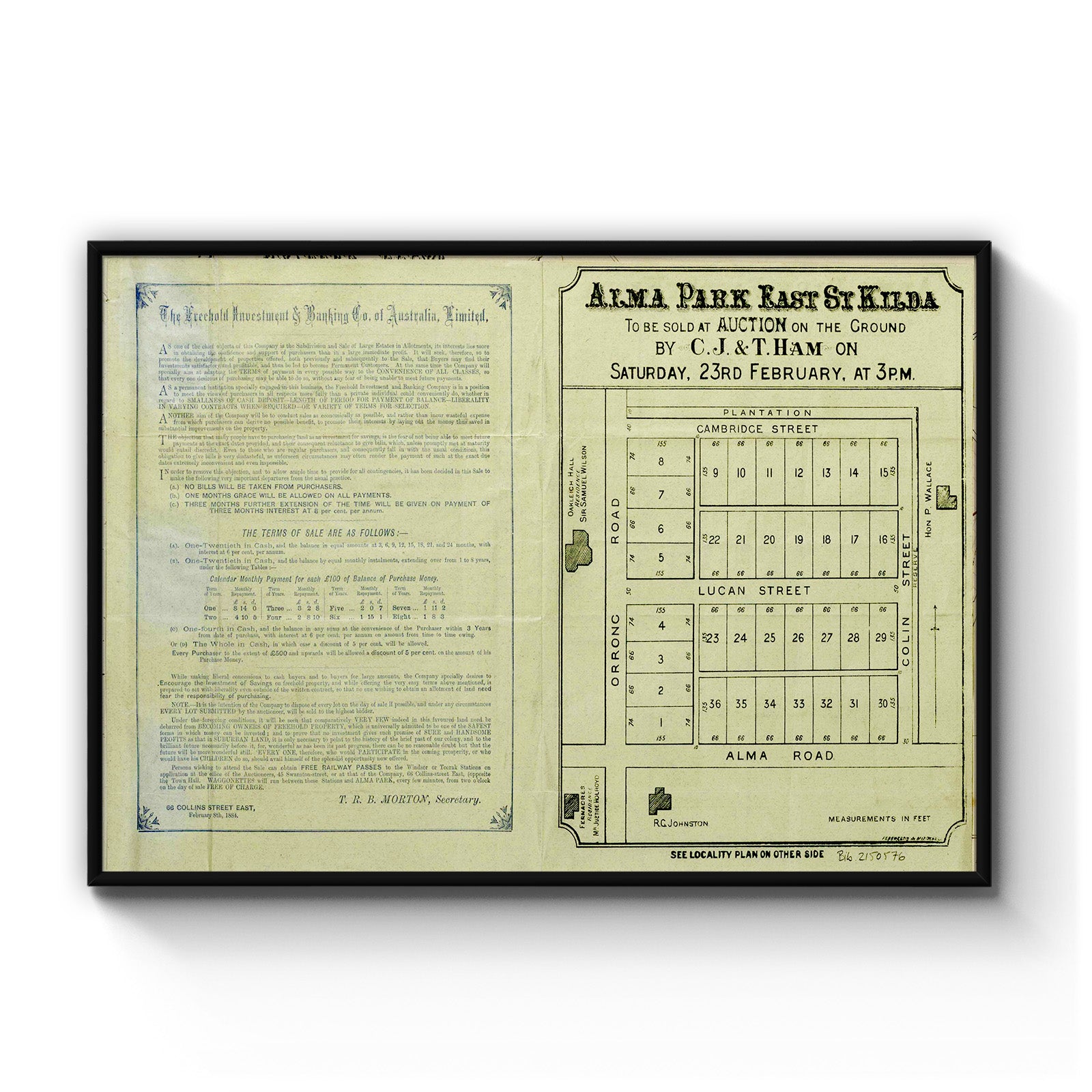 Alma Park East St Kilda [cartographic material]. [between 1858 to 1872] Auction held Saturday 23rd February at 3pm. Verso: Includes a locality plan of the area to be auctioned.;