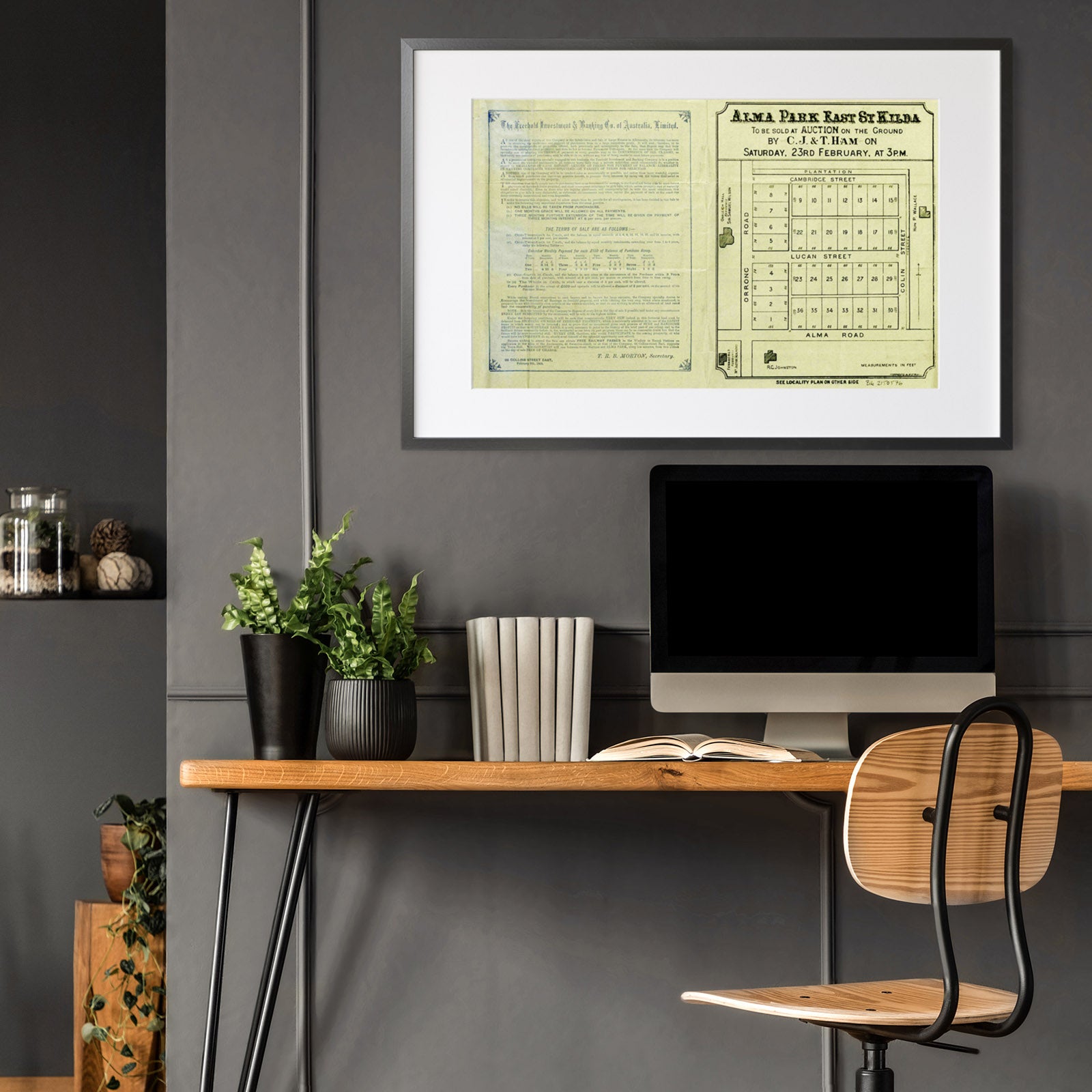Recently moving to Harcourt and being interested in the history of the area, it seemed fitting to purchase a vintage map of the area which is displayed on our kitchen wall for us to study easily, identifying the block of land we bought. Nicely framed too.
