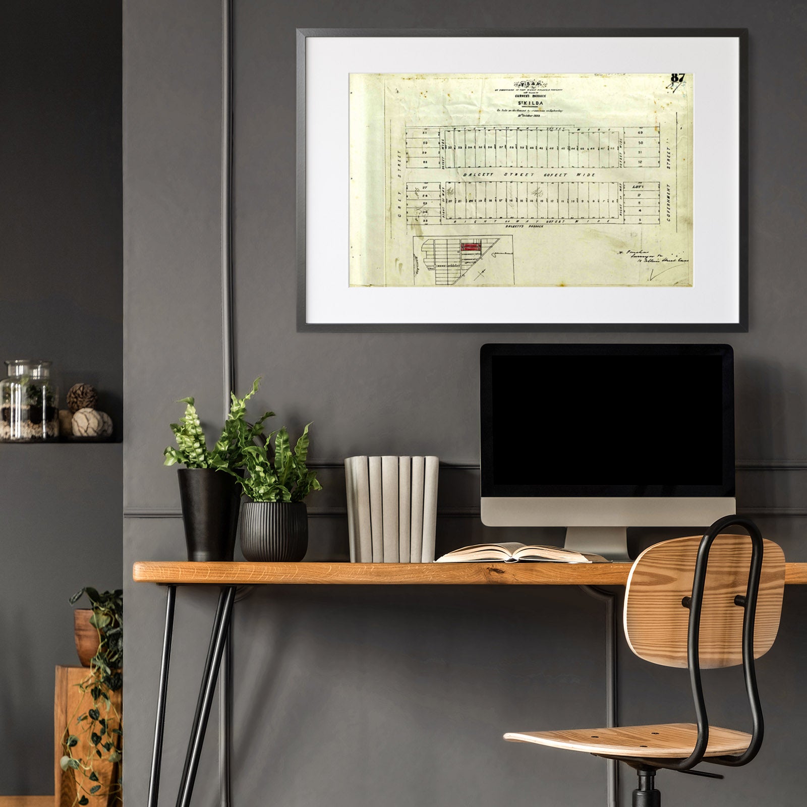 Recently moving to Harcourt and being interested in the history of the area, it seemed fitting to purchase a vintage map of the area which is displayed on our kitchen wall for us to study easily, identifying the block of land we bought. Nicely framed too.