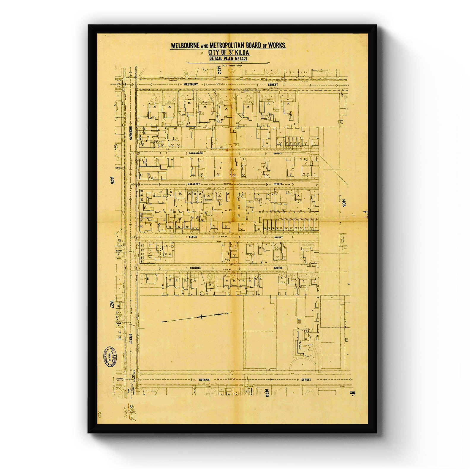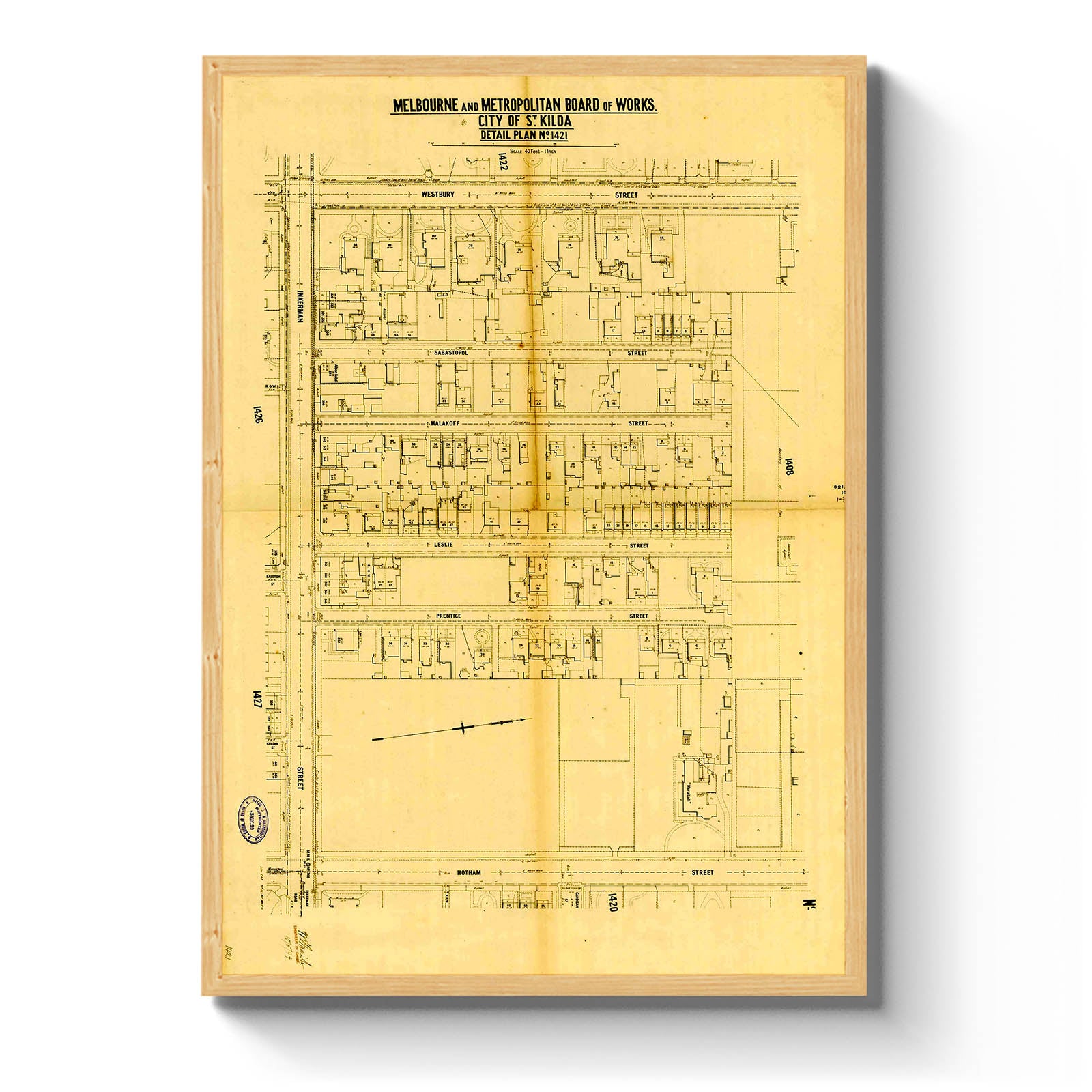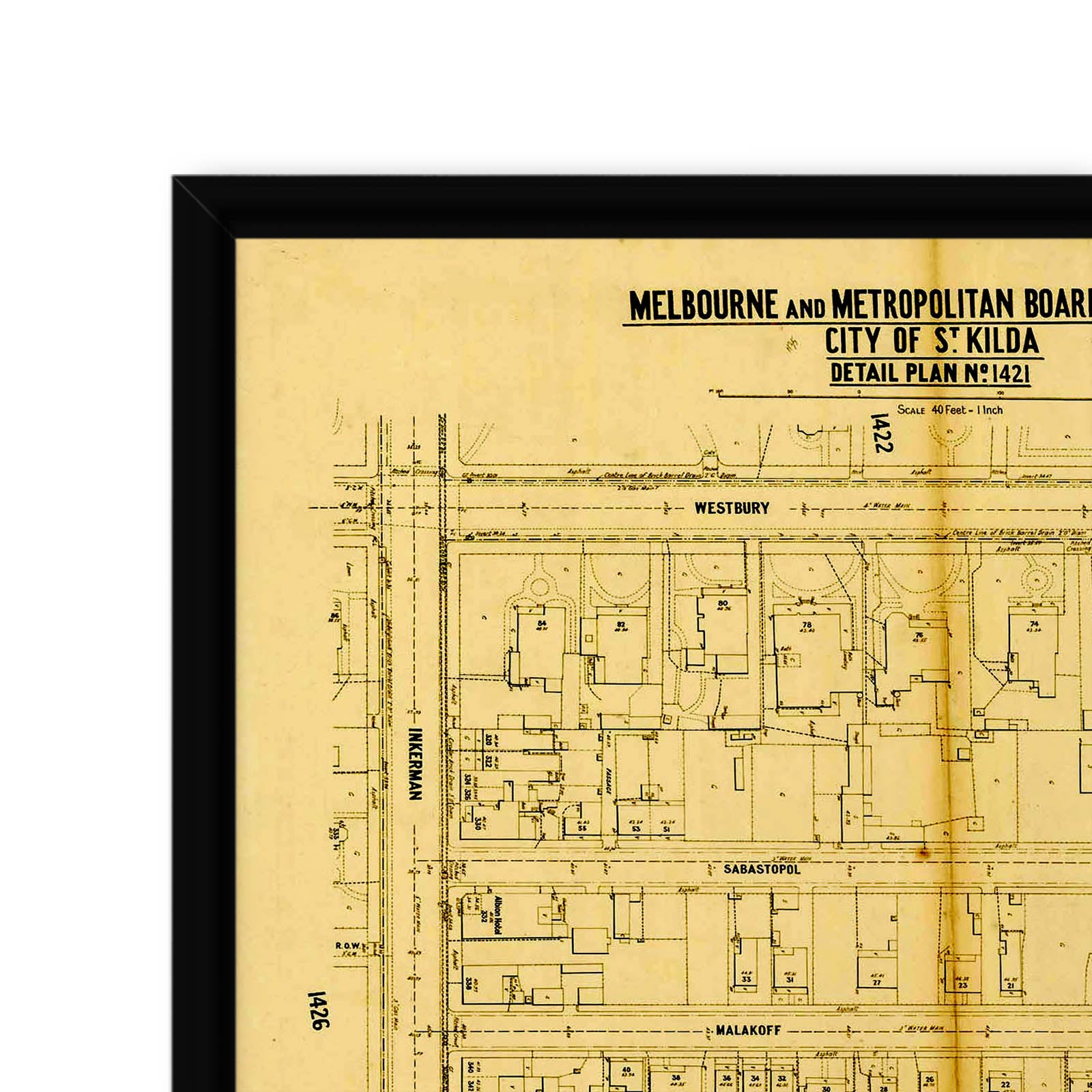 Recently moving to Harcourt and being interested in the history of the area, it seemed fitting to purchase a vintage map of the area which is displayed on our kitchen wall for us to study easily, identifying the block of land we bought. Nicely framed too.