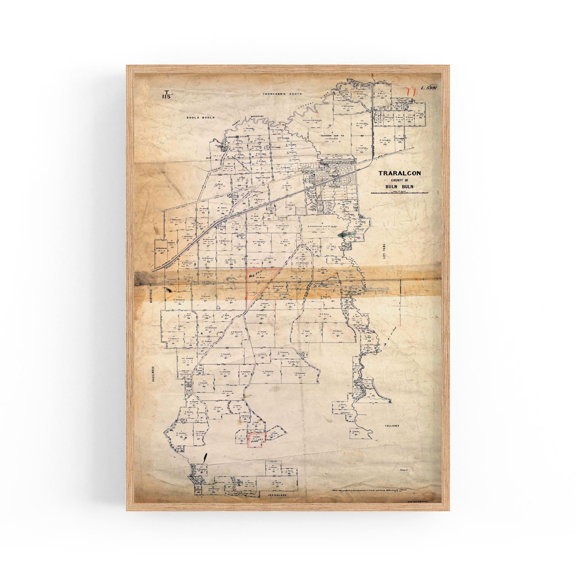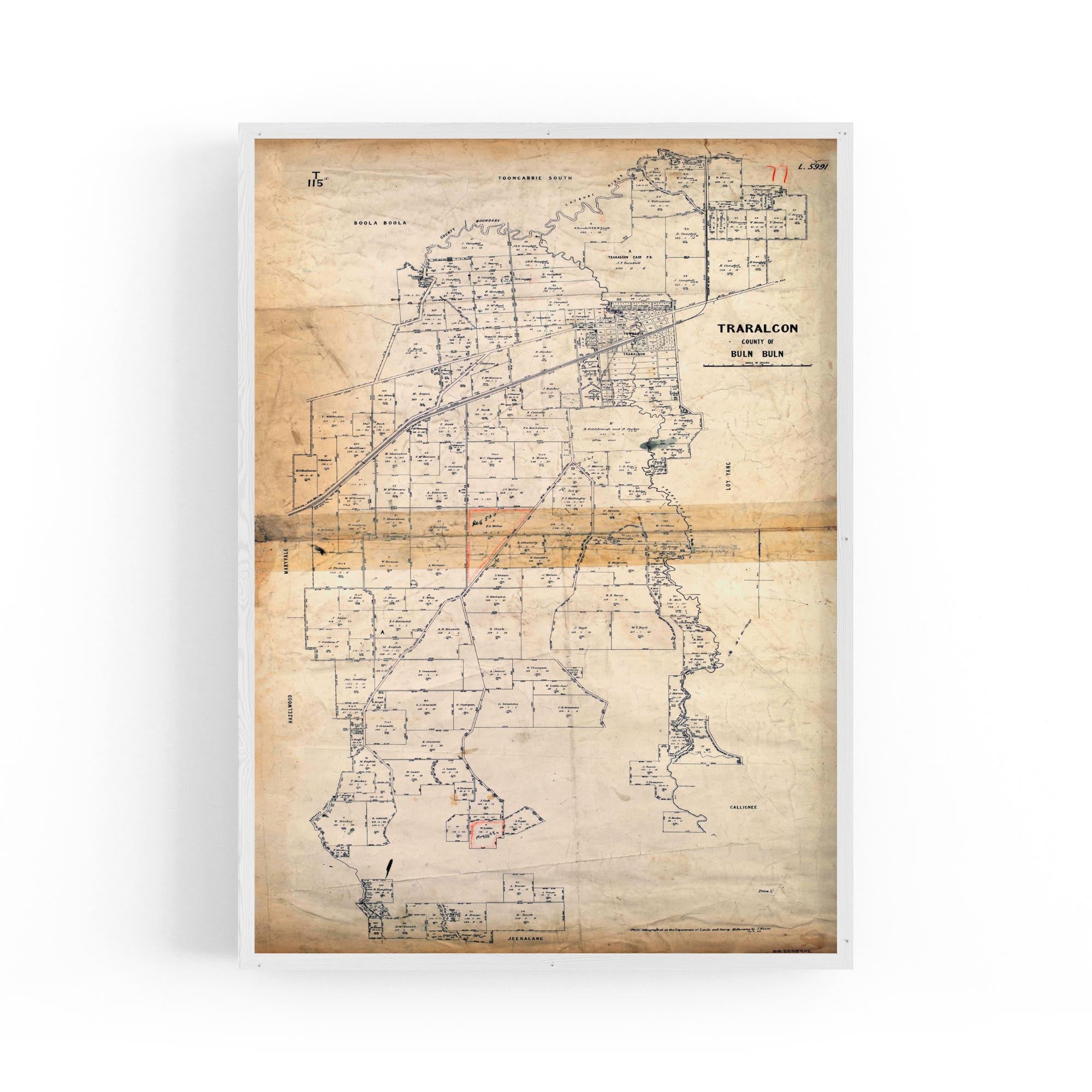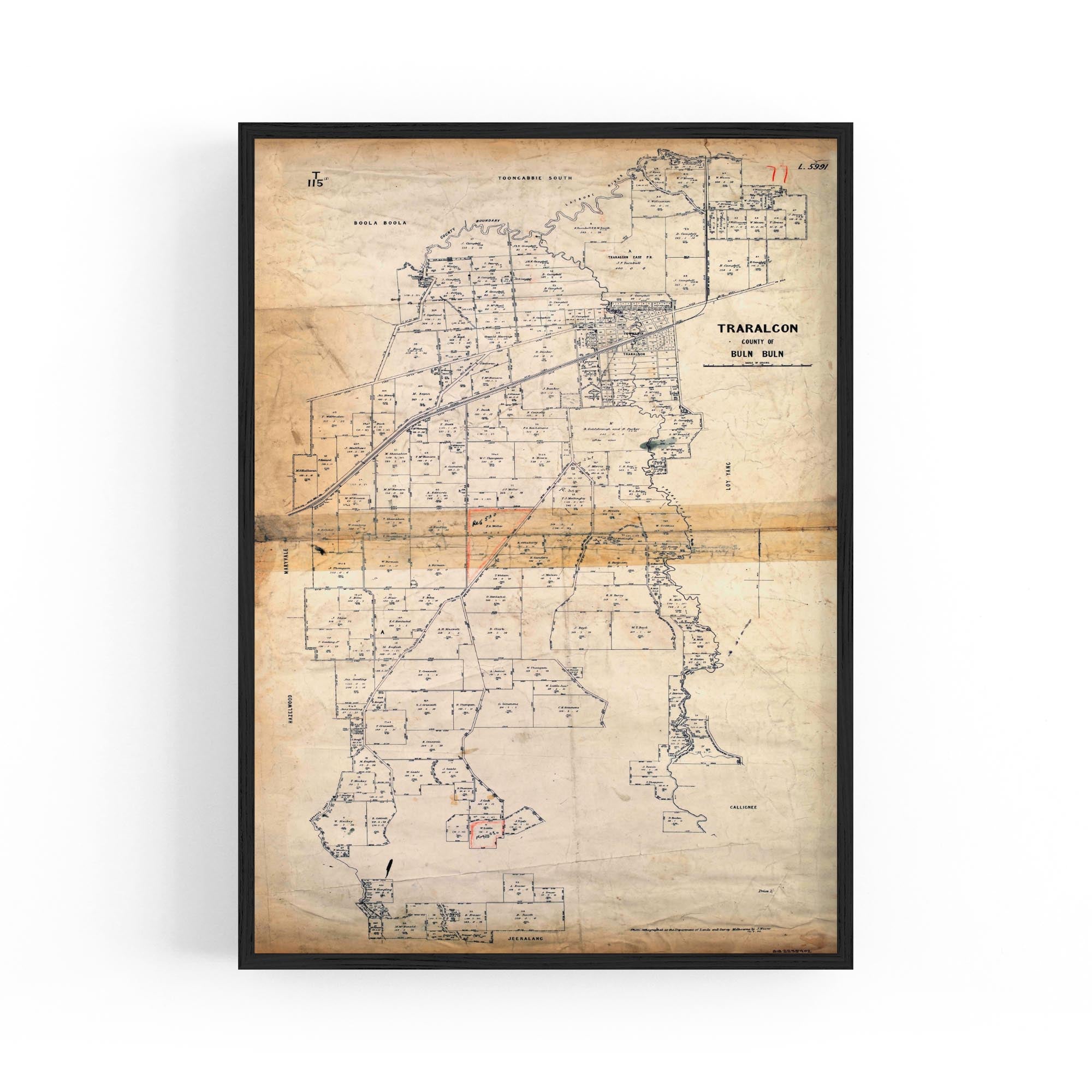 Traralgon, County of Buln Buln. Photo-lithographed at the Department of Lands and Survey, Melbourne, by J. Noone, 1884.