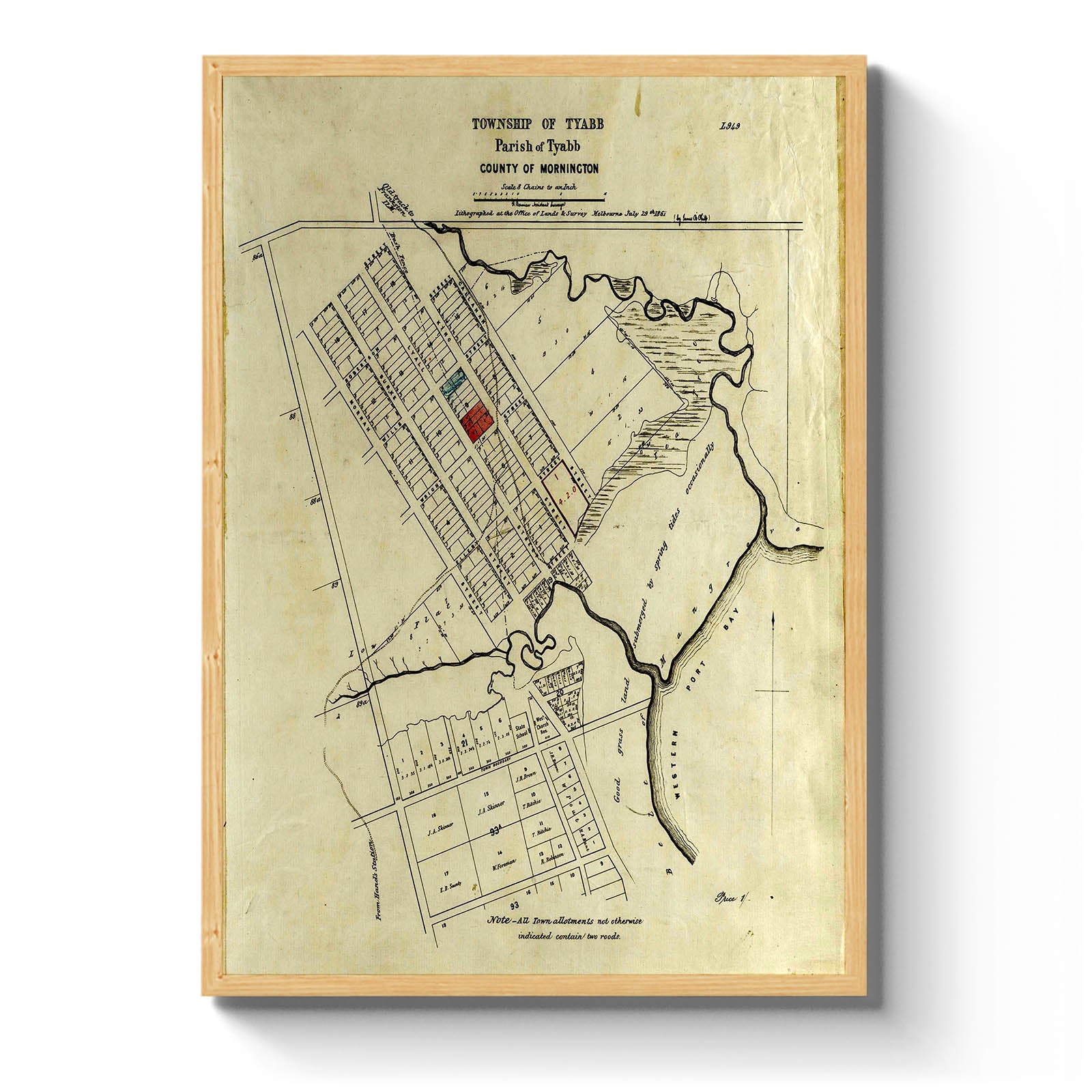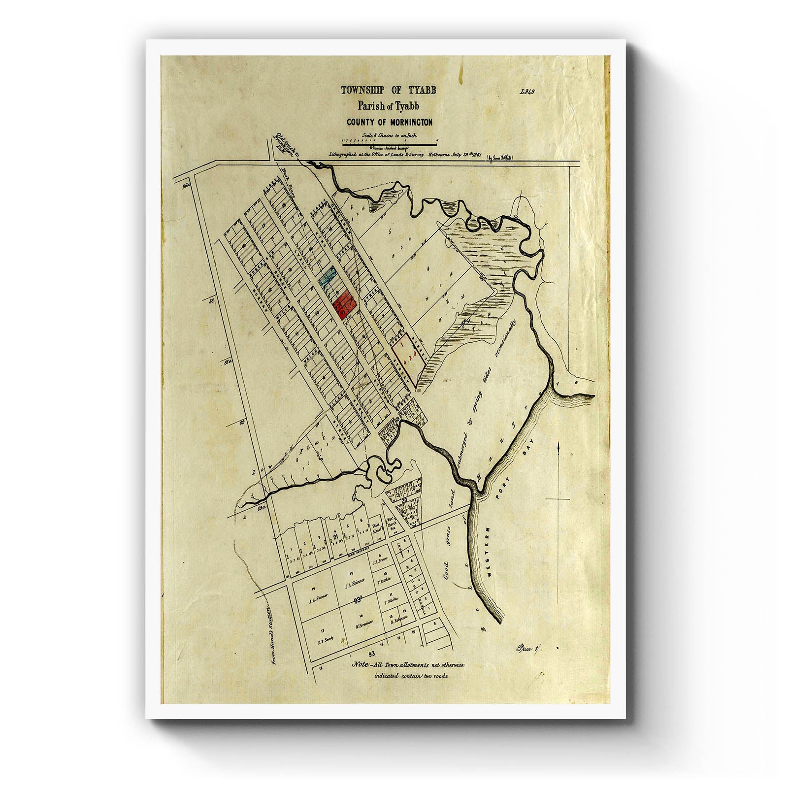 Township of Tyabb, Parish of Tyabb, County of Mornington [cartographic material]./ H. Permien, Assistant Surveyor; lithographed at the Office of Lands & Survey, Melbourne July 29th 1861, (by J. B Philp). 1861.